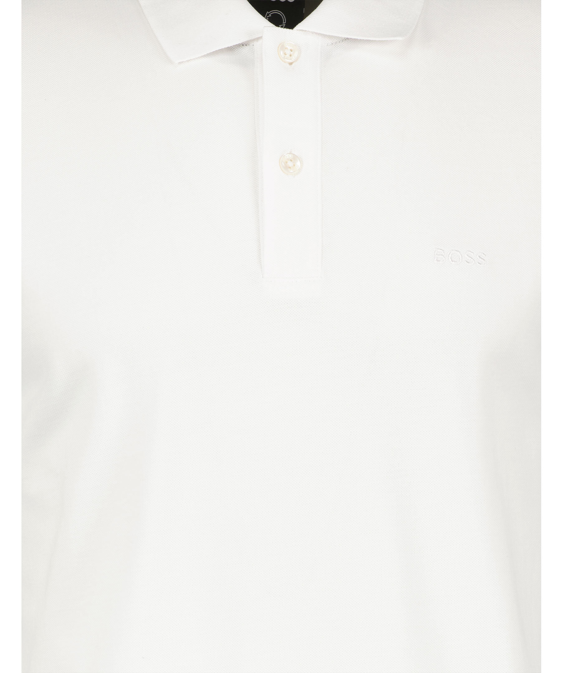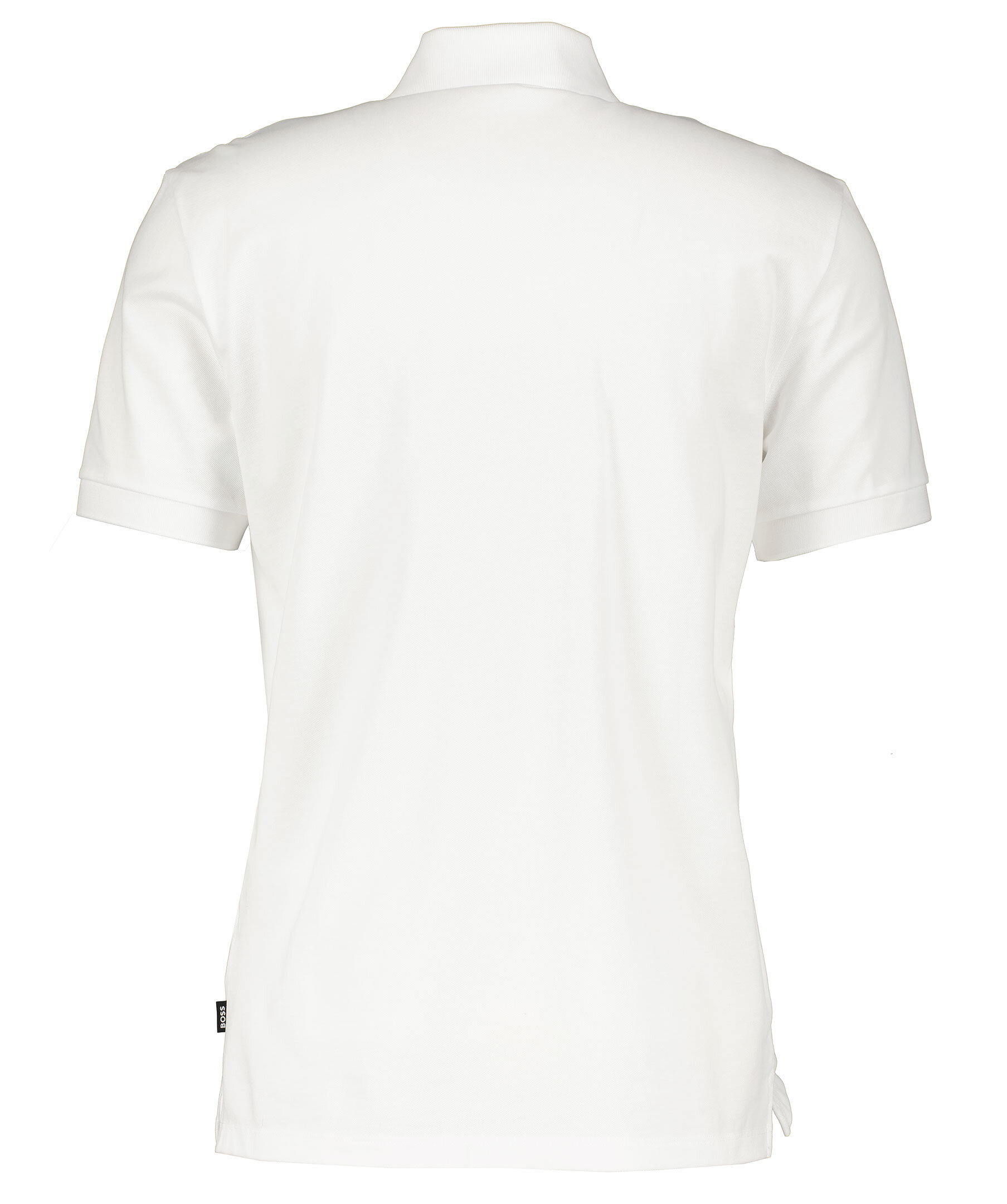 Vit kortärmadpiké från BOSS Black gjord i 100% bomull. Knappslå med två knappar, ribbad krage och mudd vid ärmslut. Liten ton-i-ton logotyp broderad på bröstet. Små sidoslitsar.