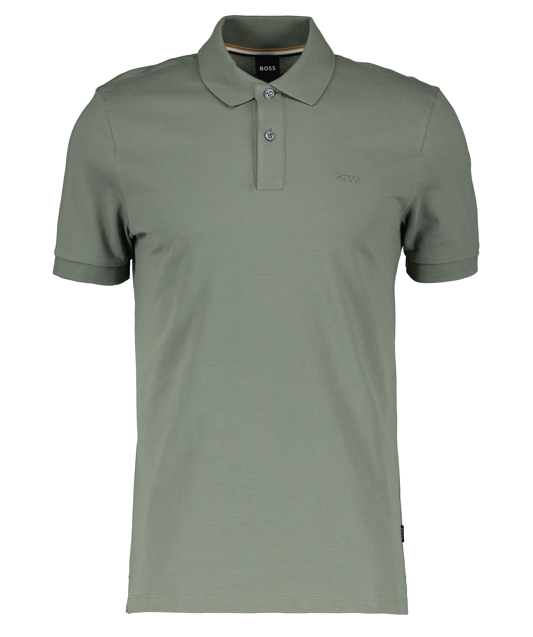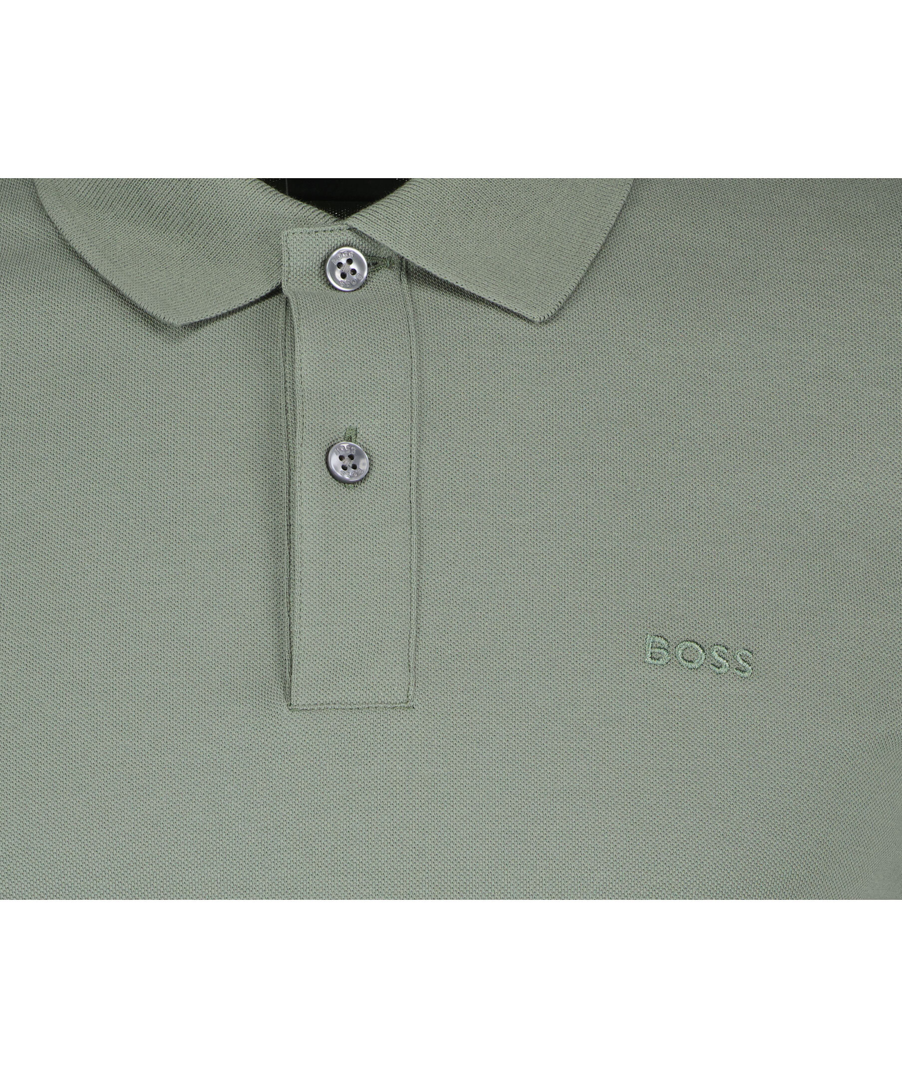 Militärgrön kortärmad piké från BOSS BLACK gjord i 100% bomull. Knappslå med två knappar, ribbade krage och mudd vid ärmslut. Liten ton-i-ton logotyp broderad på bröstet. Små sidoslitsar.