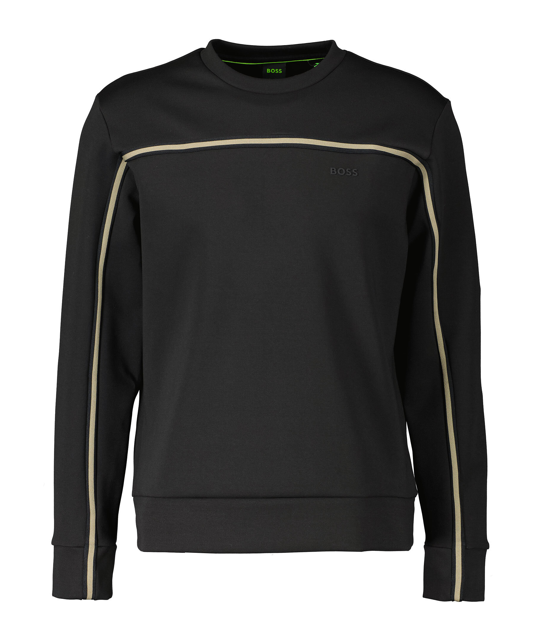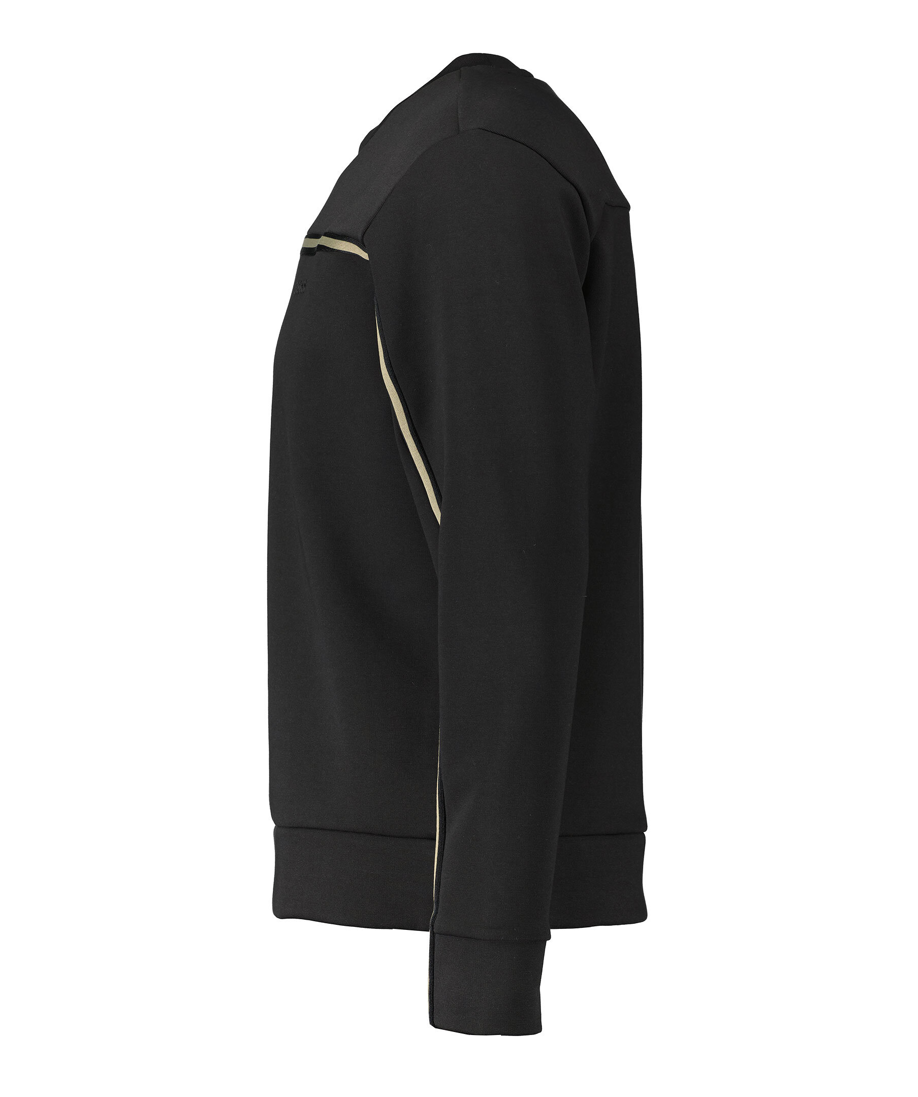 Svart sweatshirt från BOSS Green. Tröjan har rund och ribbstickad halsringning samt ribbstickade muddar vid ärm- och plaggslut och kontrastränder över bröstet och ärmarna samt logotyp. Tillverkad i en bomullsblandning.