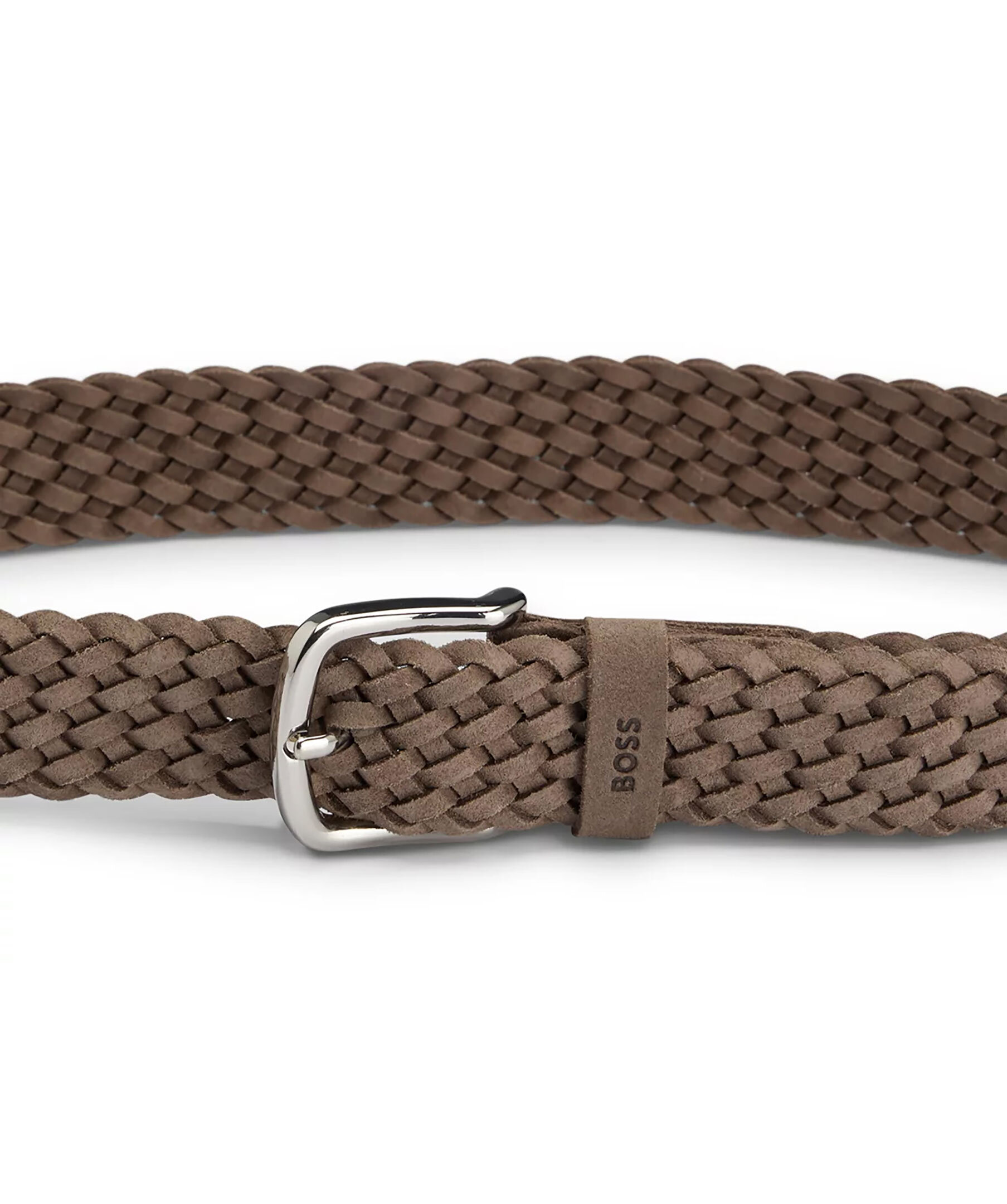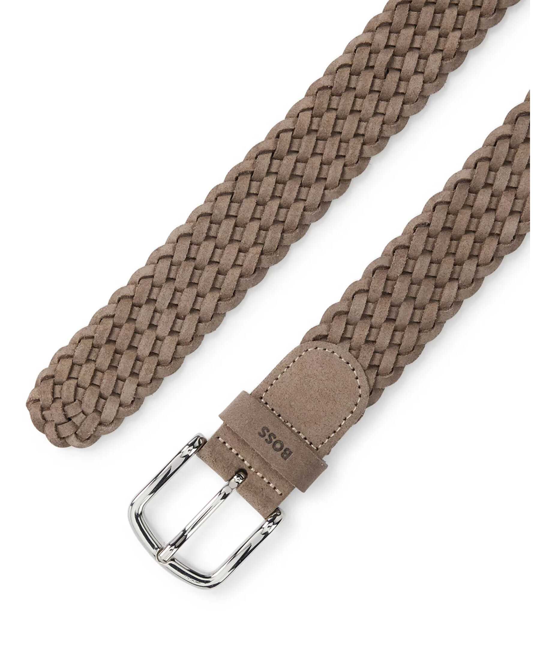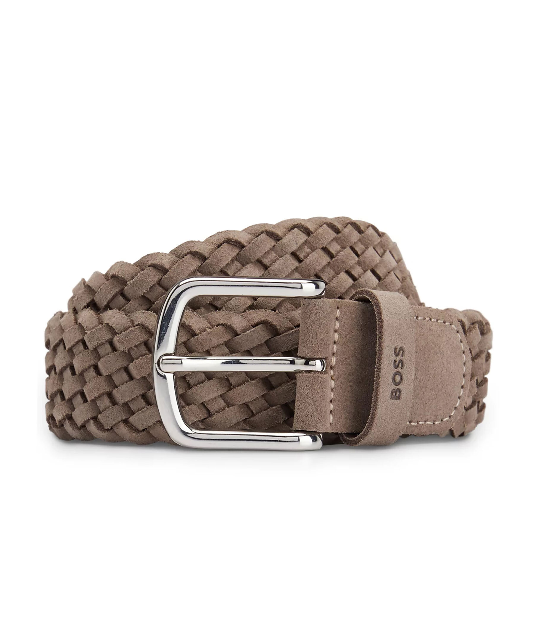 Ett khakifärgat elegant bälte från BOSS Black. Säker med en märkeshållare och polerat spänne. Bältet är tillverkat i mjuk mocka för en rik effekt. För bästa passform rekommenderar vi att du beställer ett bälte en storlek större än din midja.