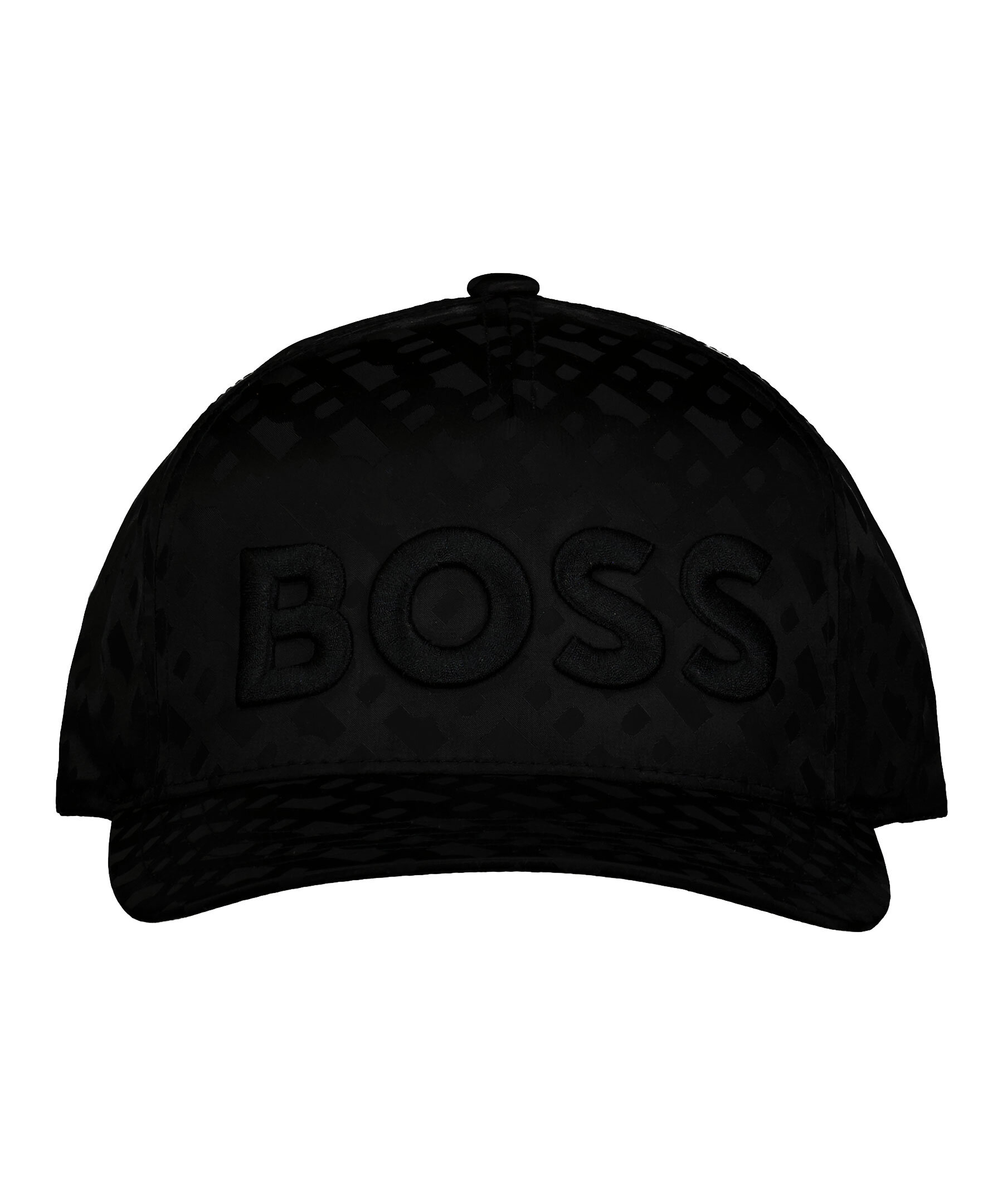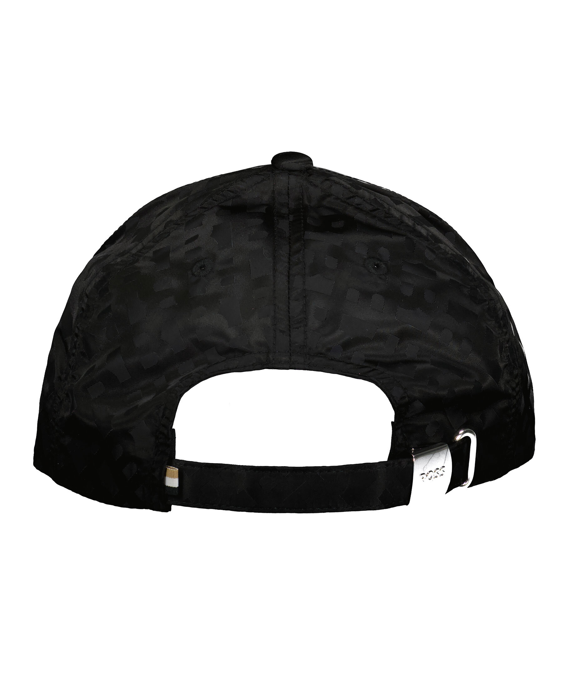 Svart keps från BOSS Black. Tillverkad i slät nylon, detaljerad överallt med tonala monogram. Svart broderad logotyp på kepsens framsida. Justerbart spänne baktill.