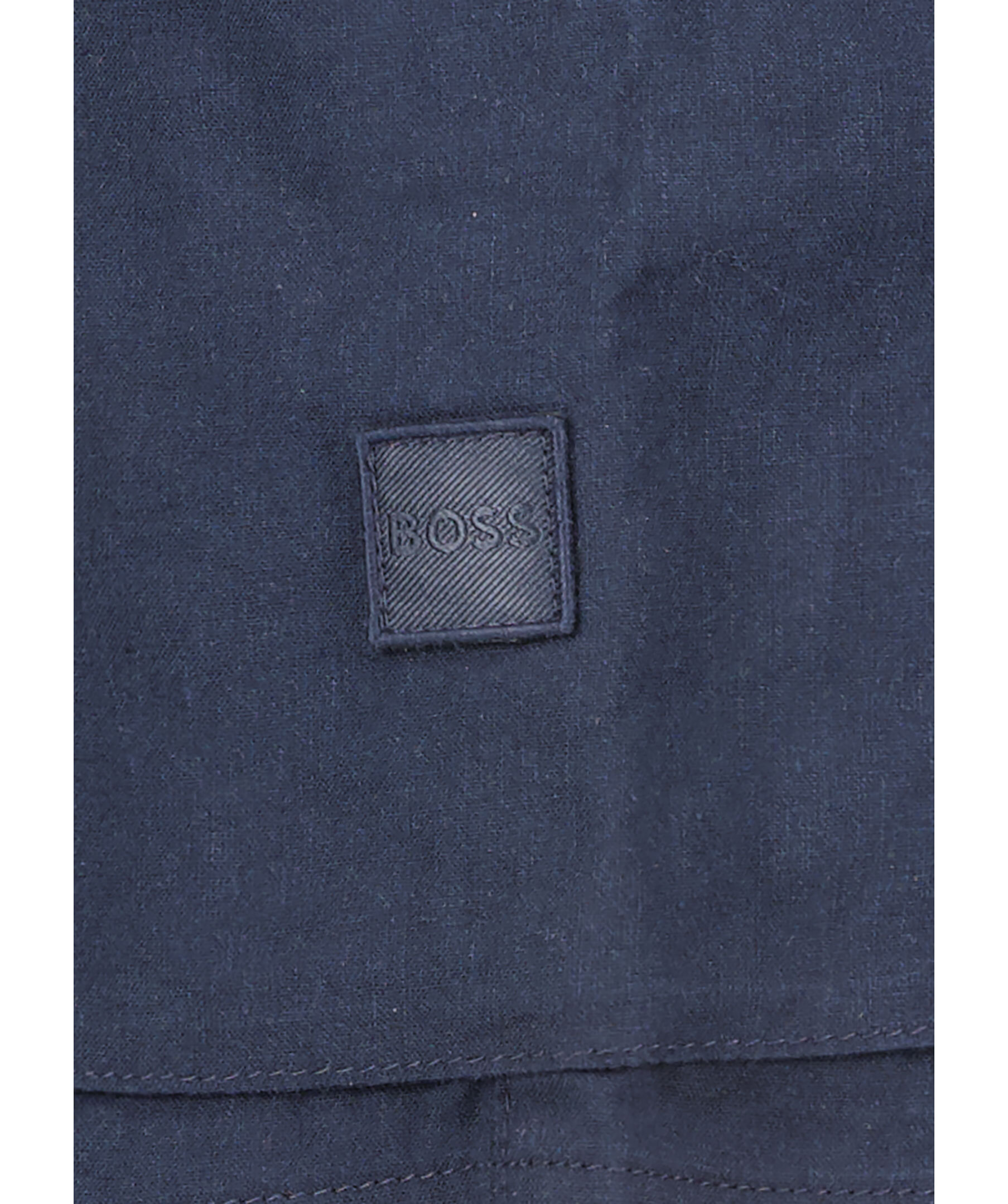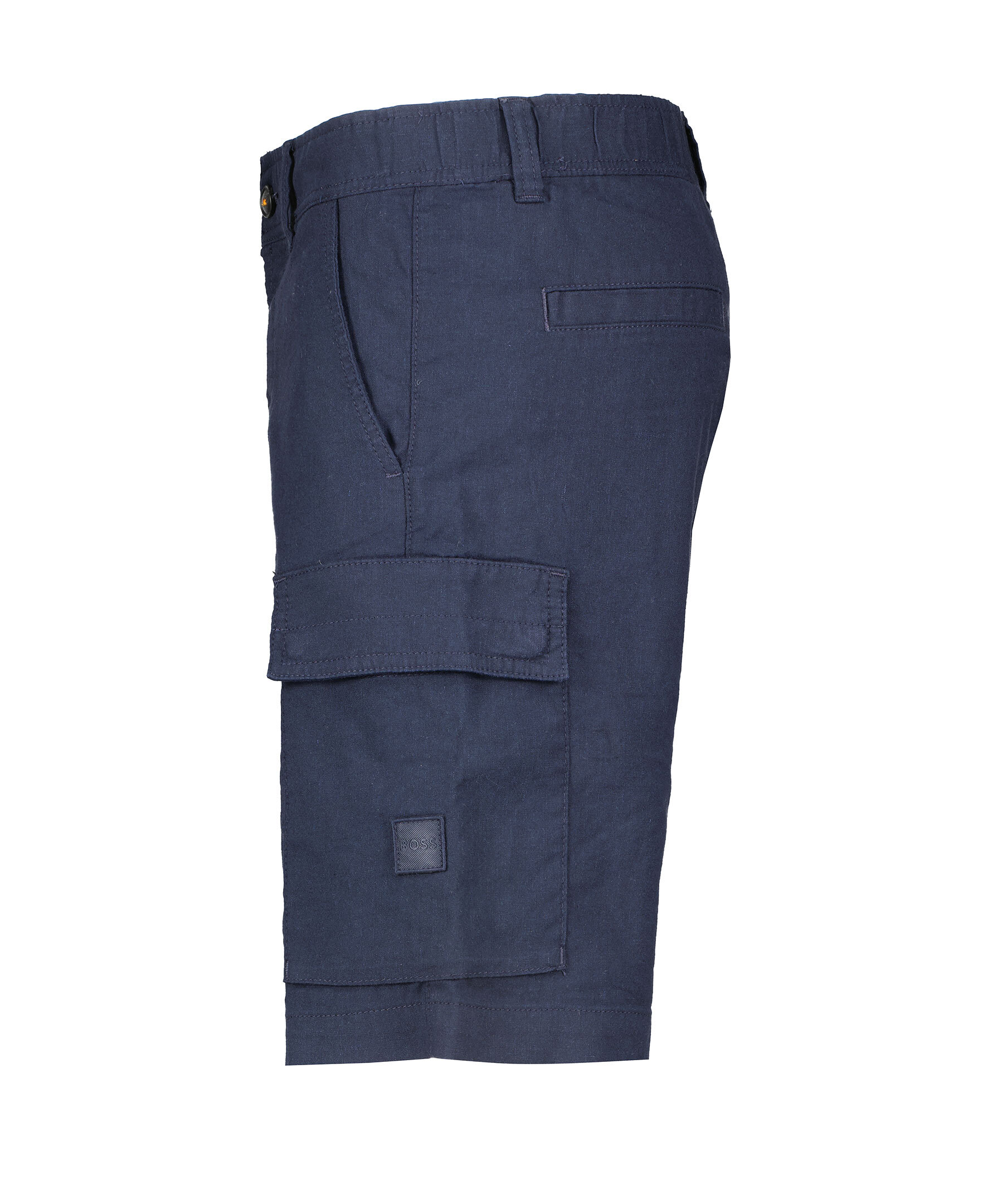 Mörkblåa cargoinspirerade shorts från BOSS Orange. Shortsen har bälteshällor i midjan, två sidfickor, två fickor med lock på benen samt logotyp på ena fickan. Tillverkade i en linneblandning.