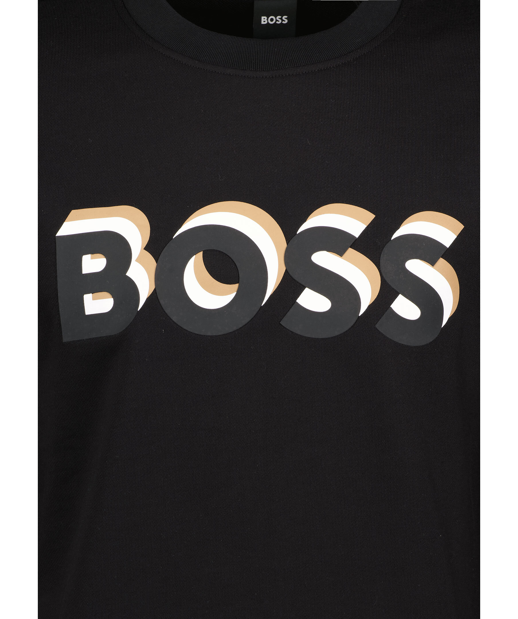 Svart sweatshirt från BOSS Black. Stor logotyp i gummi på bröstet i svart, vitt och brunt. Avslappnad passform. Tillverkad i 100% bomull.