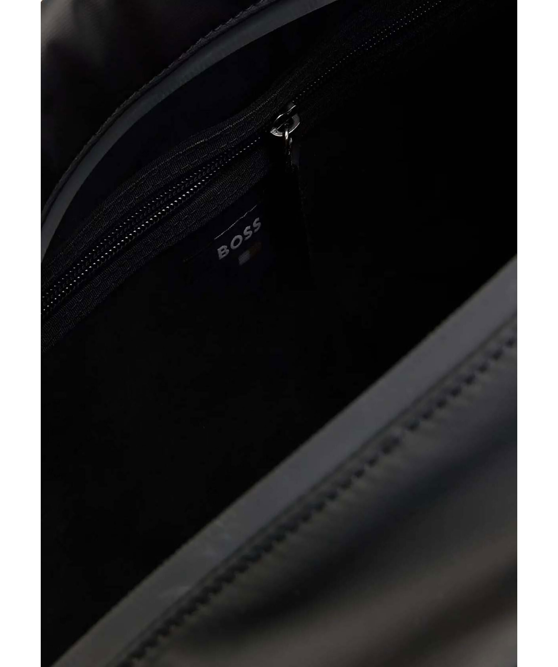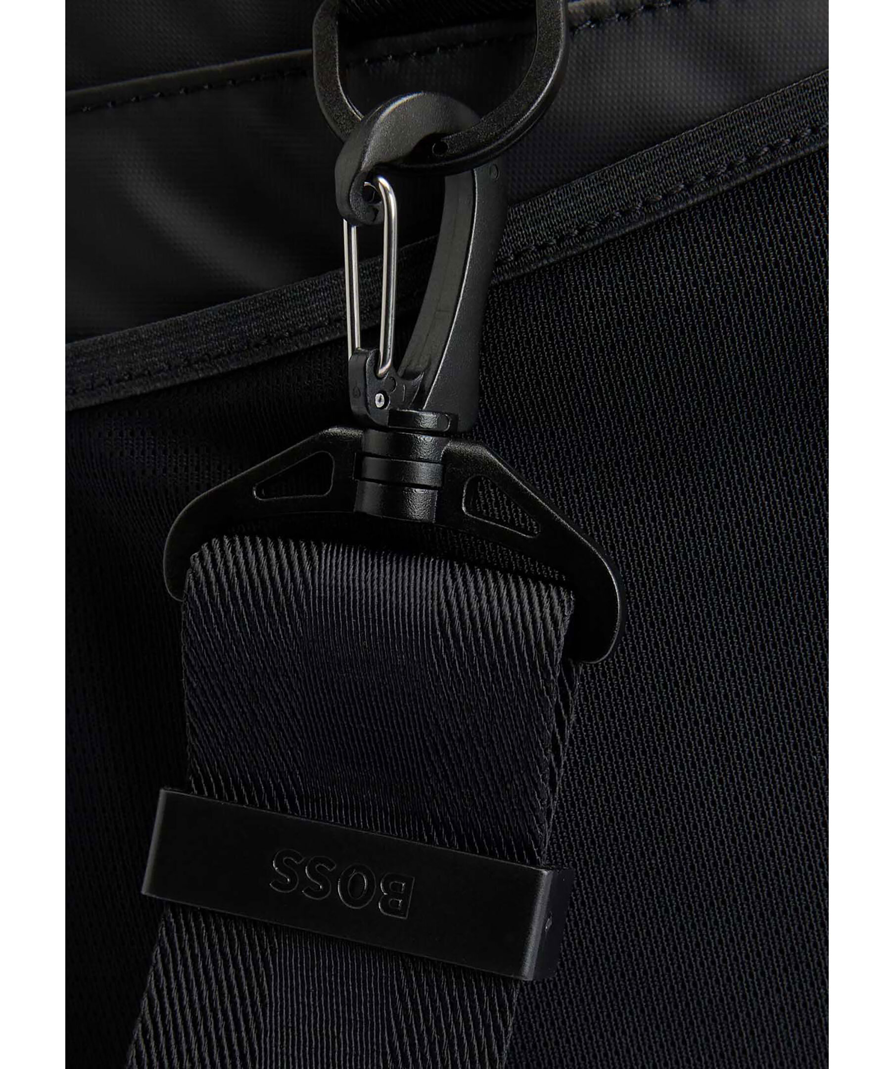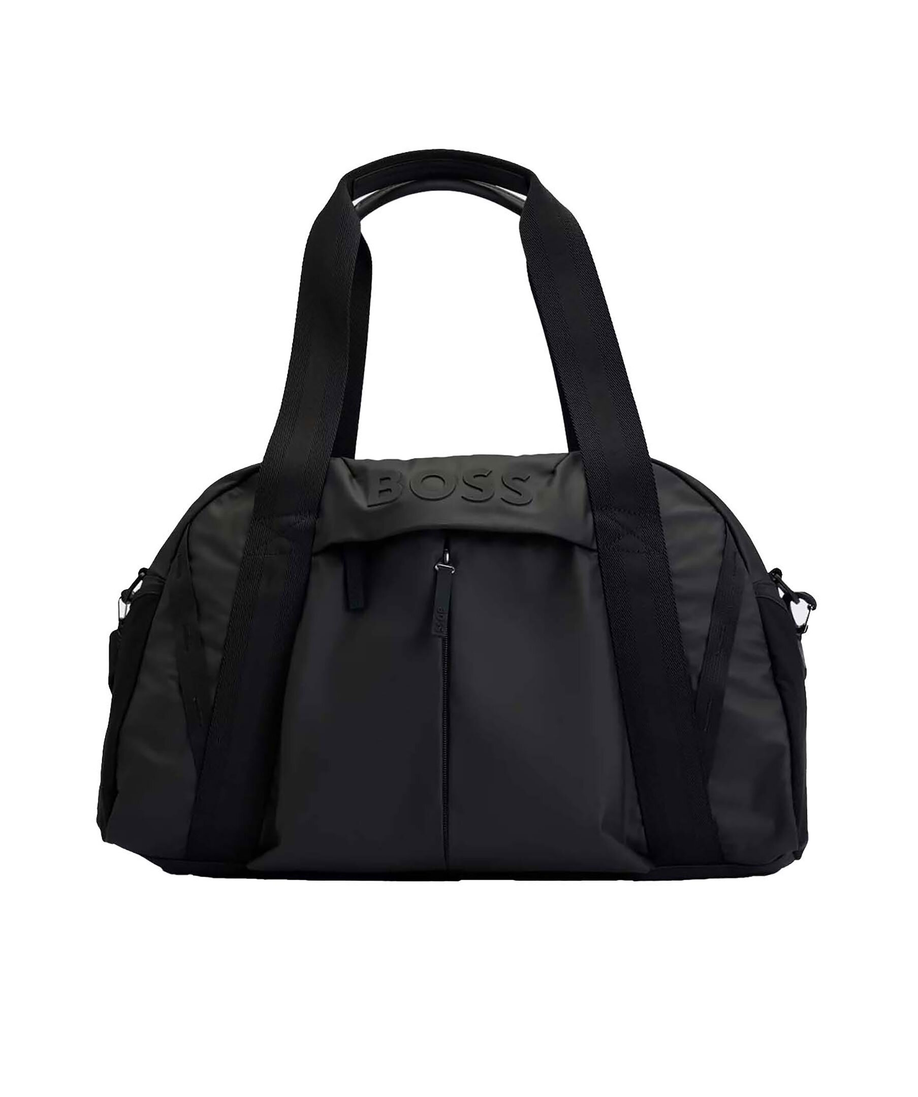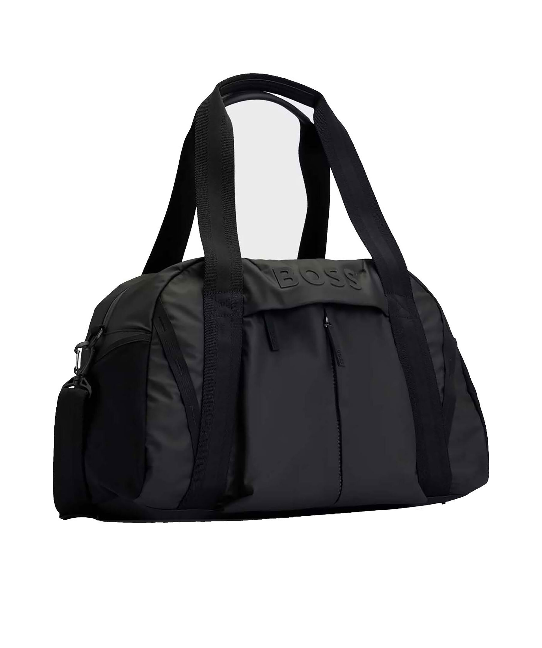Svart weekendbag från BOSS Black. Väskan stängs med dragkedja upptill och har två korta bärhandtag samt en avtagbar axelrem, en innerficka med dragkedja samt logotyp på utsidan. Tillverkad i syntetiskt belagd tyg. Mått: 27 x 51 x 23 cm.