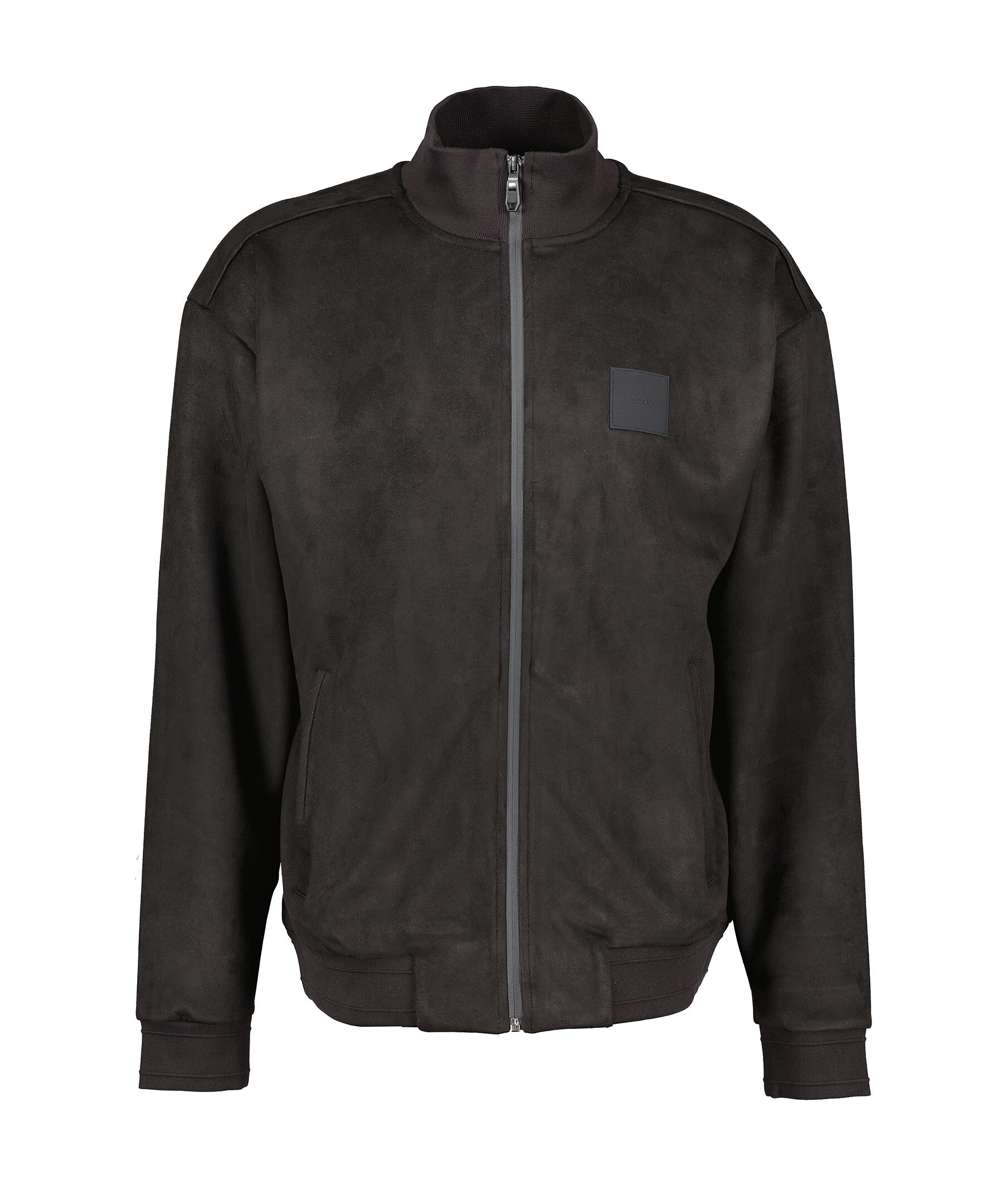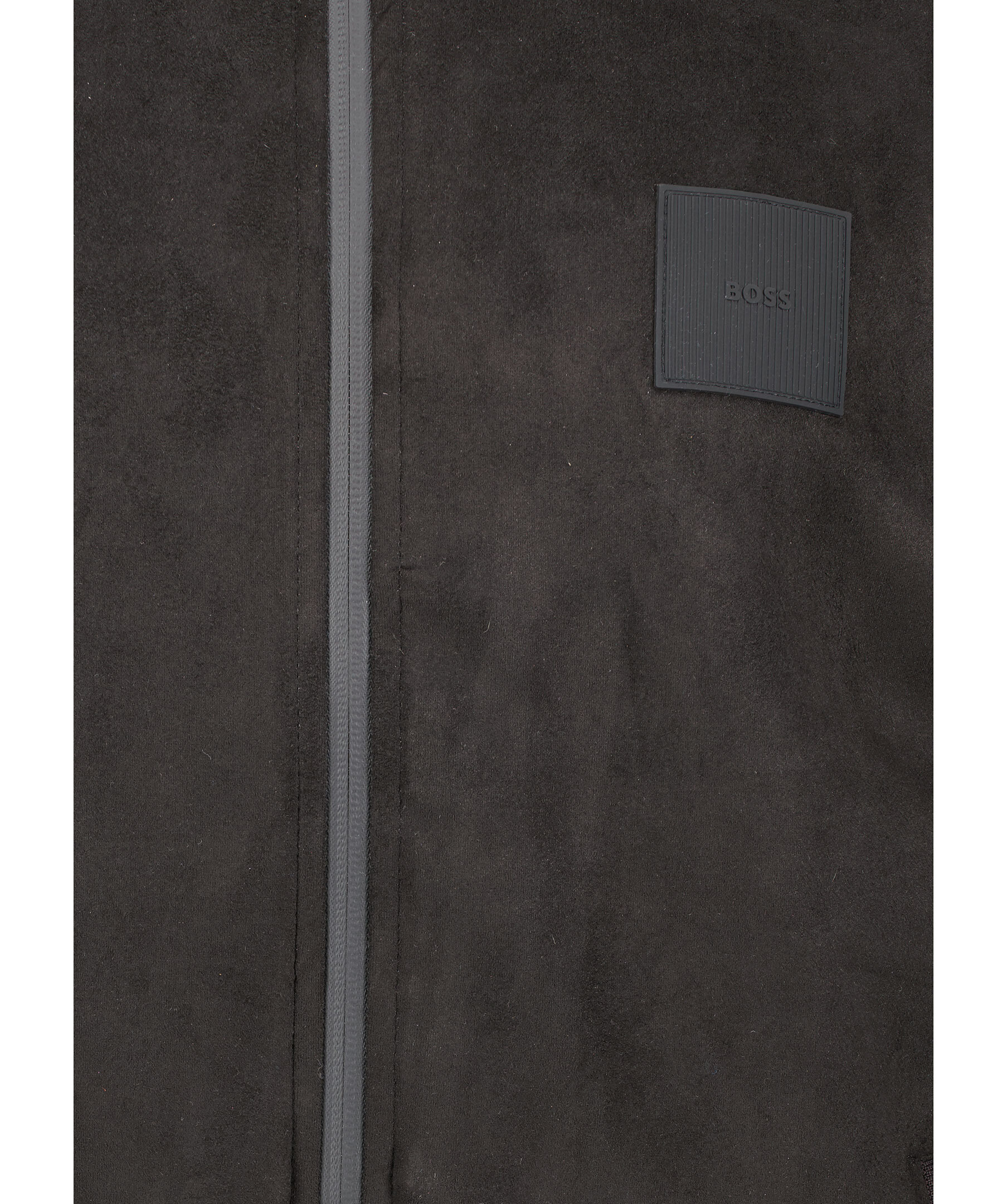 Svart tjocktröja från Boss Green. Tröjan är gjord av mockaliknande material och är extremt mjuk, stängs med dragkedja och har två öppna sidofickor. Ribbstickad krage, tröj- och ärmslut, gummilogotyp på vänster bröst. Tillverkad av en polyesterblandning.