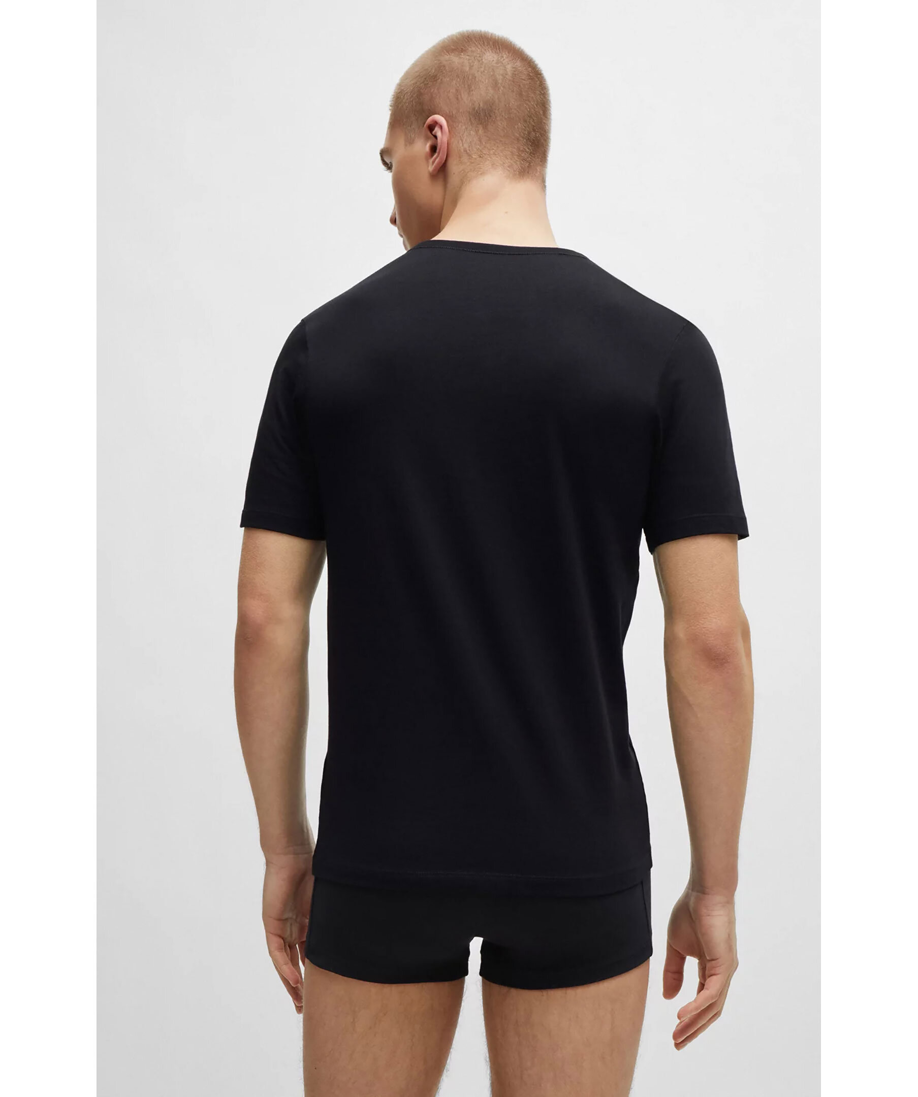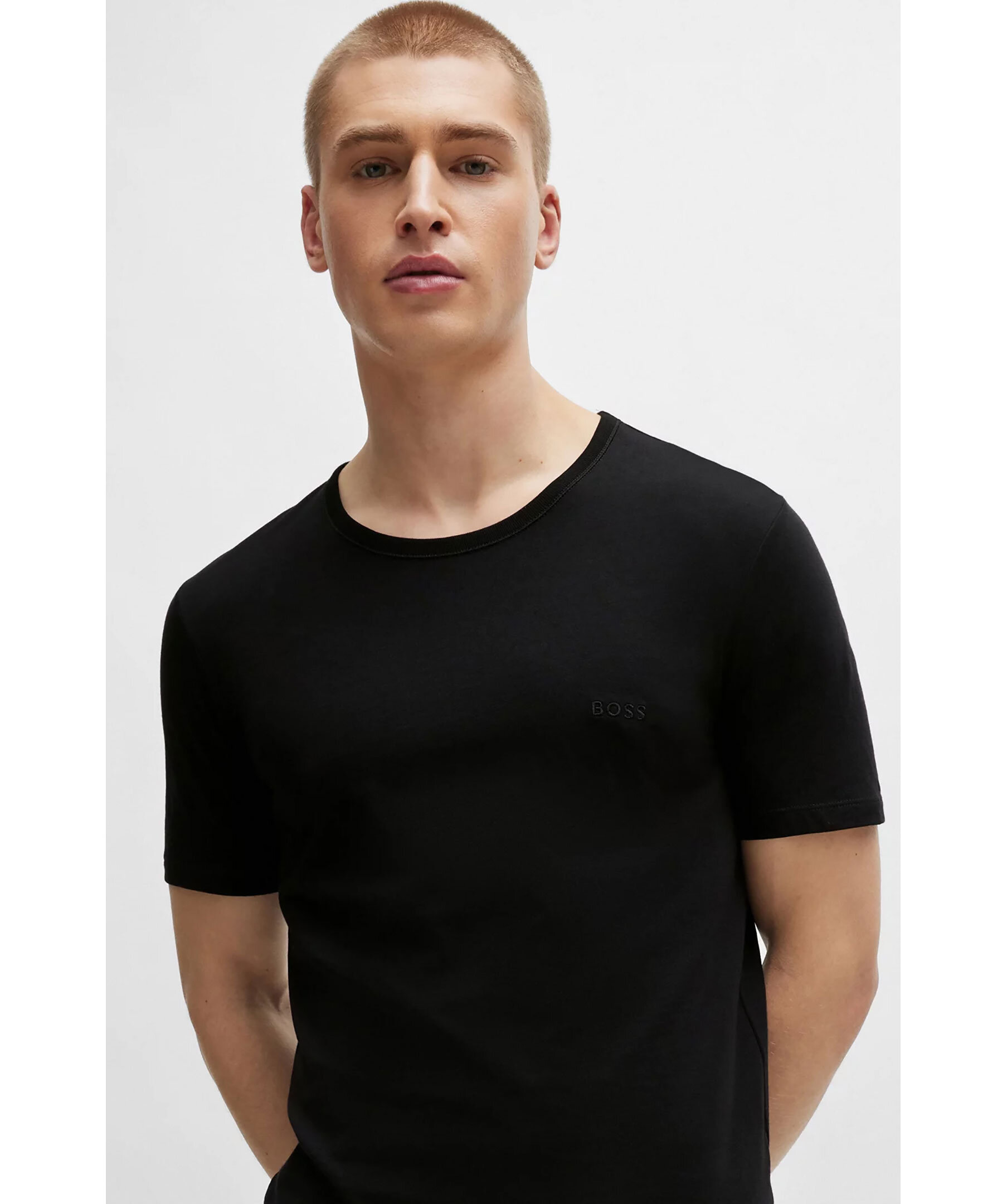 3-pack svarta t-shirts från BOSS Black. Rund halsringning och broderad logotyp på bröstet. Tillverkade i bomull.
