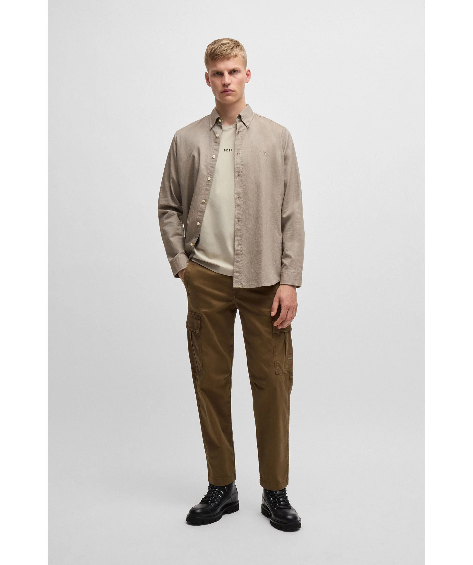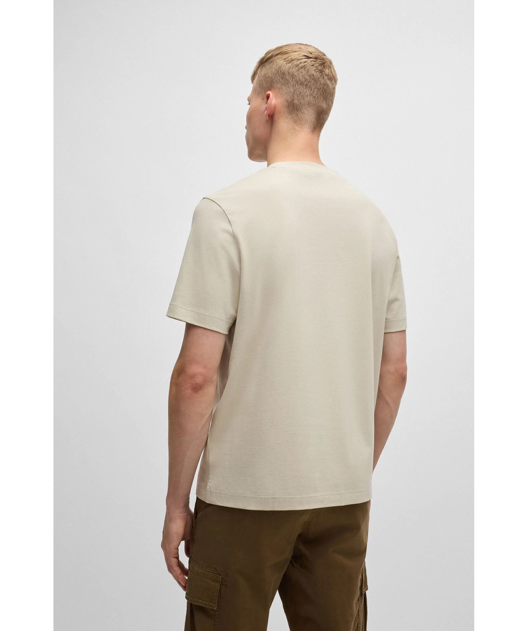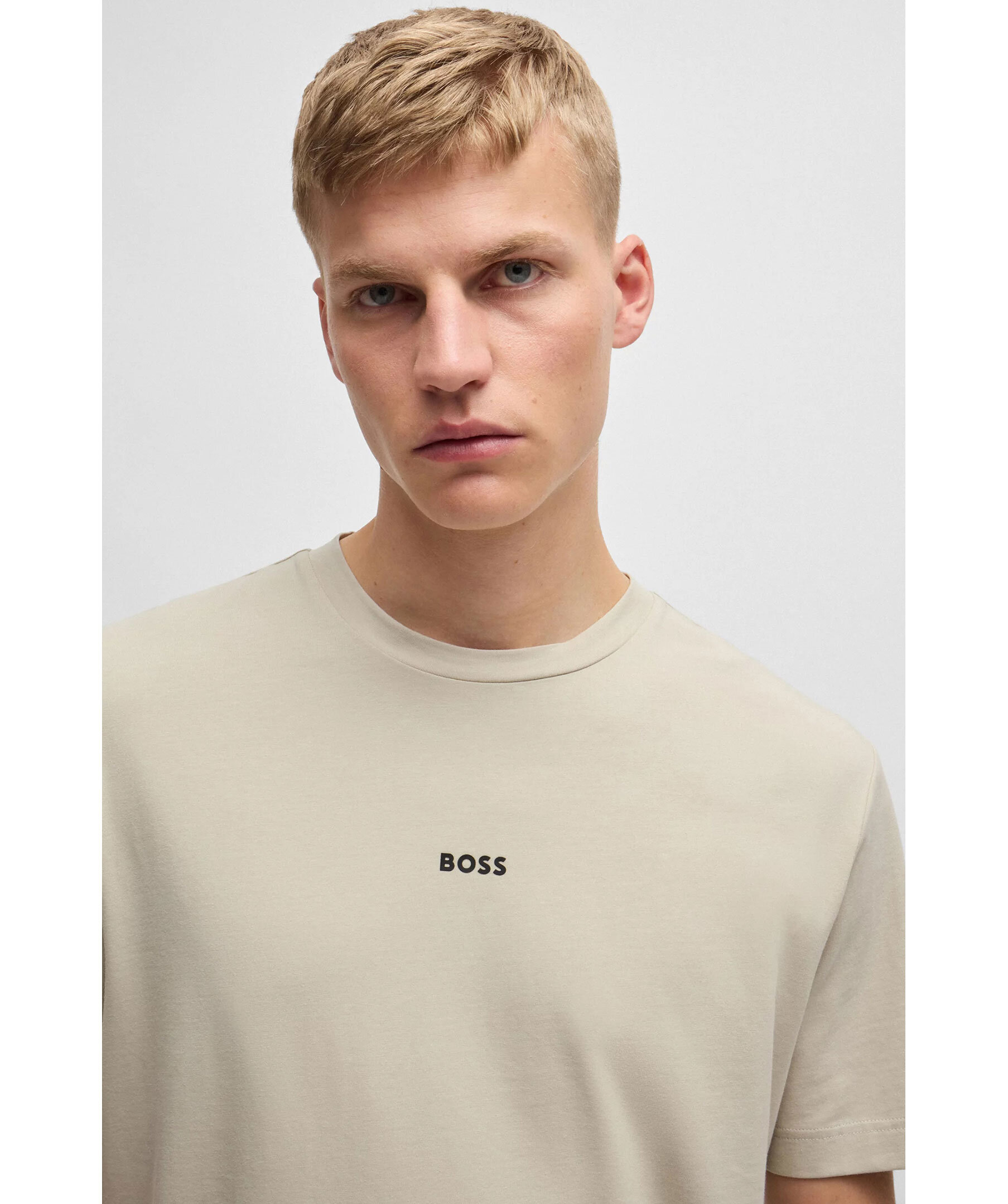 Beige t-shirt från BOSS Orange. T-shirten har korta ärmar, rund halsringning samt en logotyp som är tryckt i sju lager mitt på bröstet. Tillverkad i en stretchig bomullsblandning.