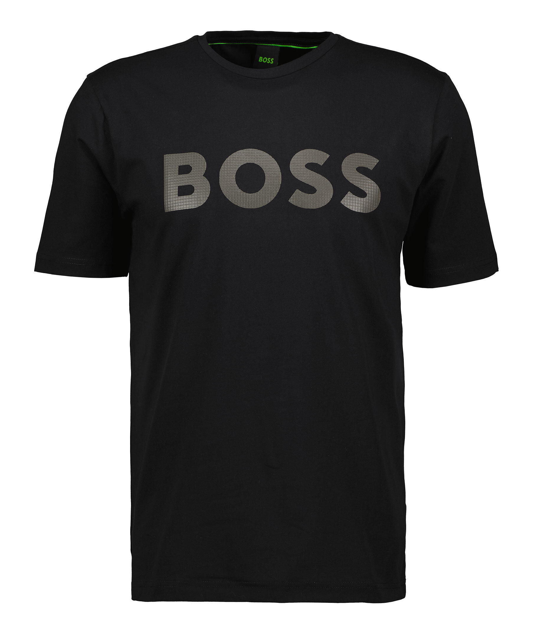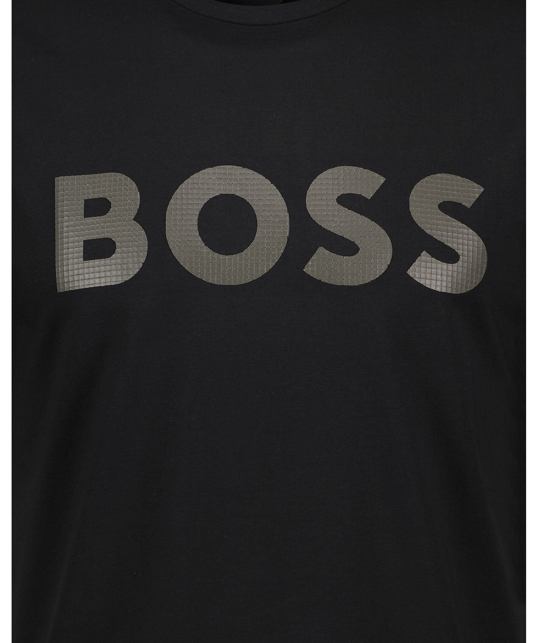 Svart t-shirt från BOSS Green. Tillverkad i en stretchig bomullsblandning. T-shirten har en grå logotyp på framsidan. Rundad halsring.