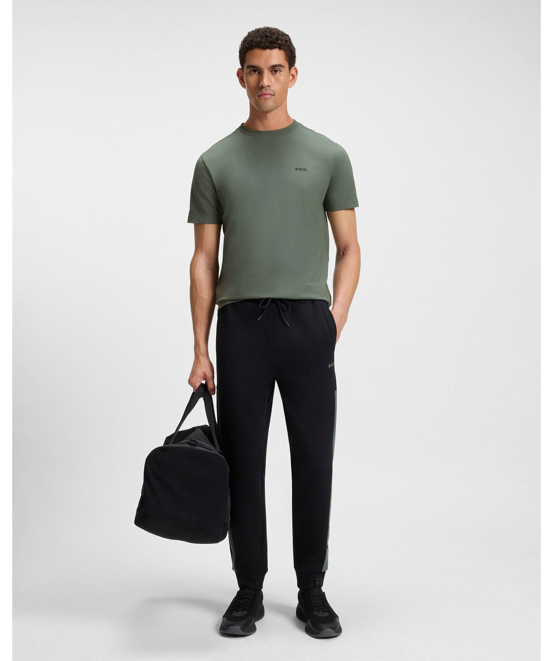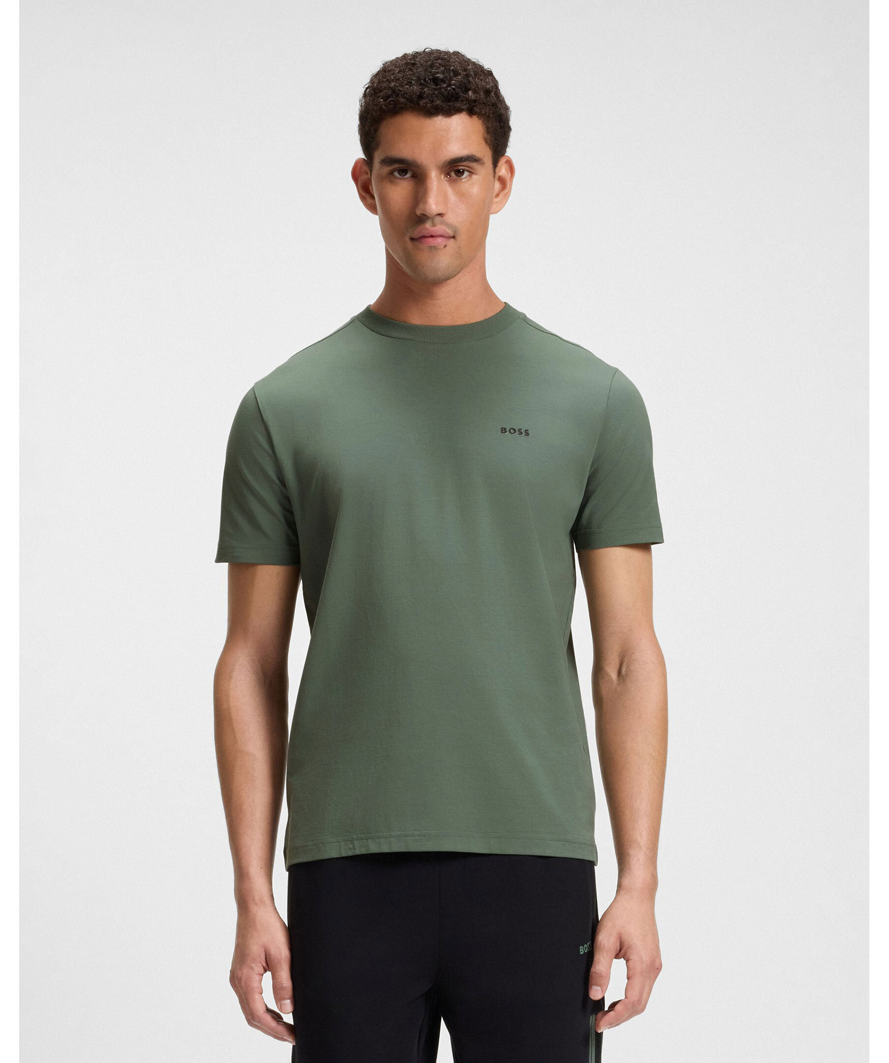 Grön T-shirt från BOSS. Bomullsblandnig med extra stretch för bekväm rörelsefrihet. Kontrastlogga på bröstet.