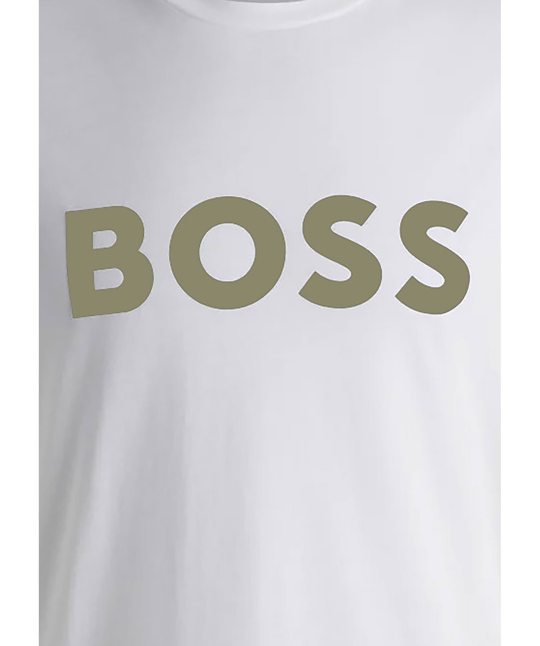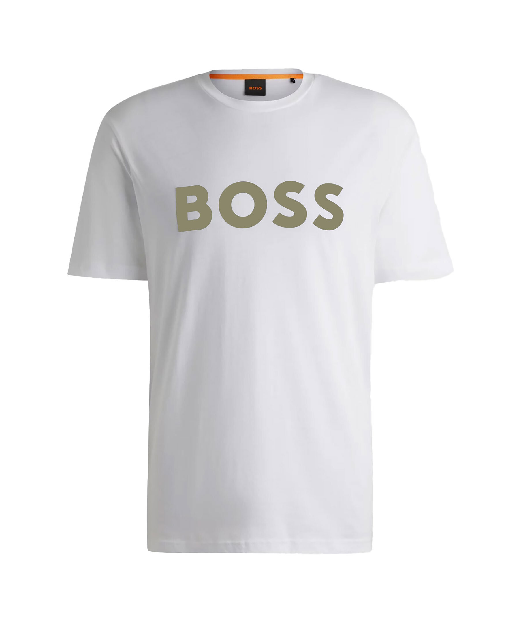 Vit t-shirt från BOSS Orange. T-shirten har rund hals, korta ärmar och BOSS-logotyp på bröstet. Tillverkad i bomull.