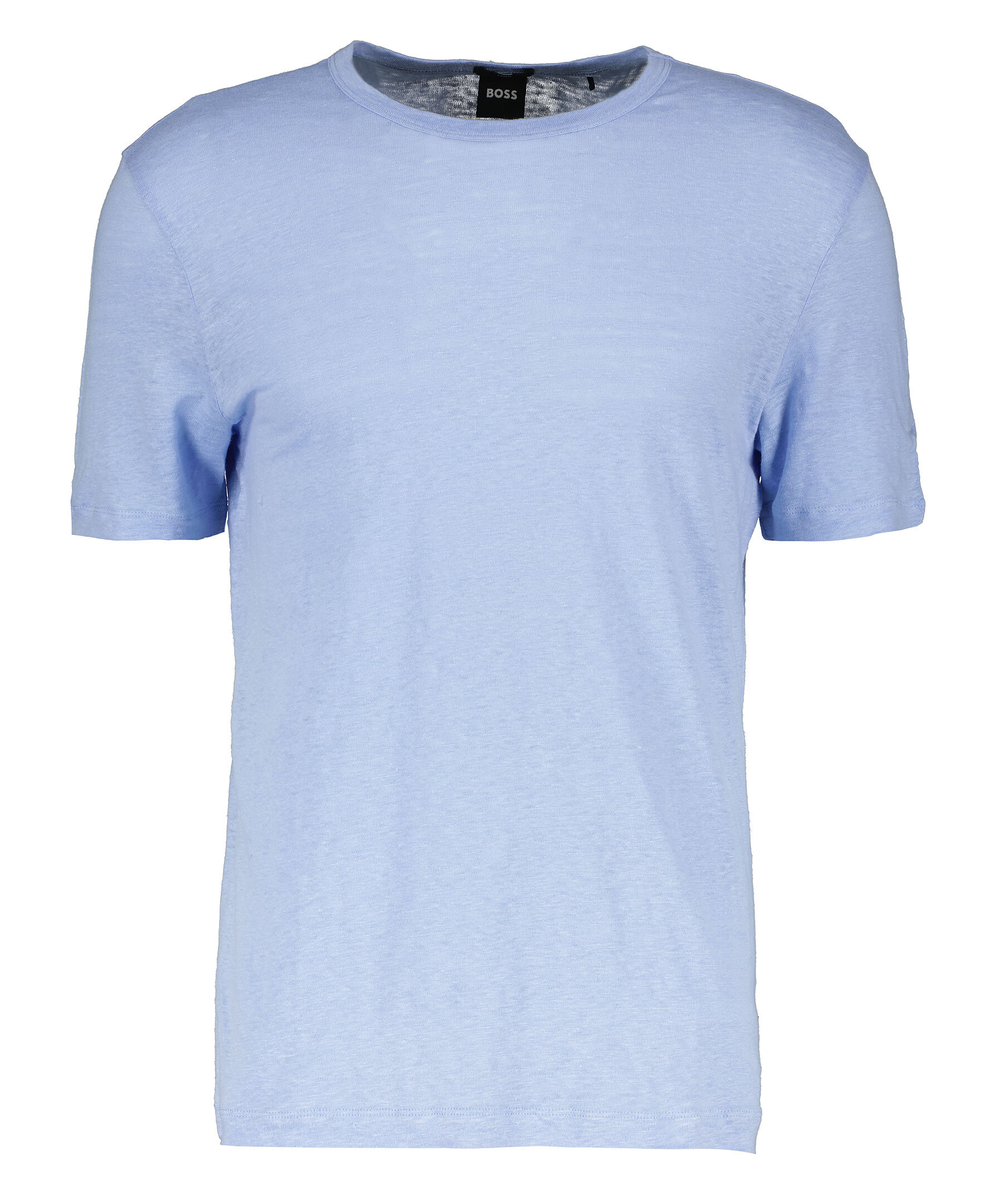Ljusblå melerad t-shirt från BOSS Black. Tillverkad i 100% linne. Rundad halsring. Normal passform.
