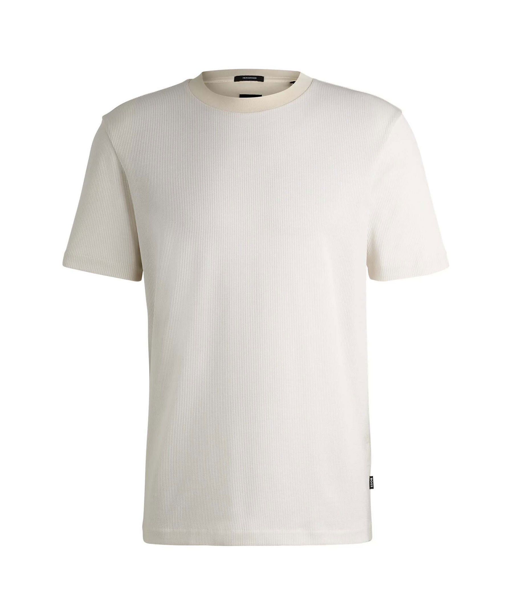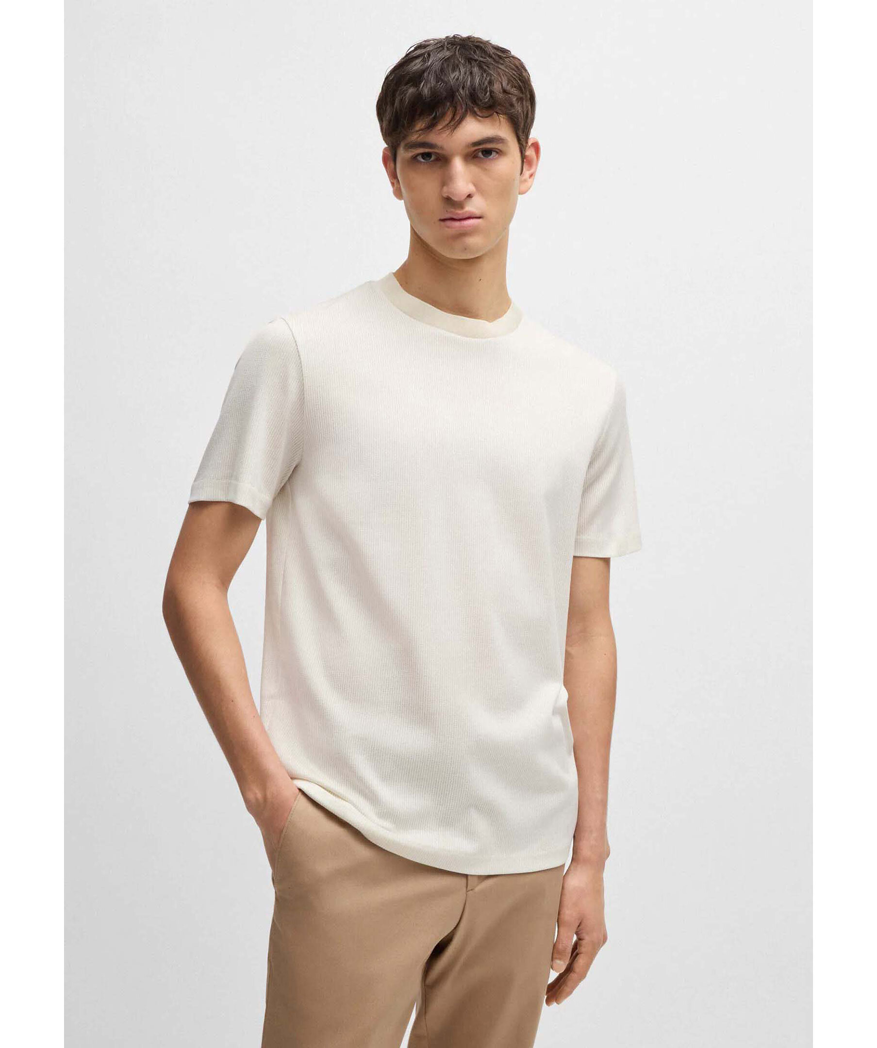 Vit, raffinerad t-shirt från BOSS Black med en svart, rundad halsringning. Tillverkad i bomull.