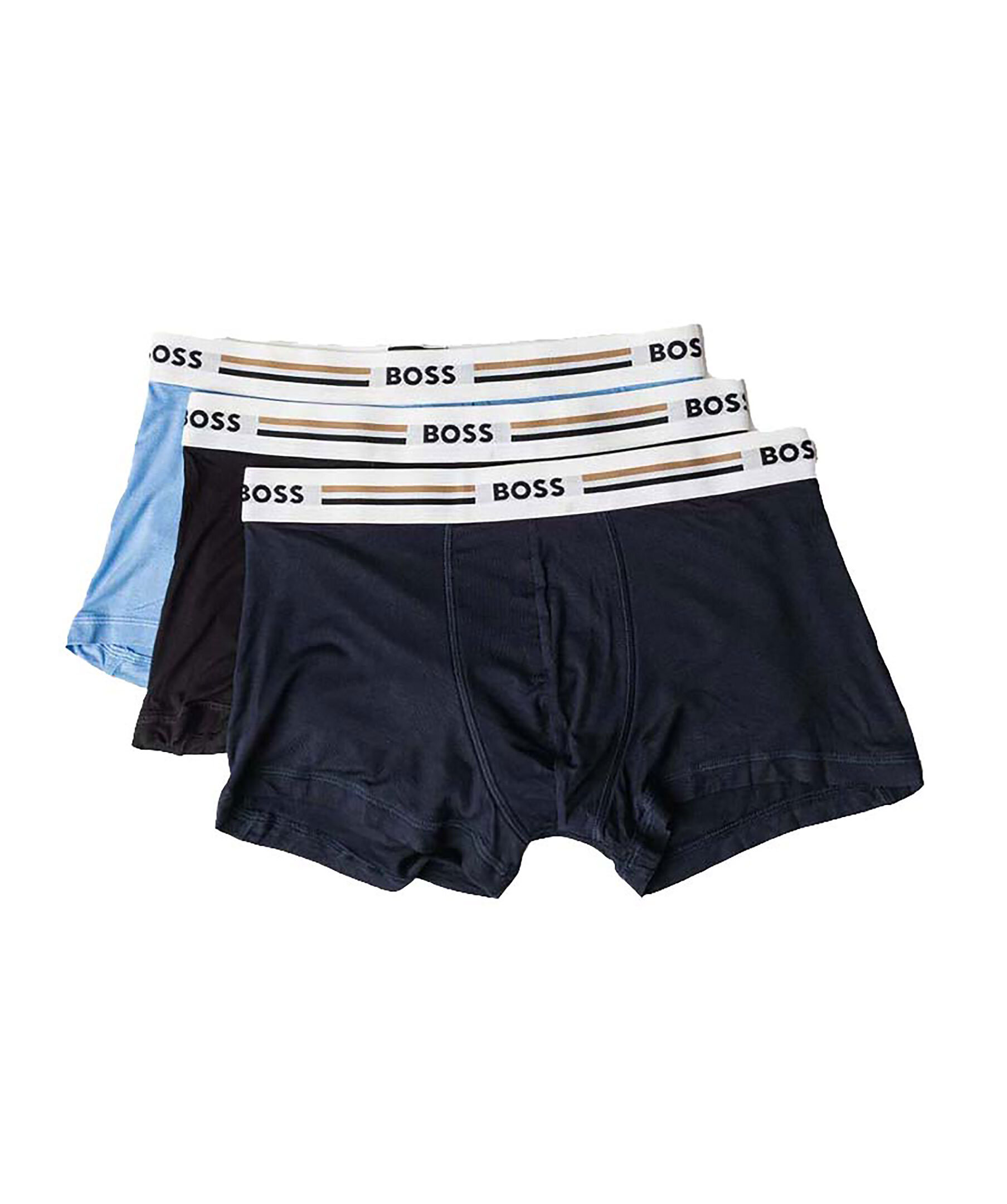 3-pack kalsonger i svart och blått från BOSS. Kalsongerna har normalhög midja samt logga på midjebanden. Tillverkade i en viskosblandning.