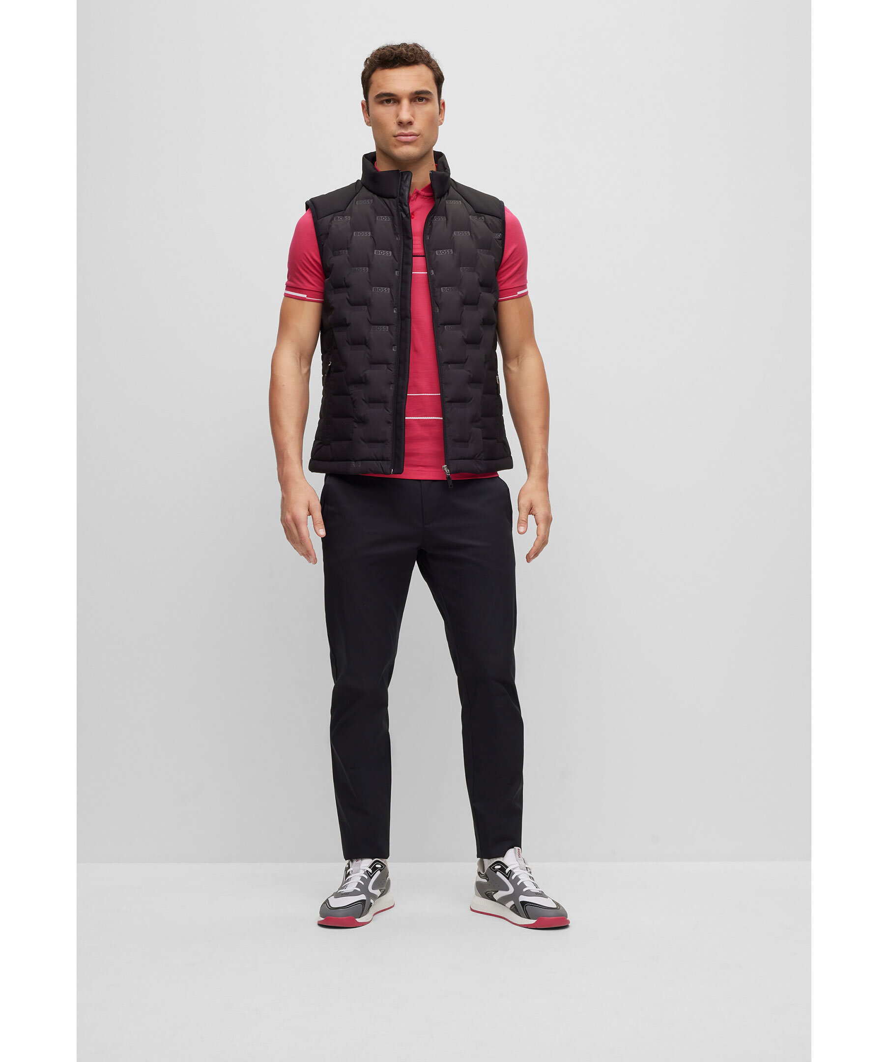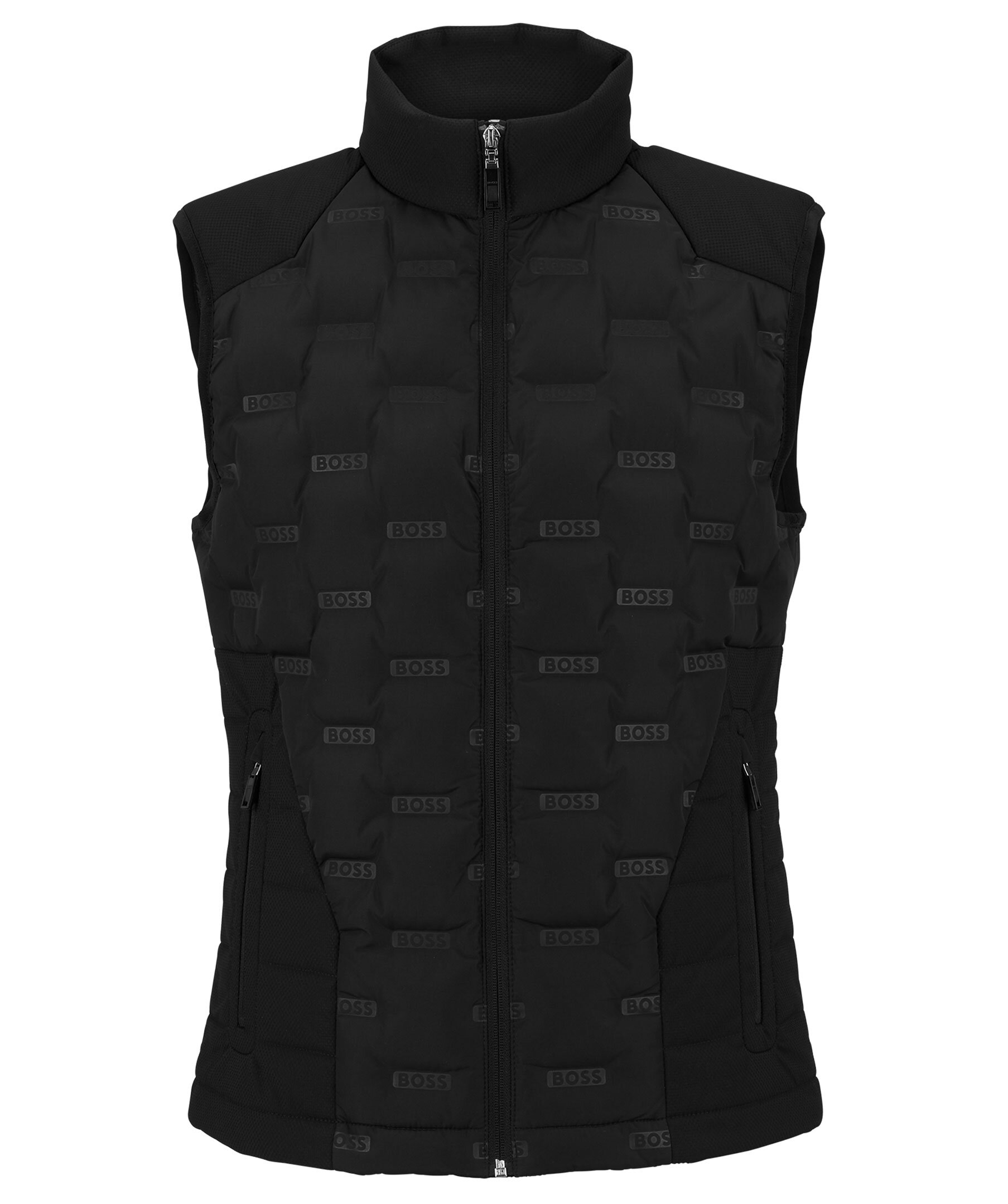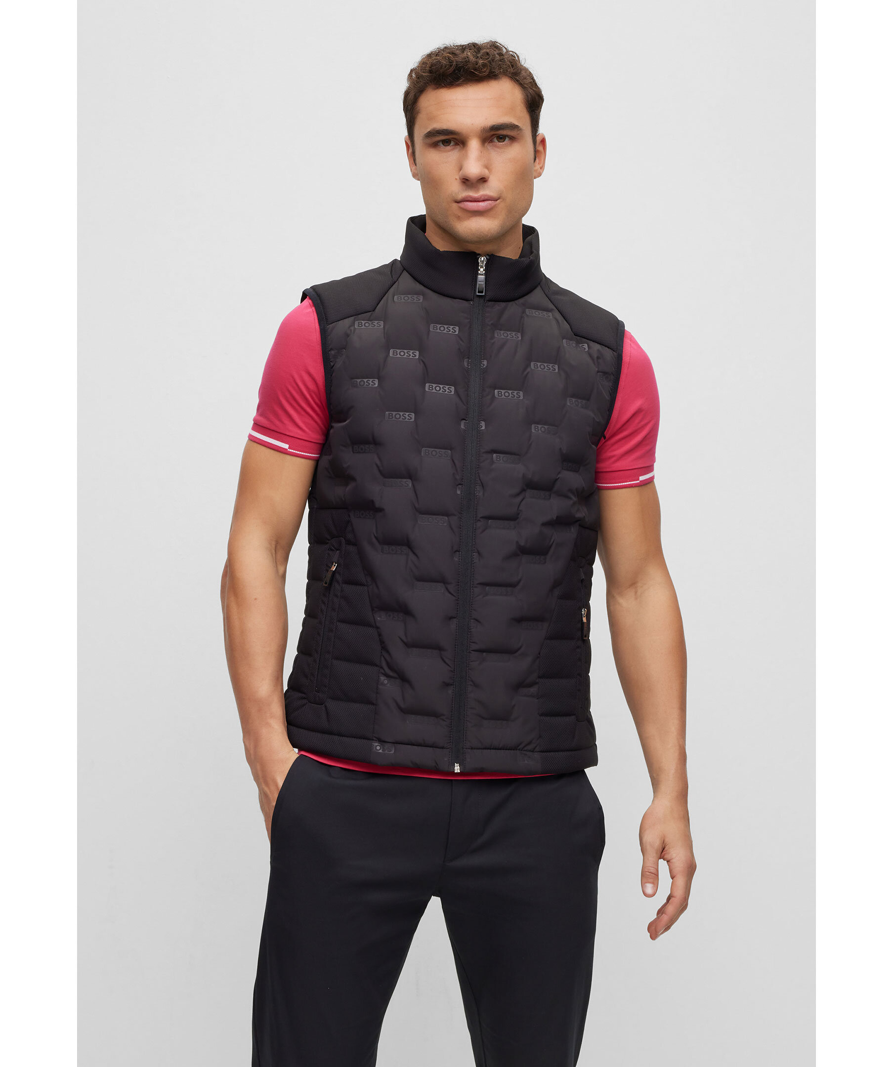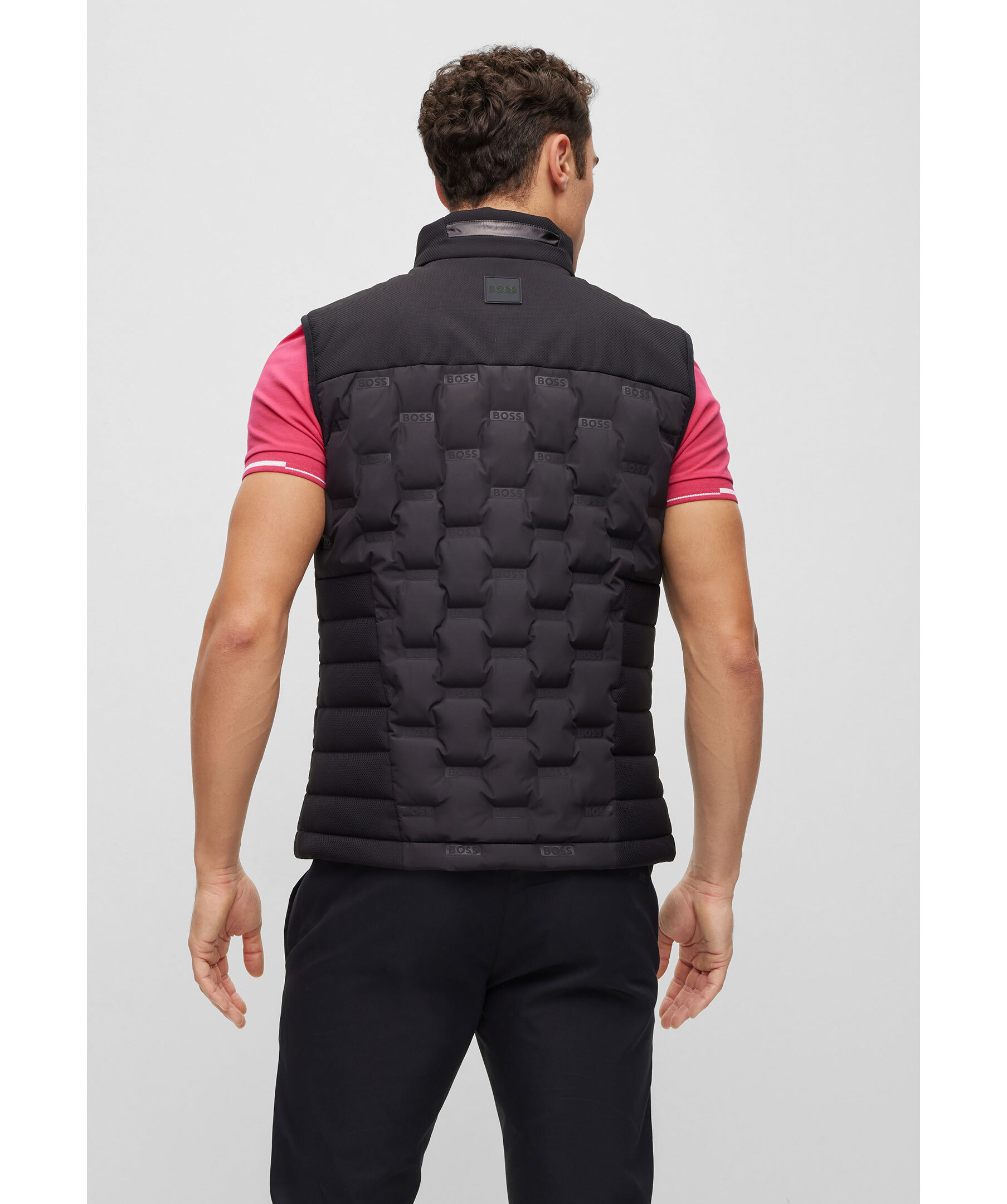 Svart quiltad väst med tryckta logotyper från BOSS Green. Stängs framtill med dragkedja. Två fickor framtill som stängs med dragkedja, innerfickor. Västen är tillverkad i ett vattenavstötande material. Patch med logotyp i gummi baktill i nacken.