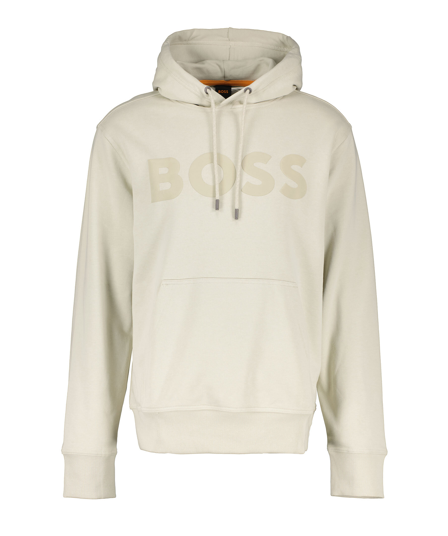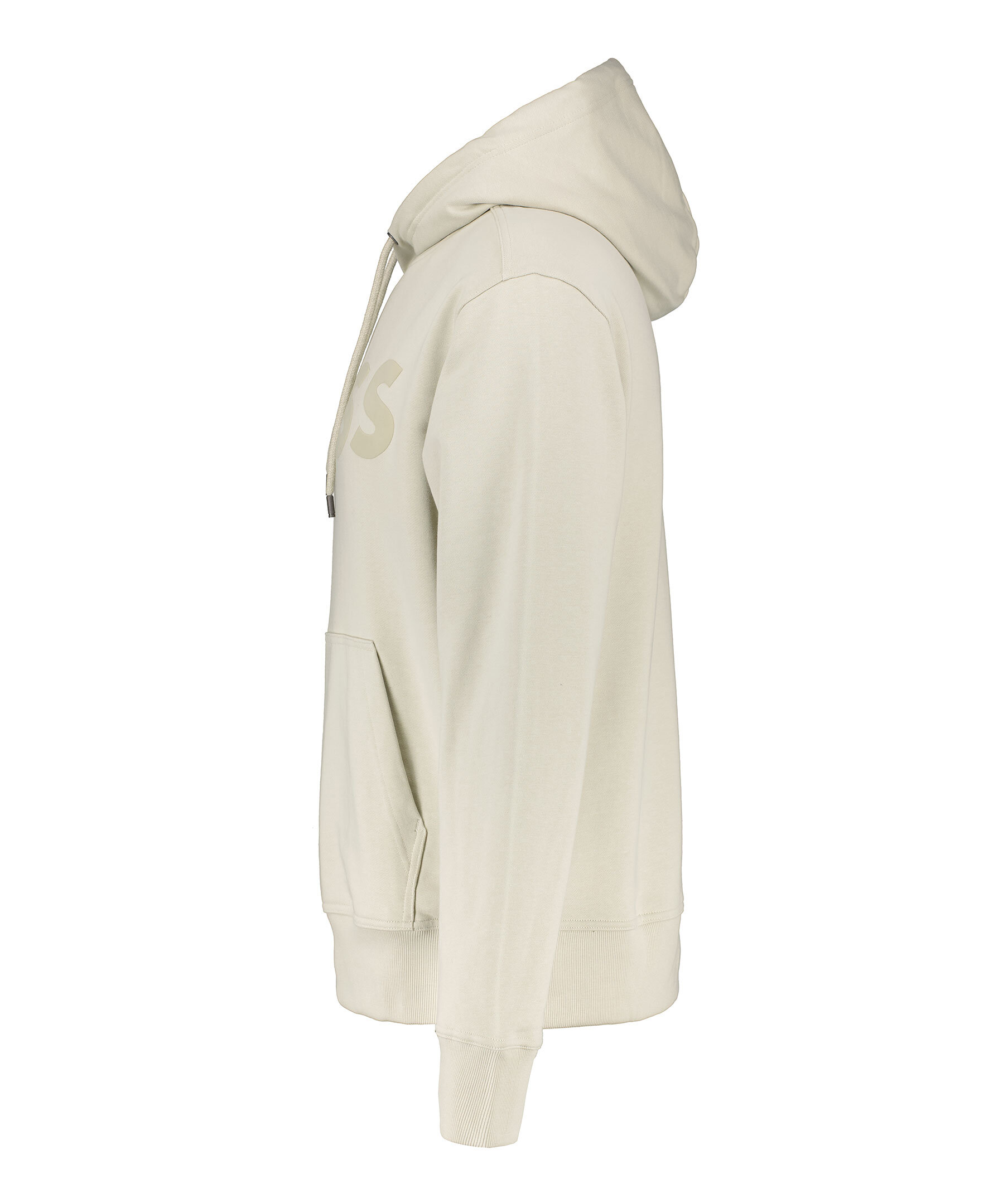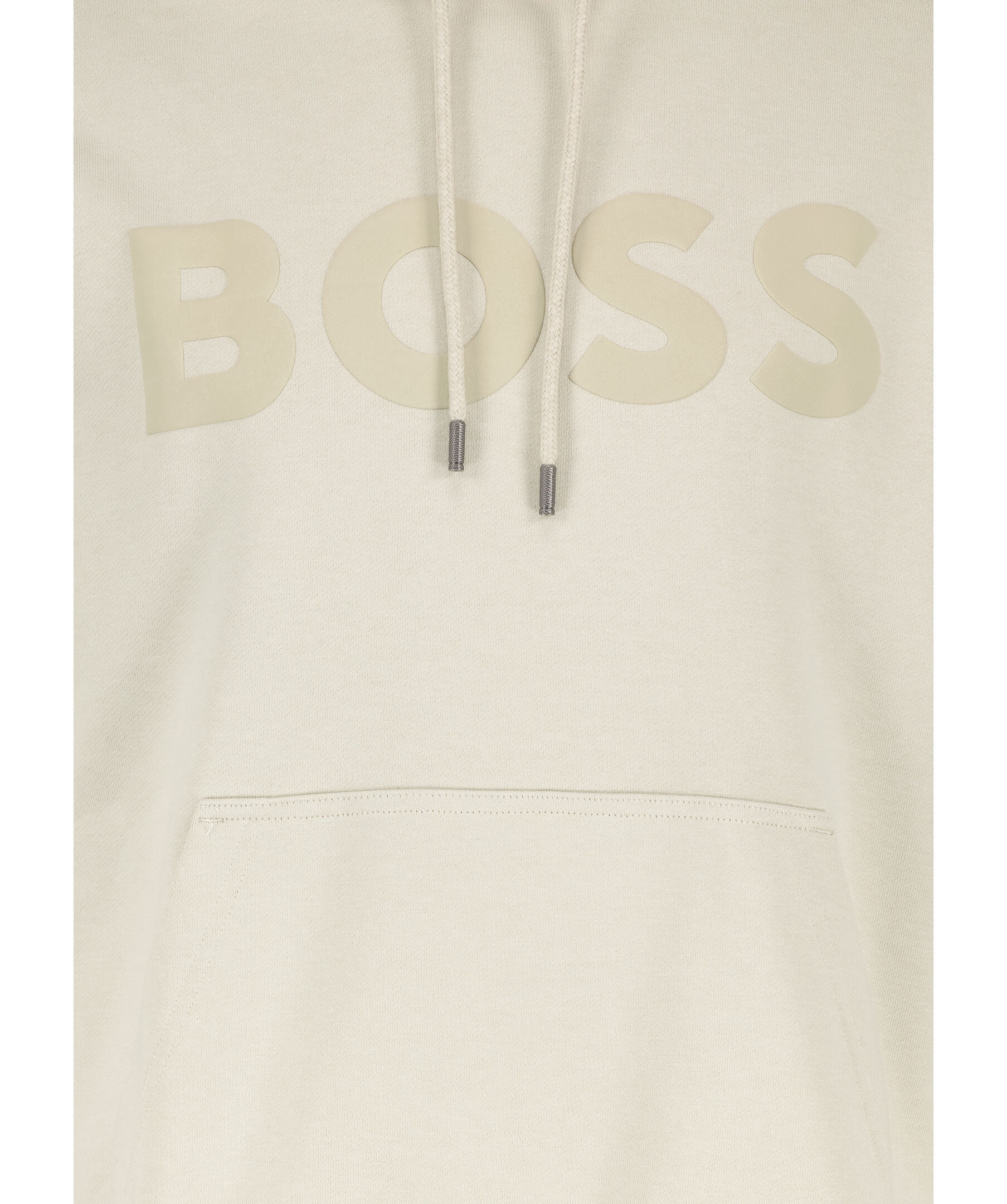 Beige hoodie från BOSS Orange. Hoodien har en stor kontrastlogga på bröstet, huva med dragsko och känguruficka fram. Mudd vid ärm- och tröjavslut. Tillverkad av 100% bomull.