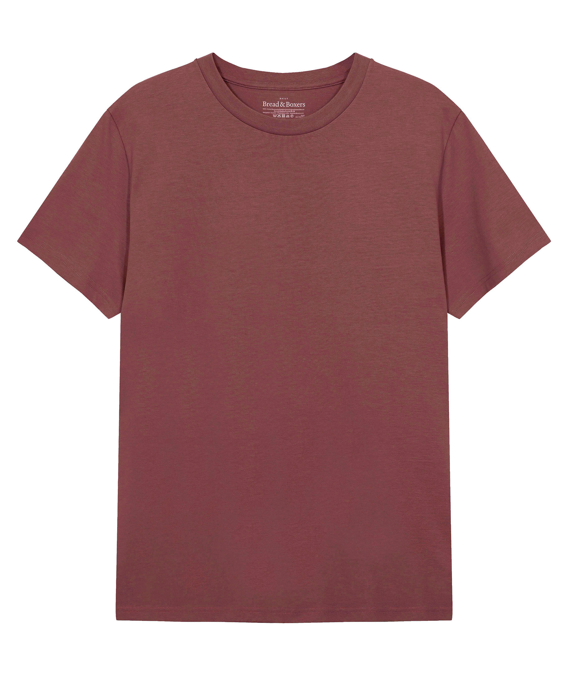 Vinröd t-shirt från Bread & Boxers. Klassisk, skräddad passform, robust halsringning med dold söm och optimal ärmlängd. Gjord med extra mjuk ekologisk bomull i en lite tjockare kvalitet och med tryck direkt i plagget istället för skavande lappar. Lika snygg att bära till jeans som den är skön under en skjorta. En självklarhet i din basgarderob. Modellen på bilden är 185 cm lång och bär storlek M.100% ekologisk bomull