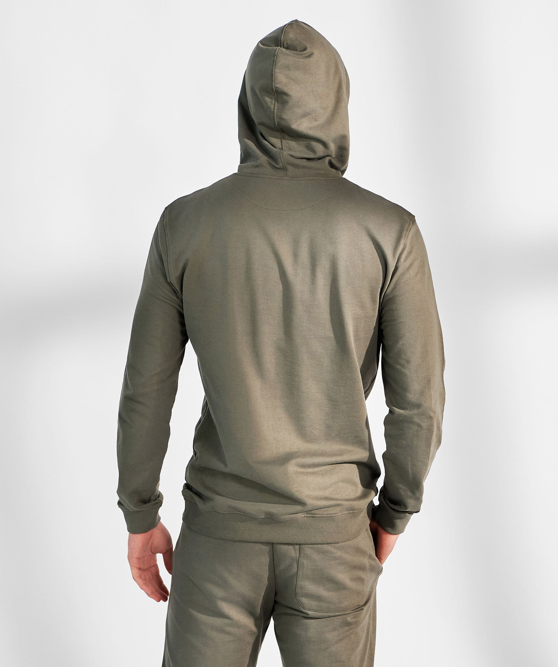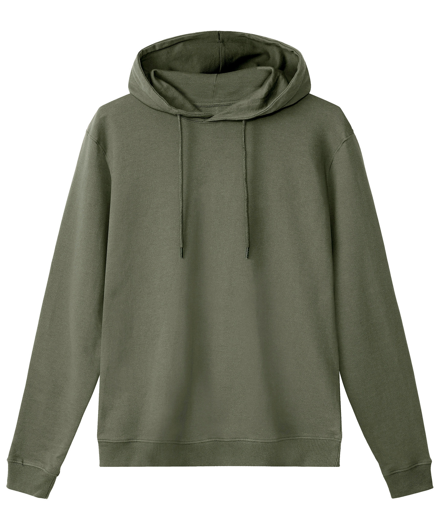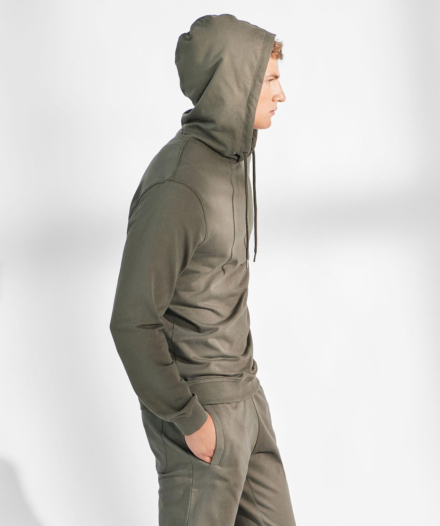Militärgrön hoodie från Bread & Boxers. Tillverkad i supermjuk ekologisk bomull och är lika avslappnad som stilsäker. Modellen har en skräddad passform och är fri från onödiga detaljer. Ledig, men utan störande bylsighet. Muddar i midja och ärmslut samt dragsko i huvan. Bomullssnören med metallavslut.