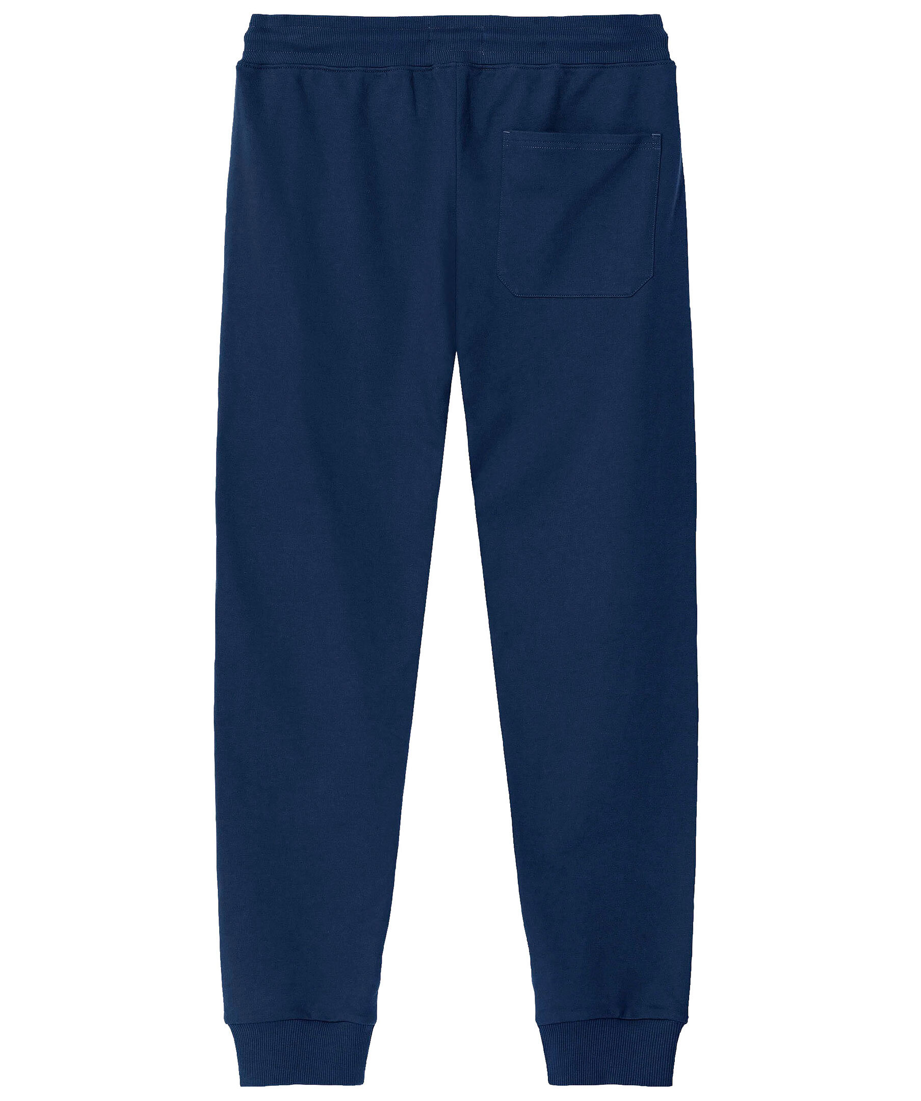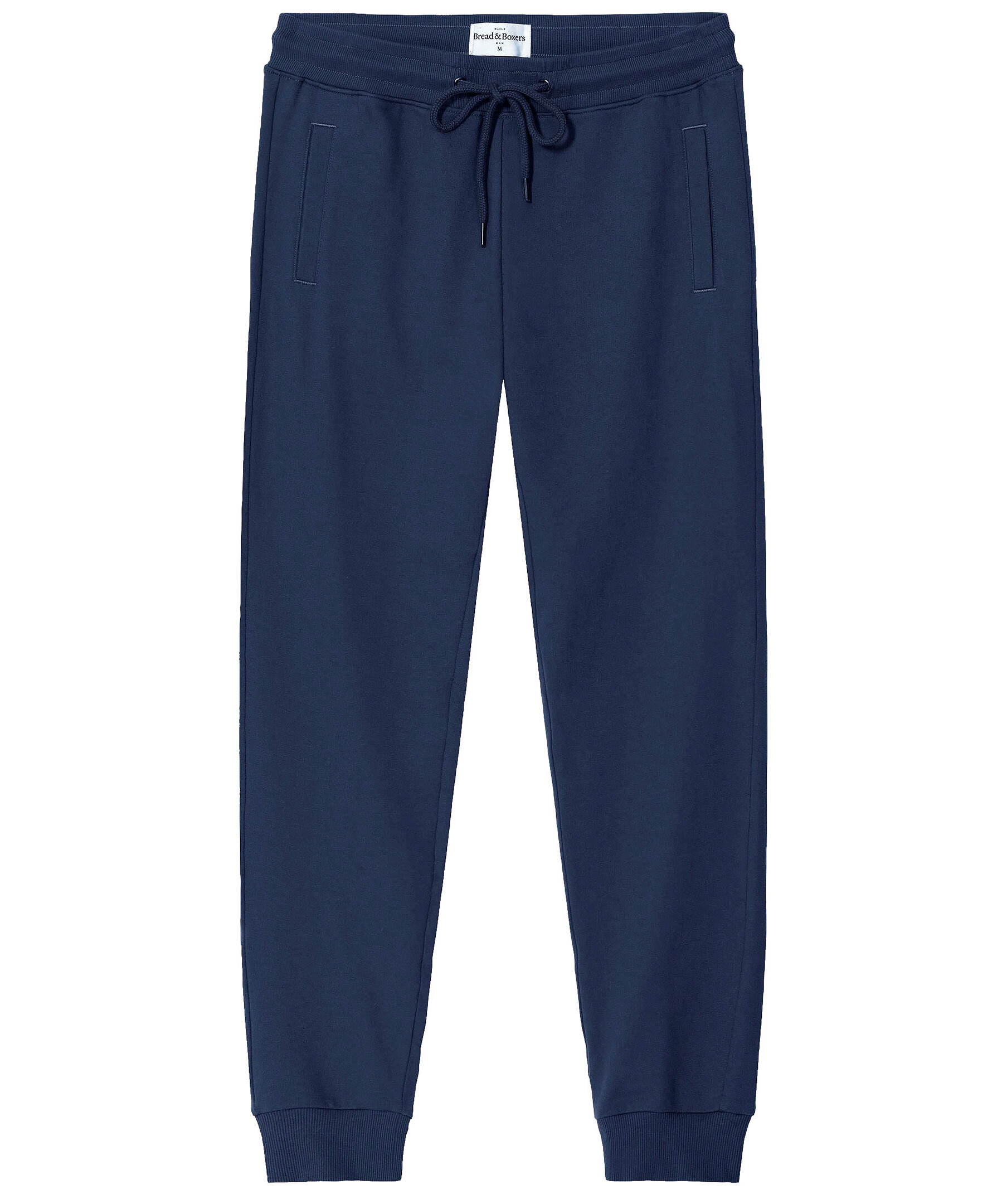 Marinblå mjukisbyxor från Bread & Boxers. Knyt och resår i midjan, två fickor fram, muddar i benslut. Tillverkad i 100% ekologisk bomull.