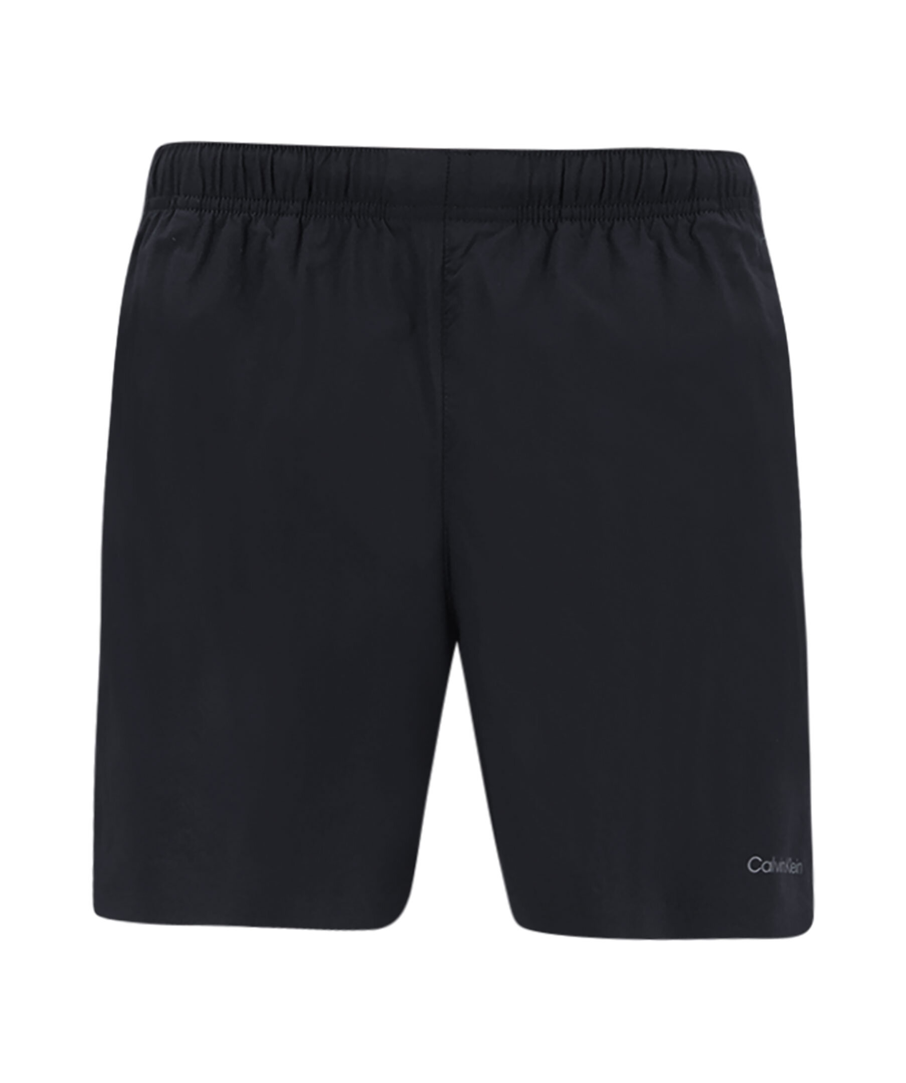 Svarta badshorts från Calvin Klein. Badshortsen har resår med snörning i midjan, öppna sidofickor samt en bakficka med dragkedja. Liten diskret logotyp vid bakfickan samt logotyp i nedkanten av ena benet. Tillverkad av en polyamidblandning.