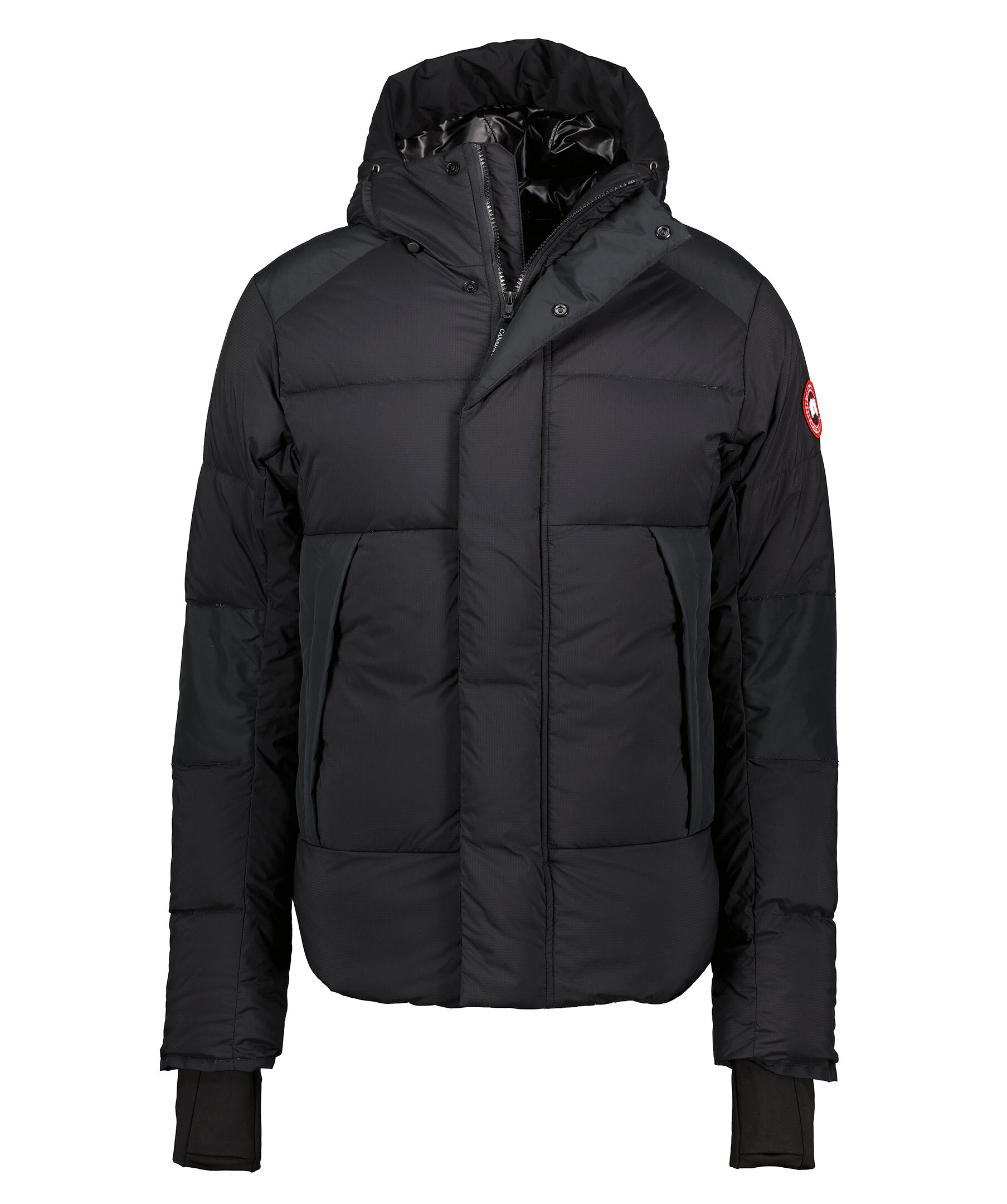 Svar dunjacka från Canada Goose. Slutar vid höften och stängs med en dragkedja och tryckknappar. Jacka går att packa ihop in i den vänstra fickan. Två fleecefodrade framfickor och två innerfickor; en säkerhetsficka med dragkedja och en meshficka. Ribbstickade muddar vid ärmslutet och luva med dragsko. Gjord för att hålla dig varm i temperaturer mellan 0°C till -15°C.