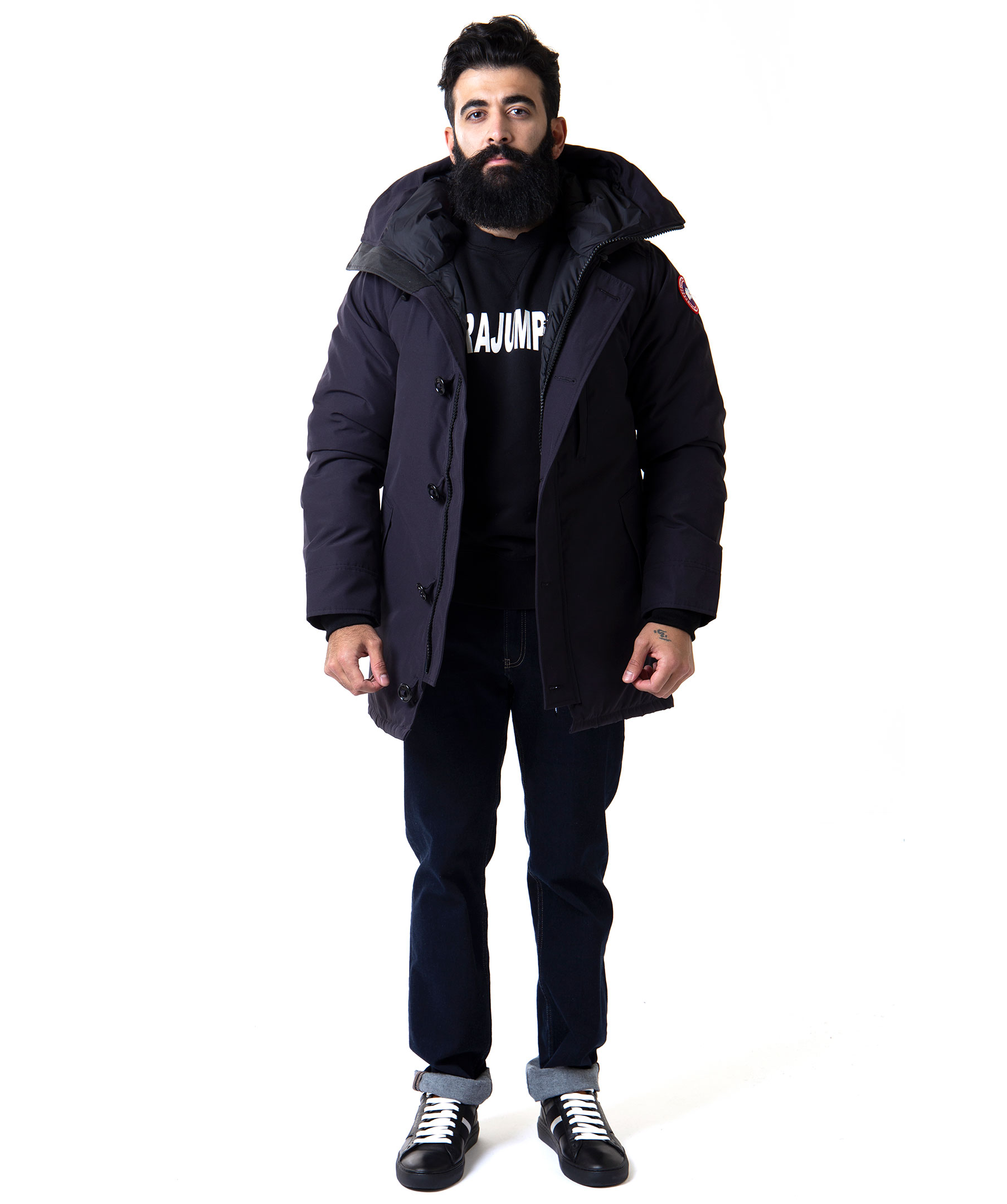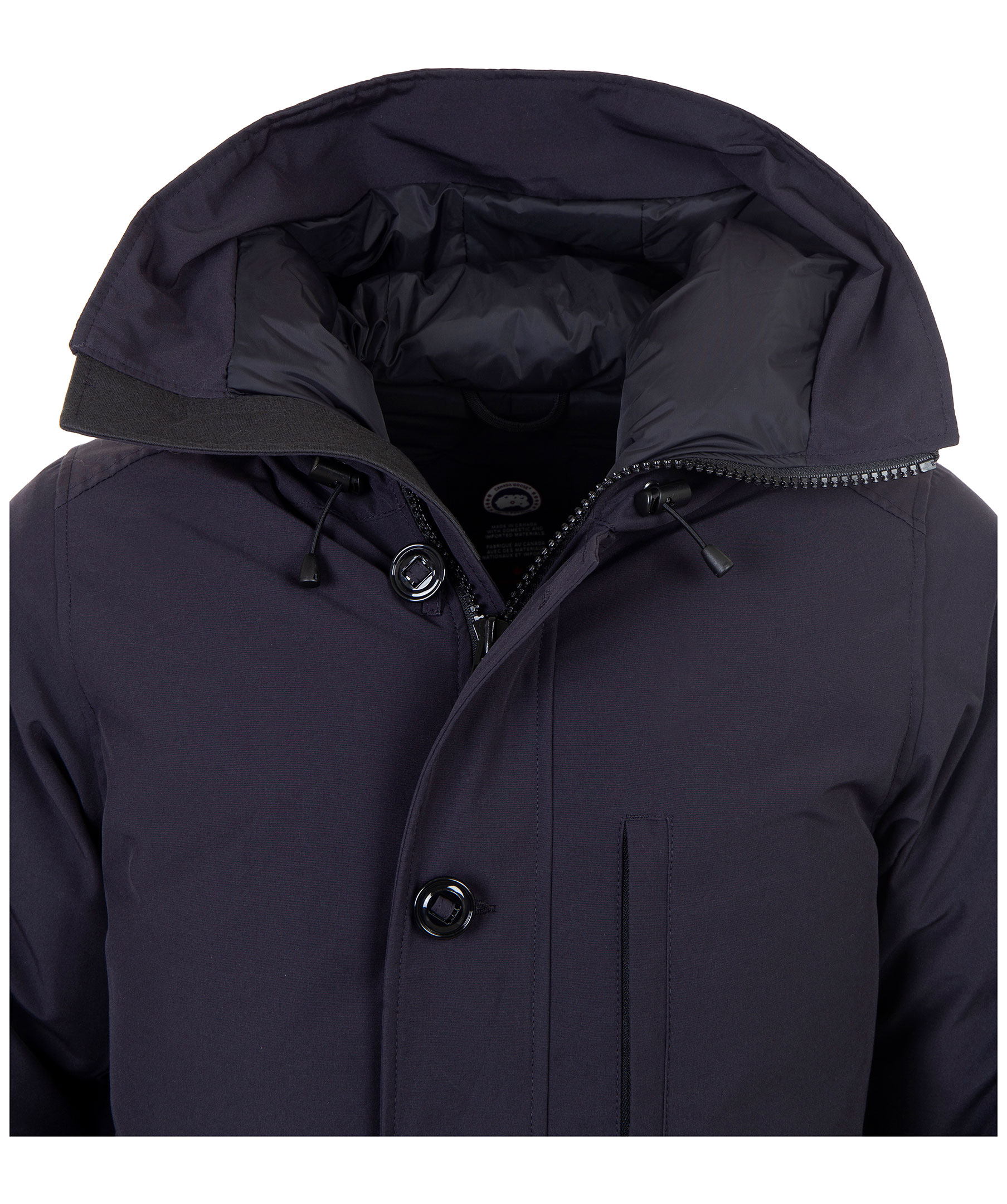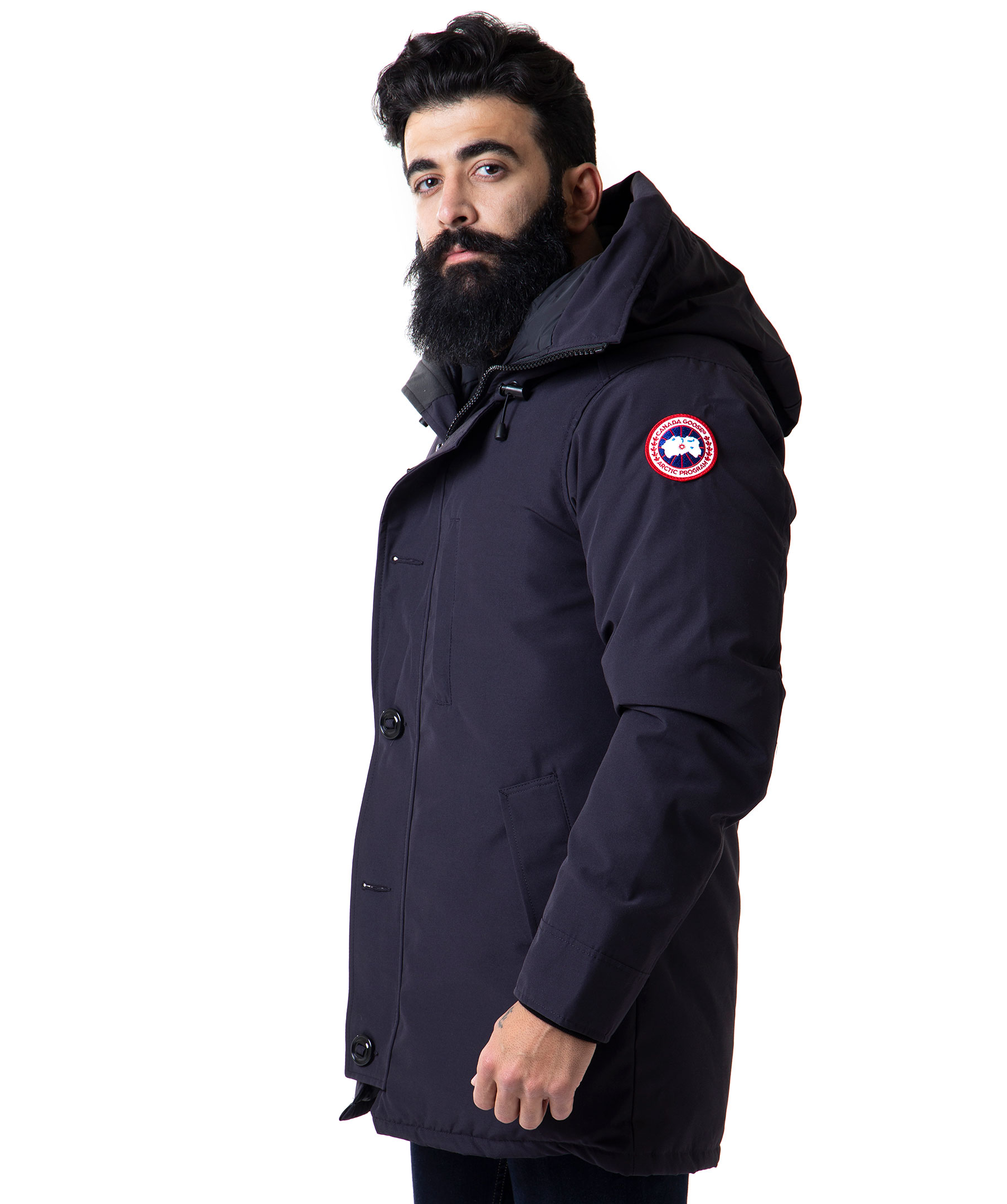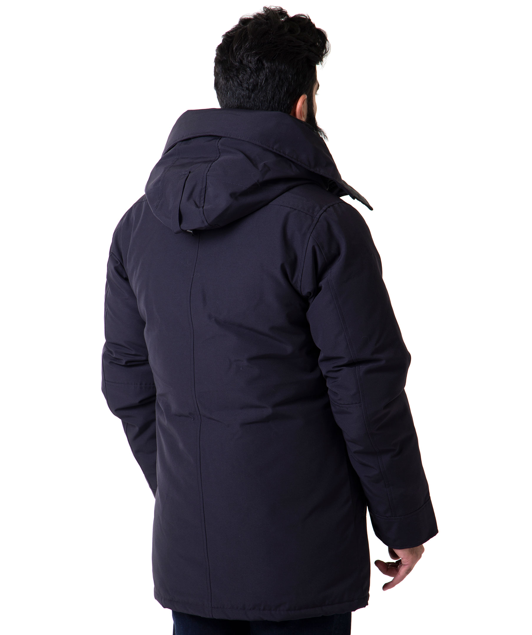 Chateau Parka dunjacka från Canada Goose. En lårlång jacka med hög krage och fast huva med justerbar dragsko och slejf. Två snedställda frontfickor med ficklock, bröstficka på vänster sida samt tre innerfickor. Ribbstickad mudd vid ärmslut samt tvåvägsdragkedja och knappar fram. Klassiskt Canada Goose märke på vänster ärm. Modellen är 177 cm lång och bär storlek M.