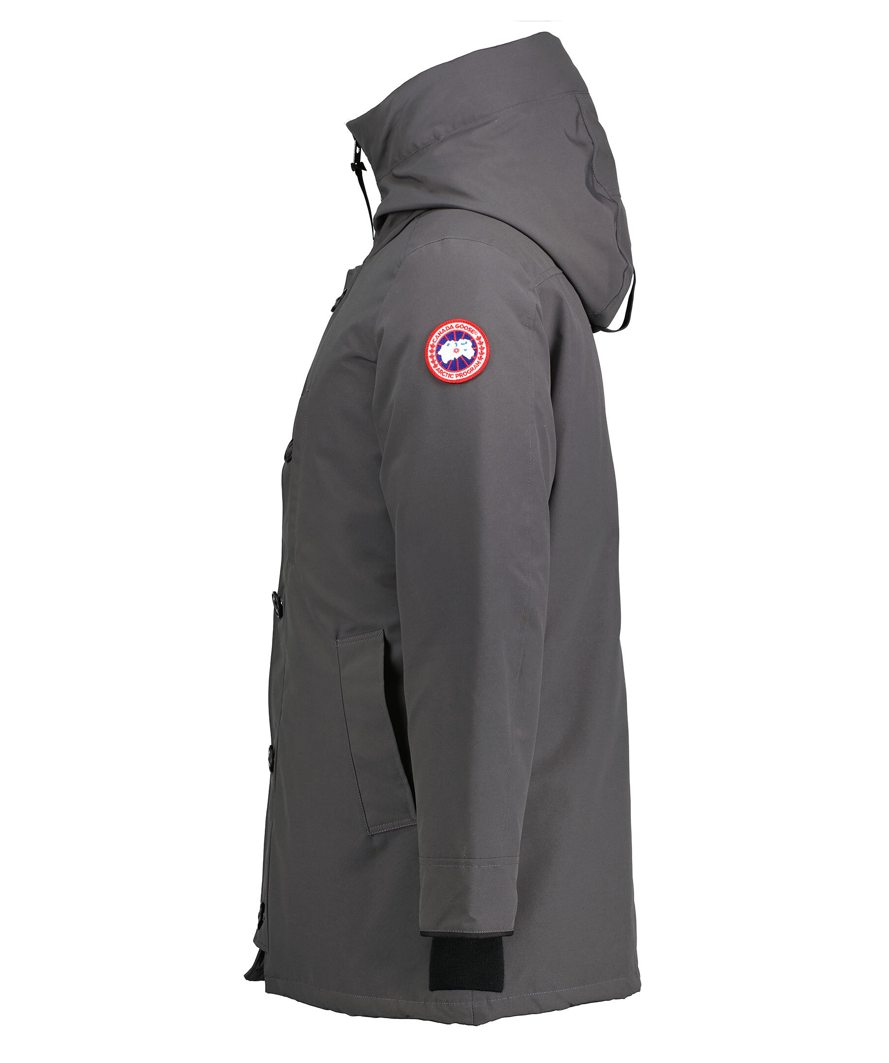 Grå dunjacka med luva från Canada Goose. Jackan har en något figursydd passform och slutar vid låret. Stängs med en ordentlig dragkedja och knappar för att hålla kylan borta. Två framfickor med fleecefoder och en bröstficka. Tre innerfickor; två meshfickor och en säkerhetsficka med dragkedja. Ribbade muddar vid ärmslutet och broderad patch med logotyp på vänster överärm. Gjord för att hålla dig varm mellan -15°C till -25°C.
