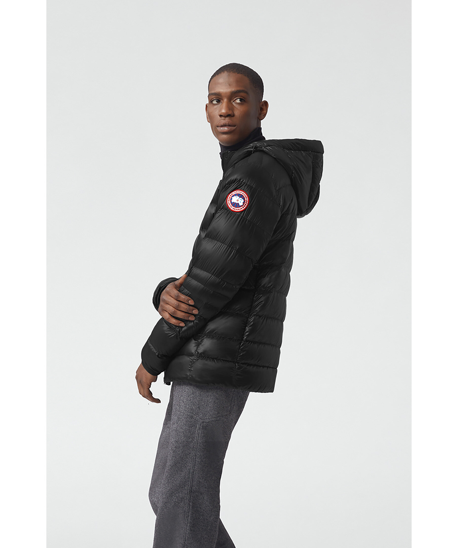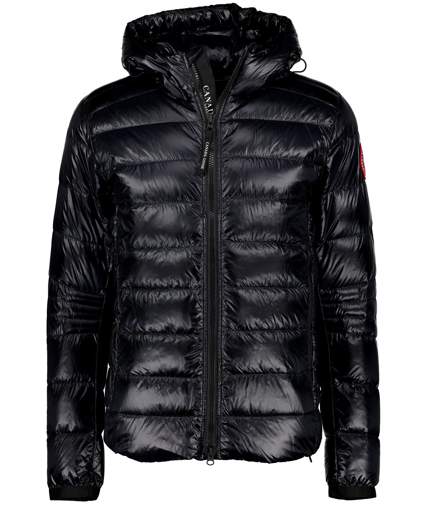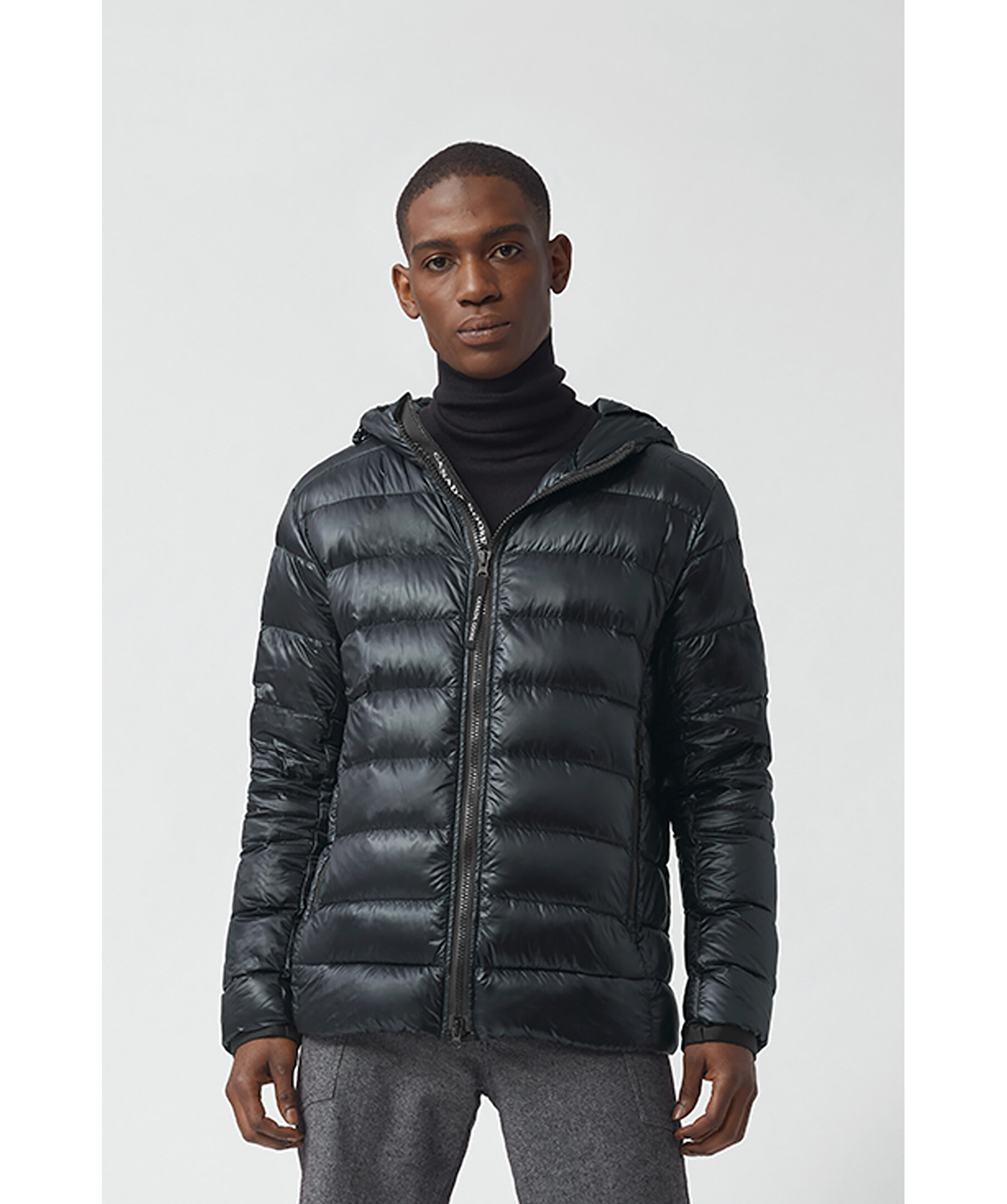 Svart lättviktsdunjacka med luva i en smal passform från Canada Goose. Jackan är vind och vattenavvisande. Två framfickor och två innerfickor. Smal elastiskt mudd vid ärmslut. Tygpatch med logotyp på vänster ärm. Dragsko vid plaggslut och luva. Stängs med en tvåvägsdragkedja och går att packa ihop lätt. Rekommenderas för temperaturer mellan -5° till 5°. Modellen är 185cm lång och har på sig storlek M.