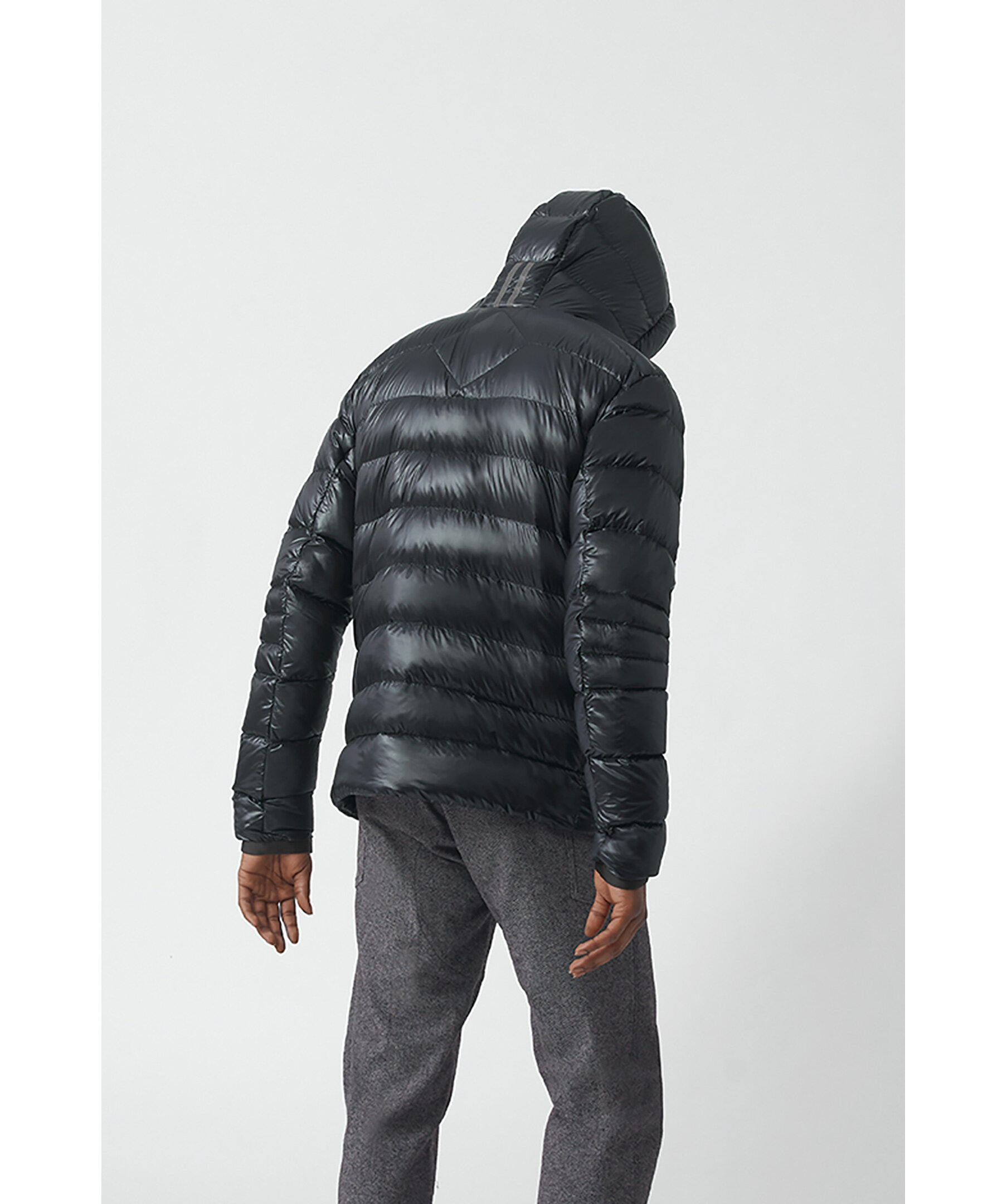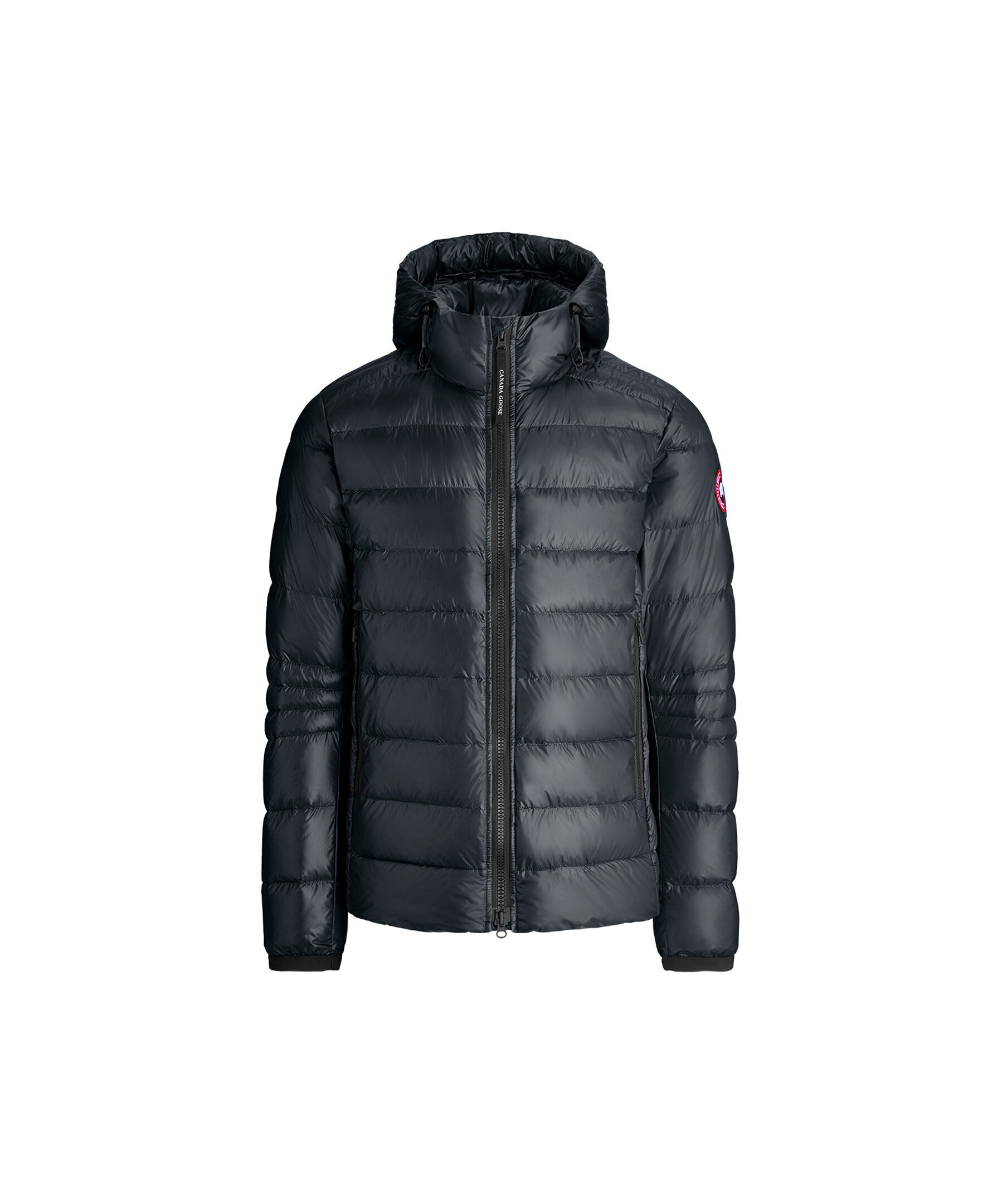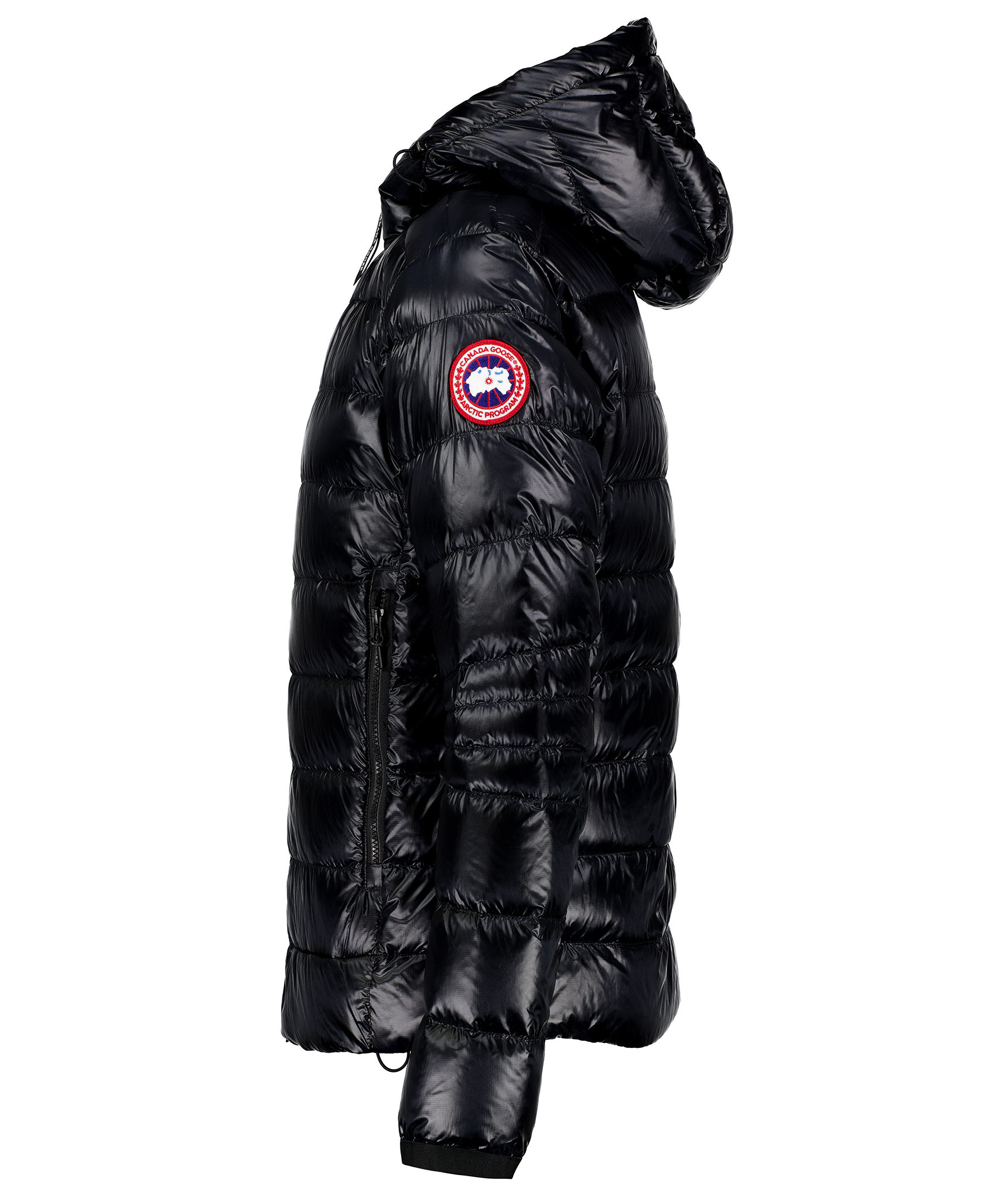 Svart lättviktsdunjacka med luva i en smal passform från Canada Goose. Jackan är vind och vattenavvisande. Två framfickor och två innerfickor. Smal elastiskt mudd vid ärmslut. Tygpatch med logotyp på vänster ärm. Dragsko vid plaggslut och luva. Stängs med en tvåvägsdragkedja och går att packa ihop lätt. Rekommenderas för temperaturer mellan -5° till 5°. Modellen är 185cm lång och har på sig storlek M.