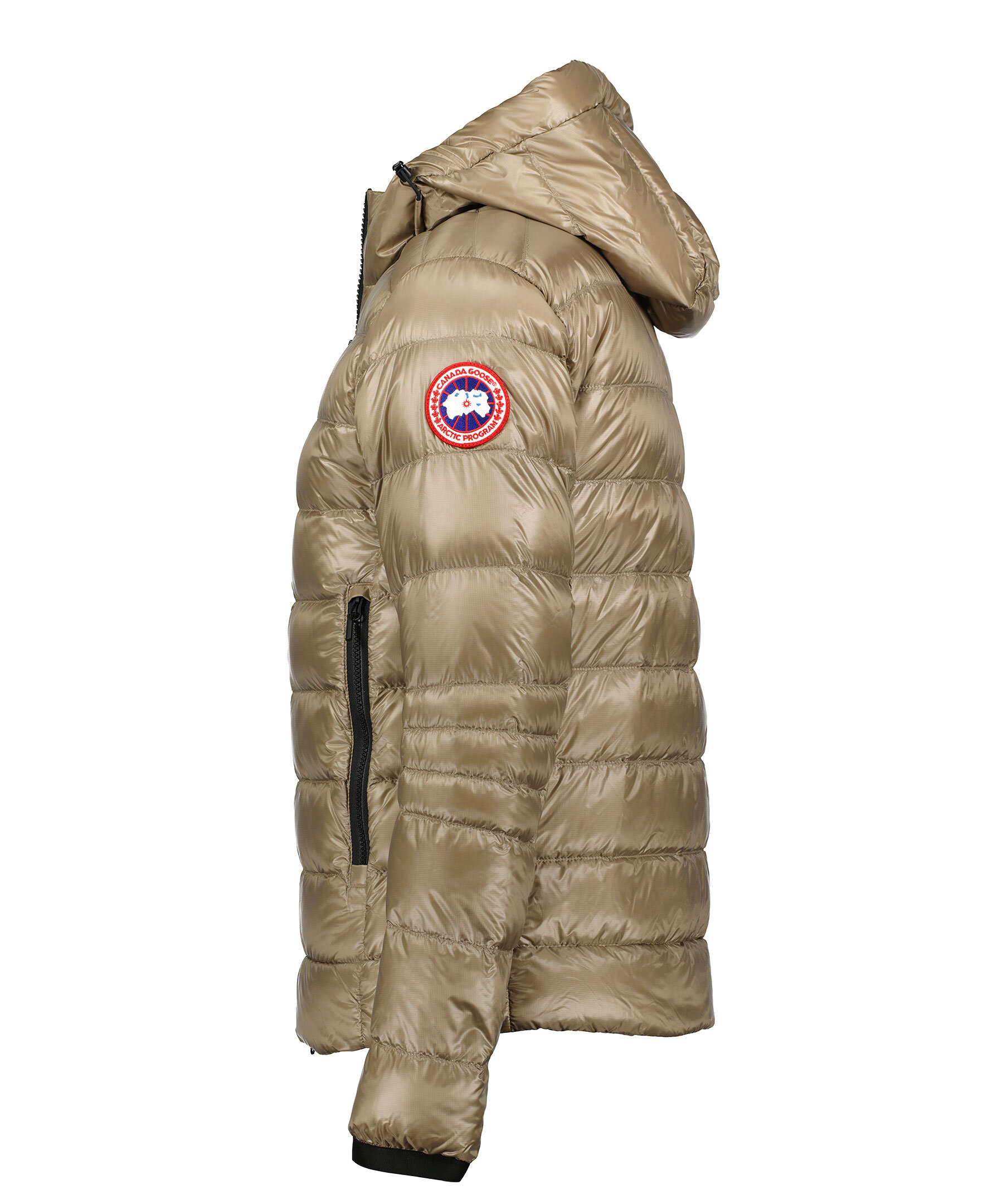 Mörkbeige dunjacka från Canada Goose. Tillverkad i nylon med dunfyllning, broderad logga på vänster ärm, en innerficka, luva, korta muddar och fickor med dragkedja.