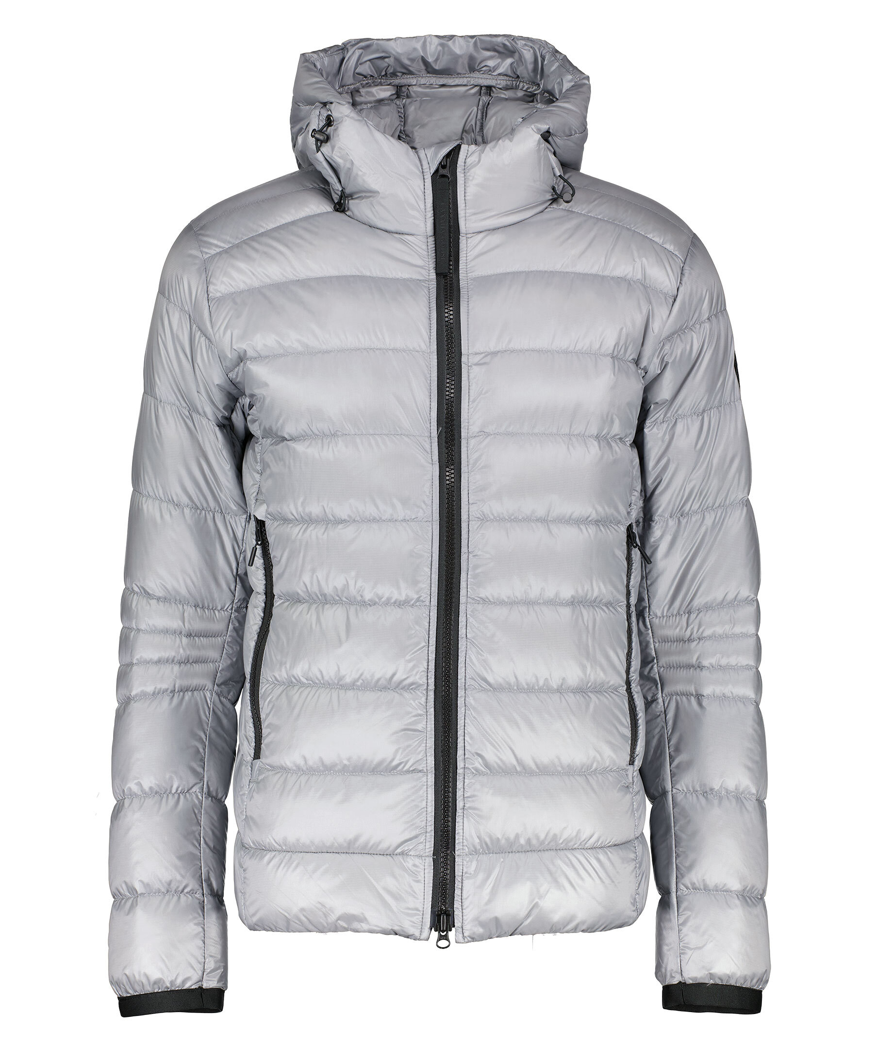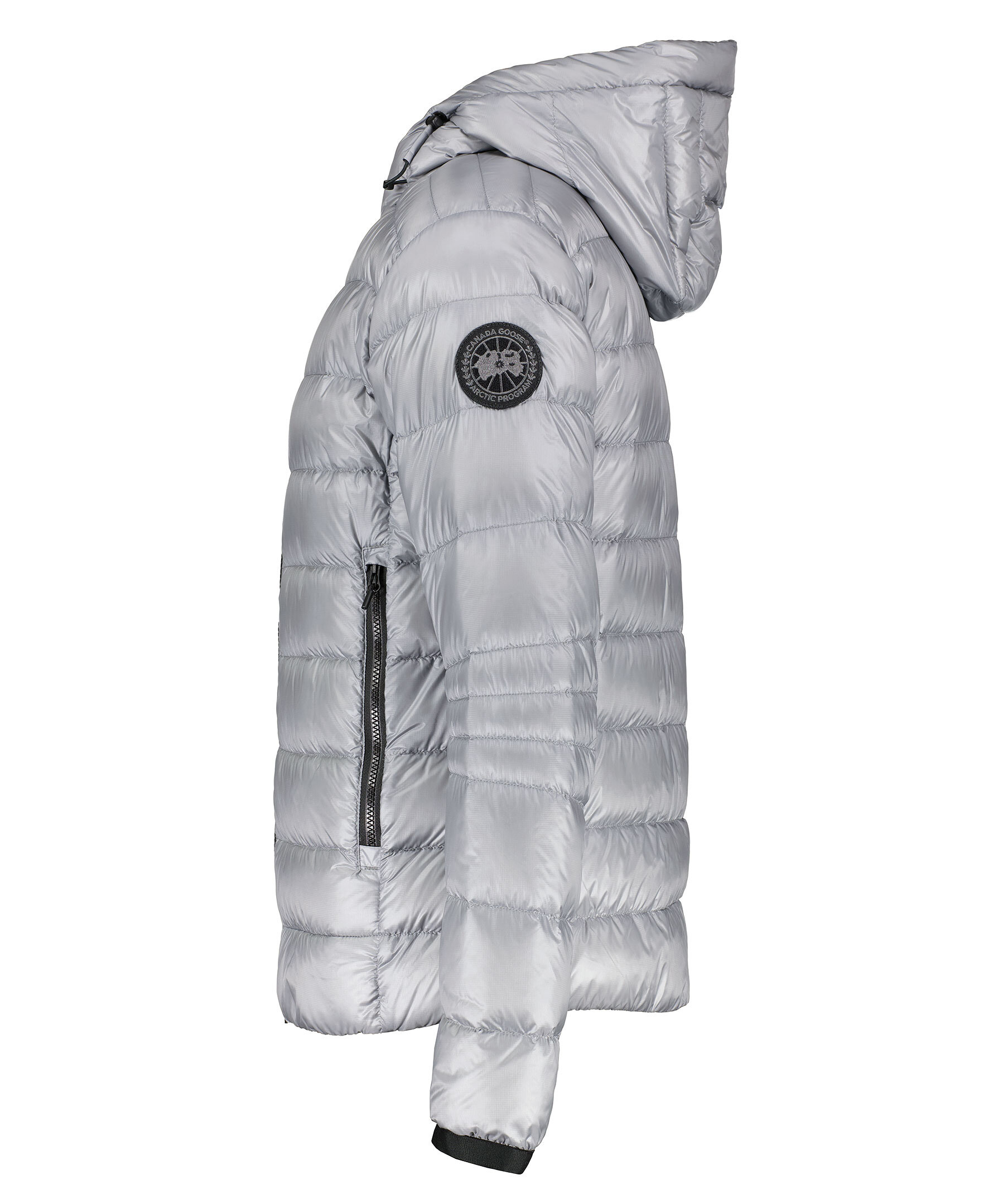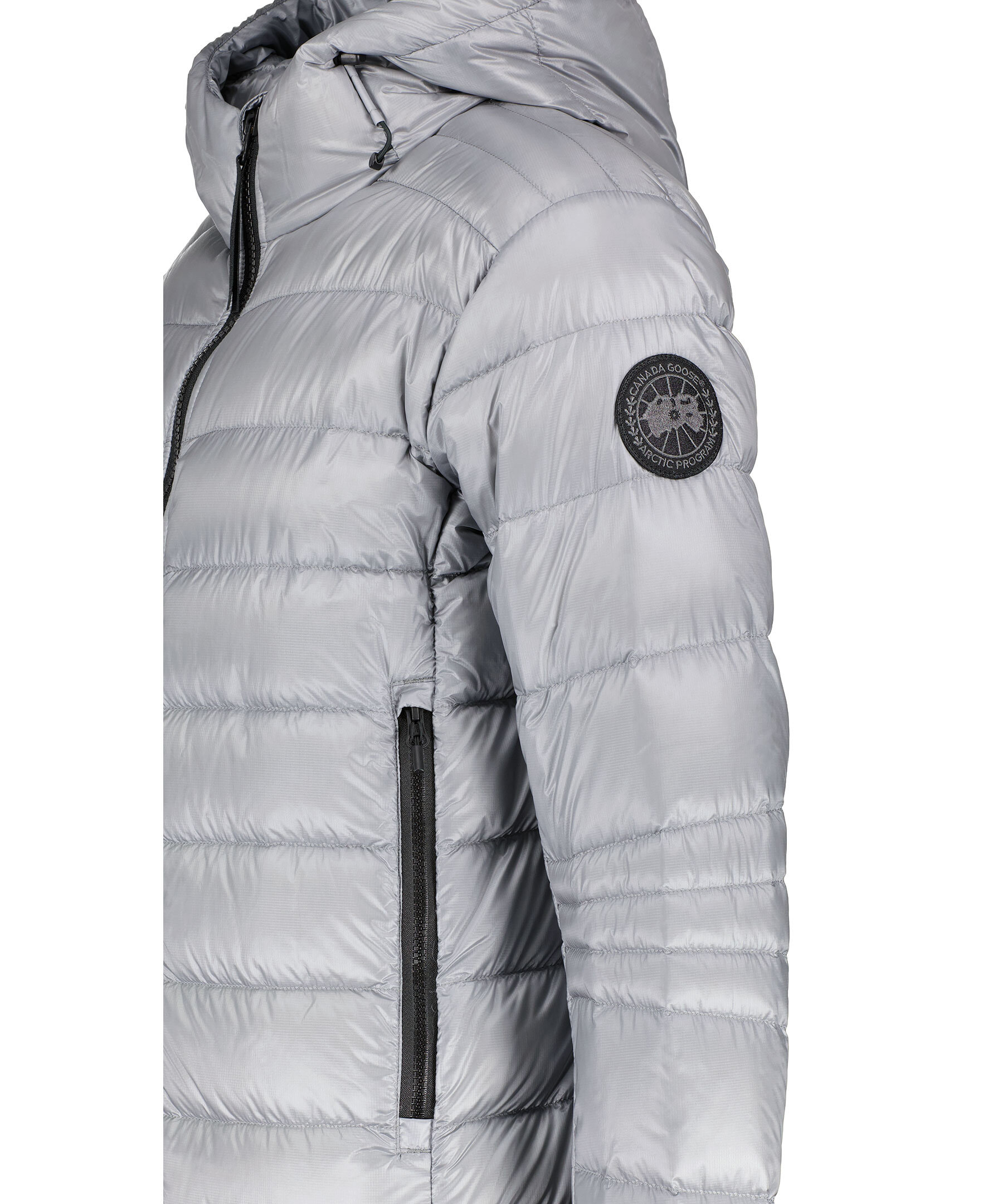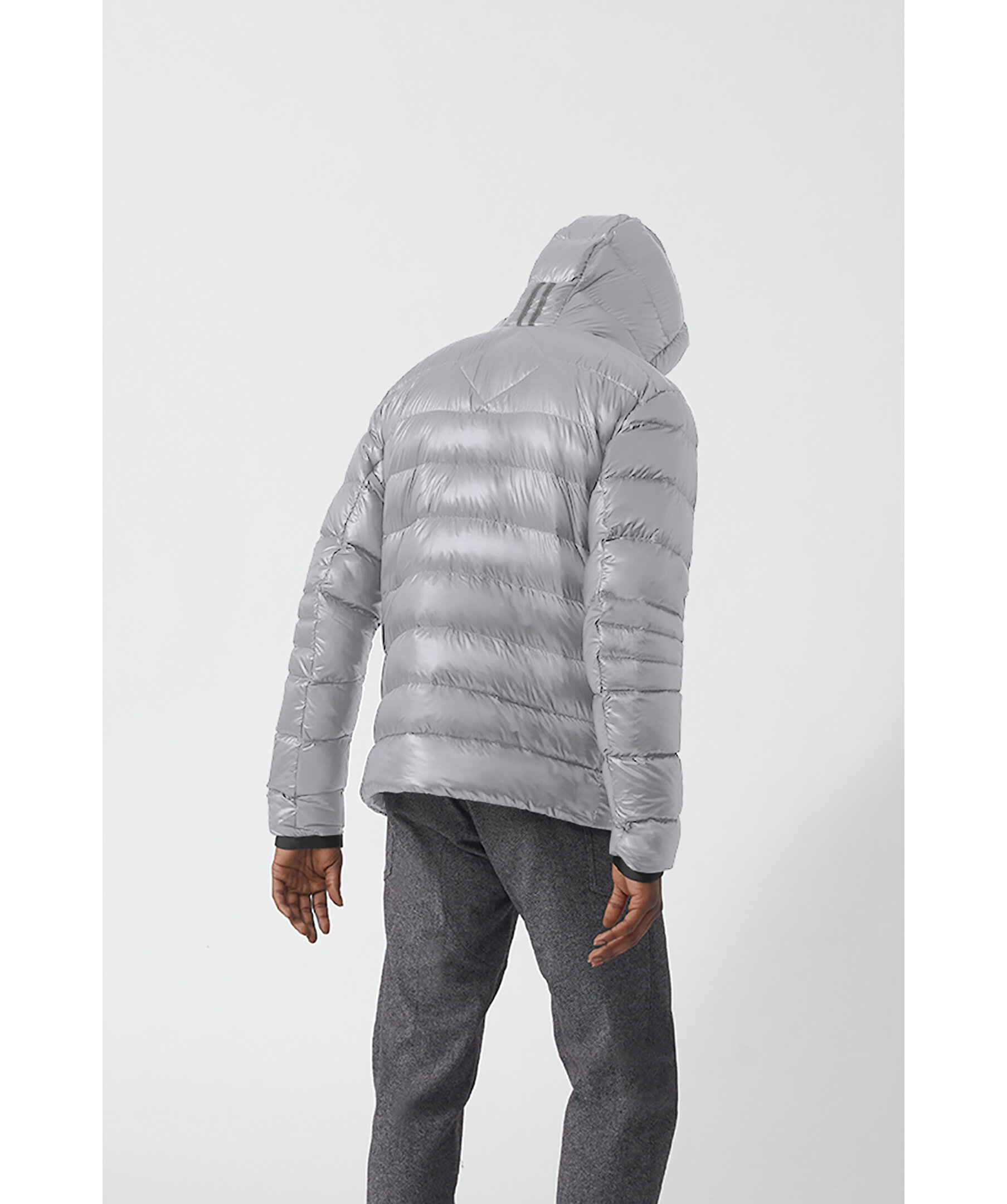 Grå lättviktsdunjacka med luva i en smal passform från Canada Goose. Jackan är vind och vattenavvisande. Två framfickor och två innerfickor. Smal elastiskt mudd vid ärmslut. Tygpatch med logotyp på vänster ärm. Dragsko vid plaggslut och luva. Stängs med en tvåvägsdragkedja och går att packa ihop lätt.