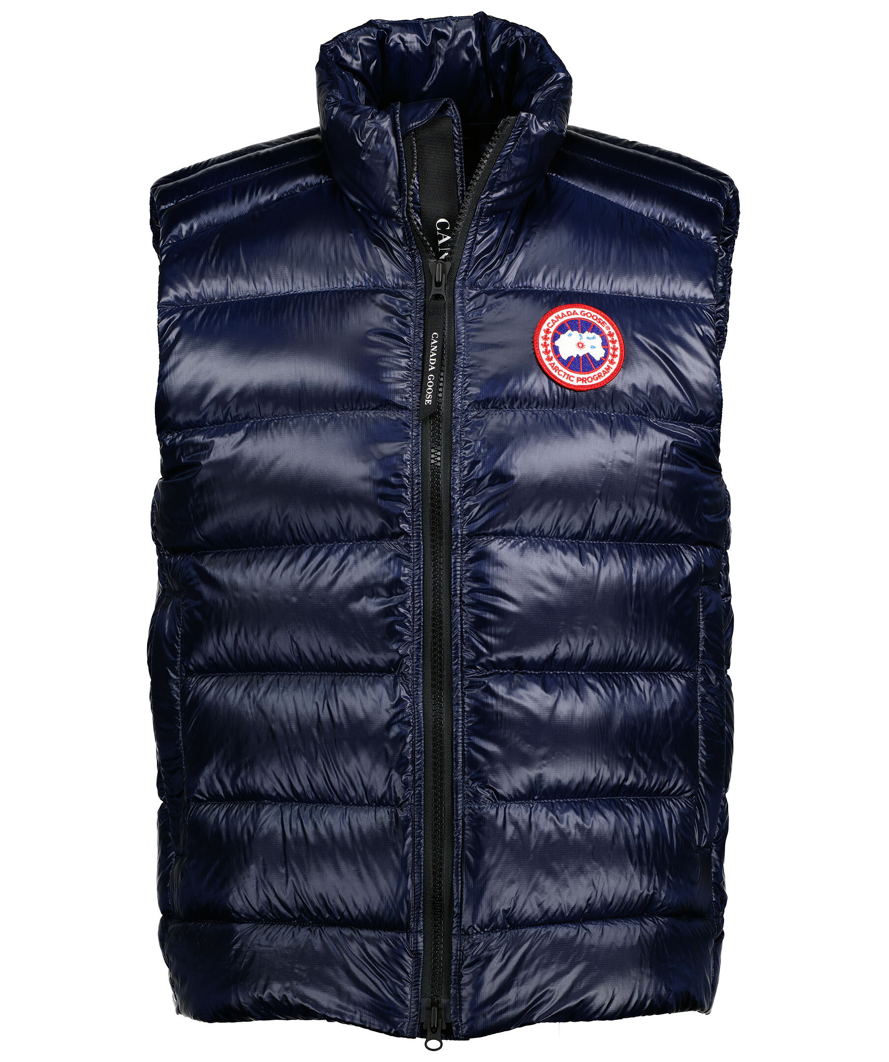 Mörkblå väst i lättviktsdun från Canada Goose i polyamid. Medellång väst med en fyllning av dun och fjäder, har halvglansigt material. Två framfickor med dragkedja och en innerficka som man kan packa ner västen i och dra igen samt stängs med en tvåvägsdragkedja. Klassiskt Canada Goose märke på vänster bröst.* Tvåvägsdragkedja * Två fickor med dragkedja * Broderad logotyp på bröstet