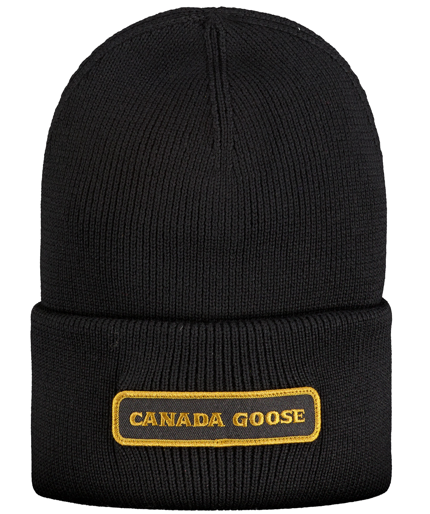Svart mössa från Canada Goose. Stor broderad logga framtill, uppvikt kant. Tillverkad i 100% ull.