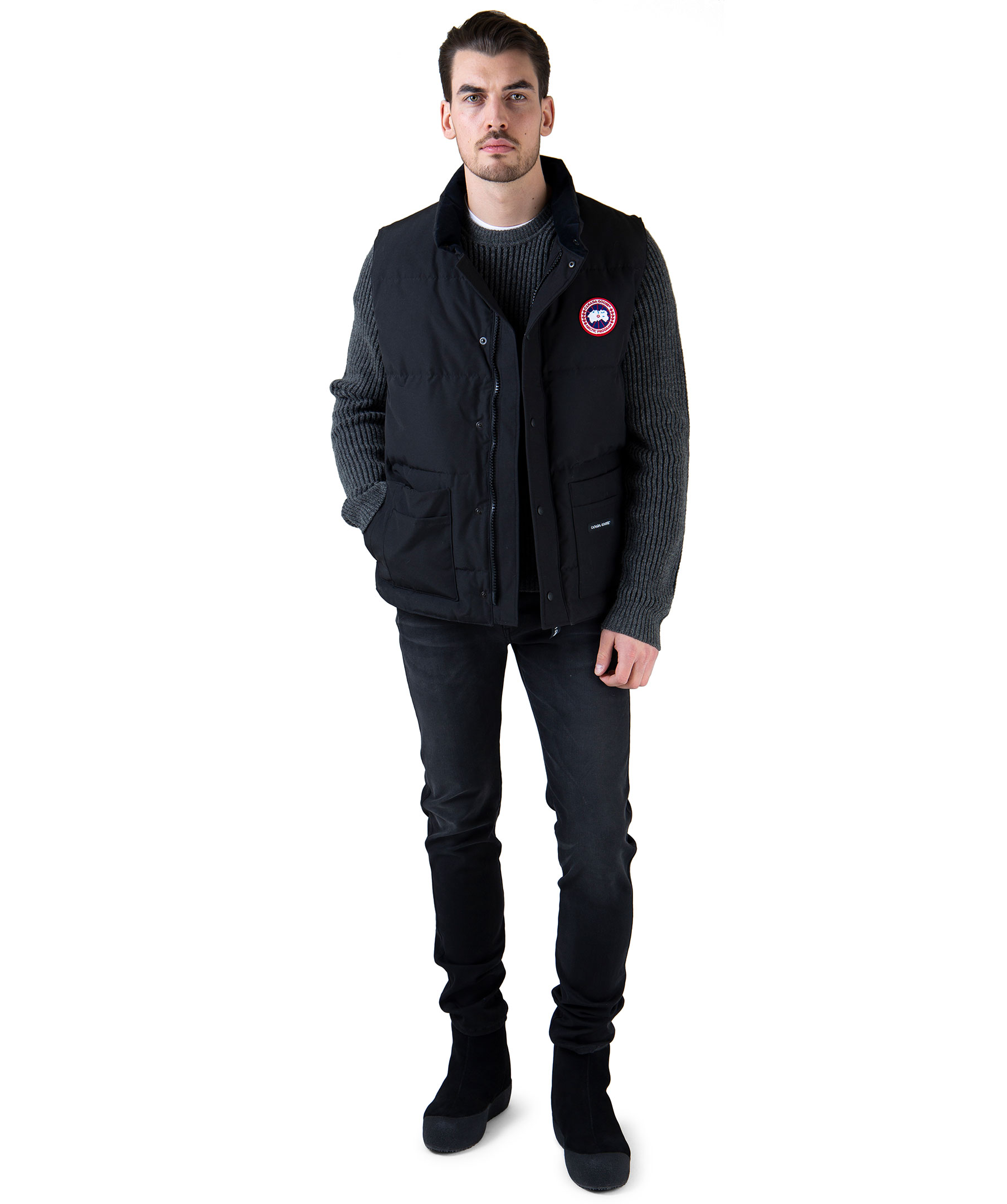 Klassiska Freestyle Vest från Canada Goose är en medellång väst med fleece på insidan av kragen. Sex frontfickor samt två innerfickor, en med dragkedja och en öppen. Dold tvåvägsdragkedja och tryckknappar fram. Klassiskt Canada Goose märke på vänster bröst.