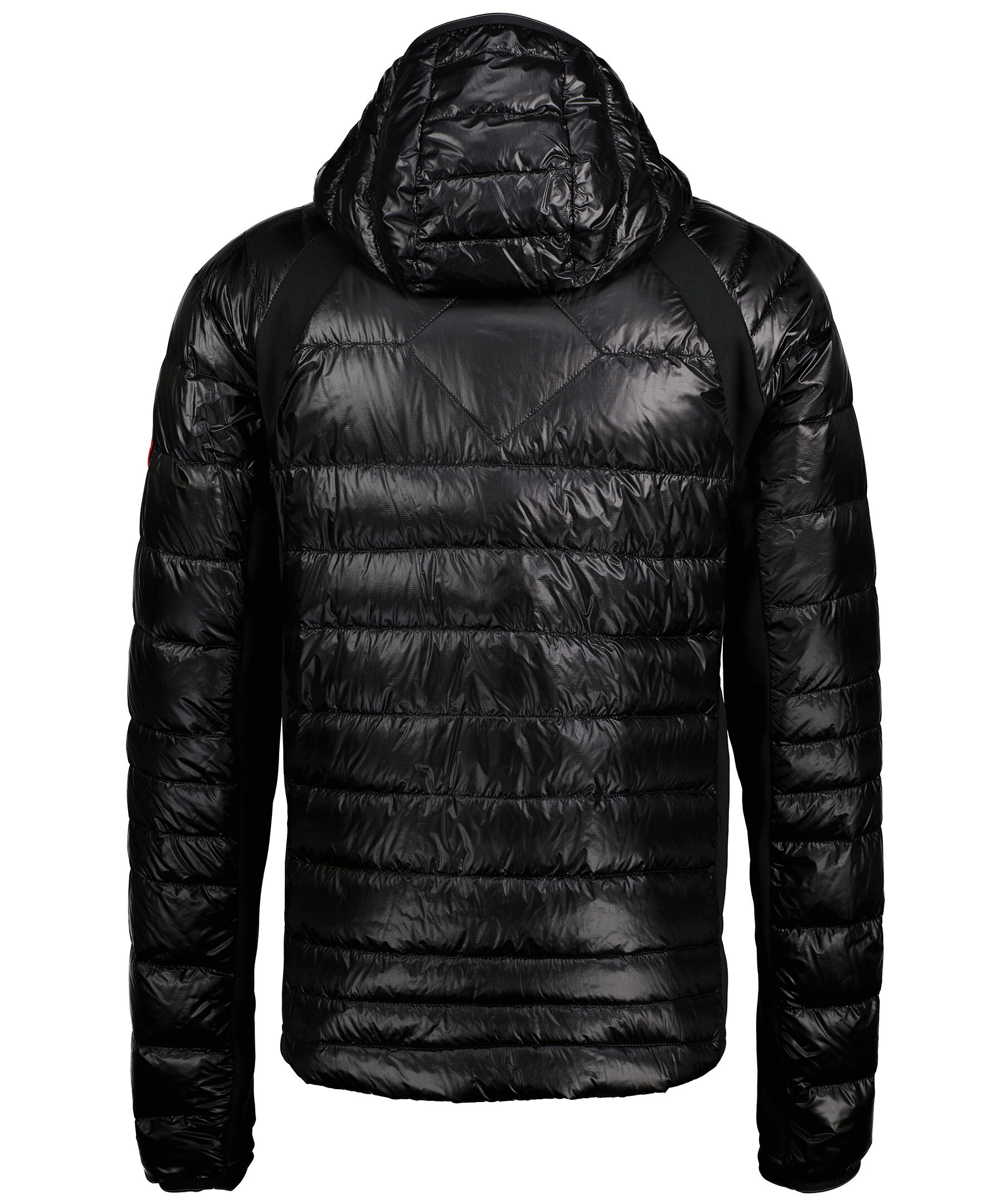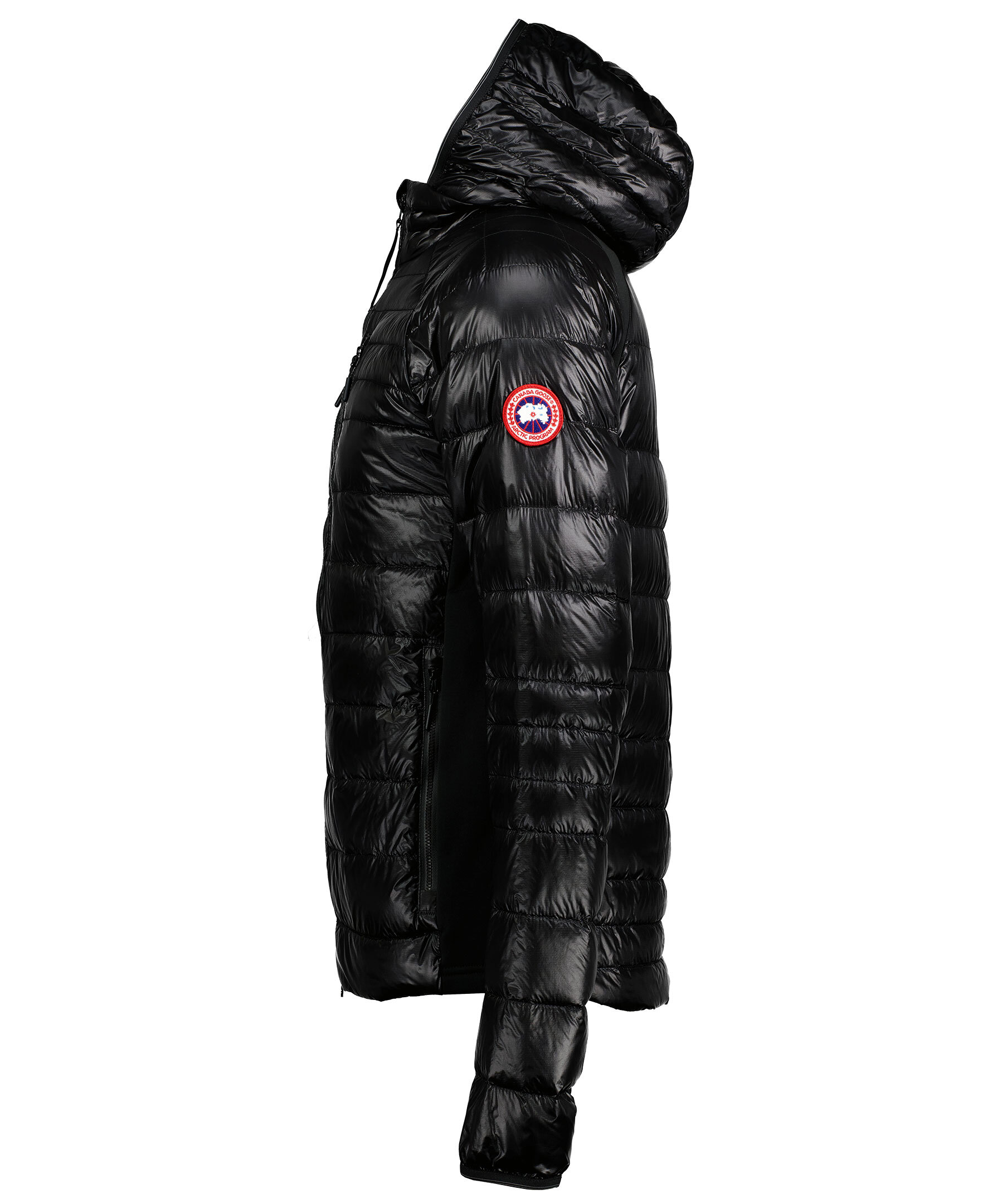 Svart lättviktsdunjacka med luva i en smal passform från Canada Goose. Jackan är vind och vattenavvisande. Två framfickor och två bröstfickor med dragkedja samt två innerfickor. Smal elastiskt mudd vid ärmslut och elastiskt tyg i sidorna för bättre röslighet. Tygpatch med logotyp på vänster ärm. Stängs med en tvåvägsdragkedja och går att packa ihop lätt. Rekommenderas för temperaturer mellan -5° till 5°. * Figursydd * Vind och vattenavvisande * Kort modell