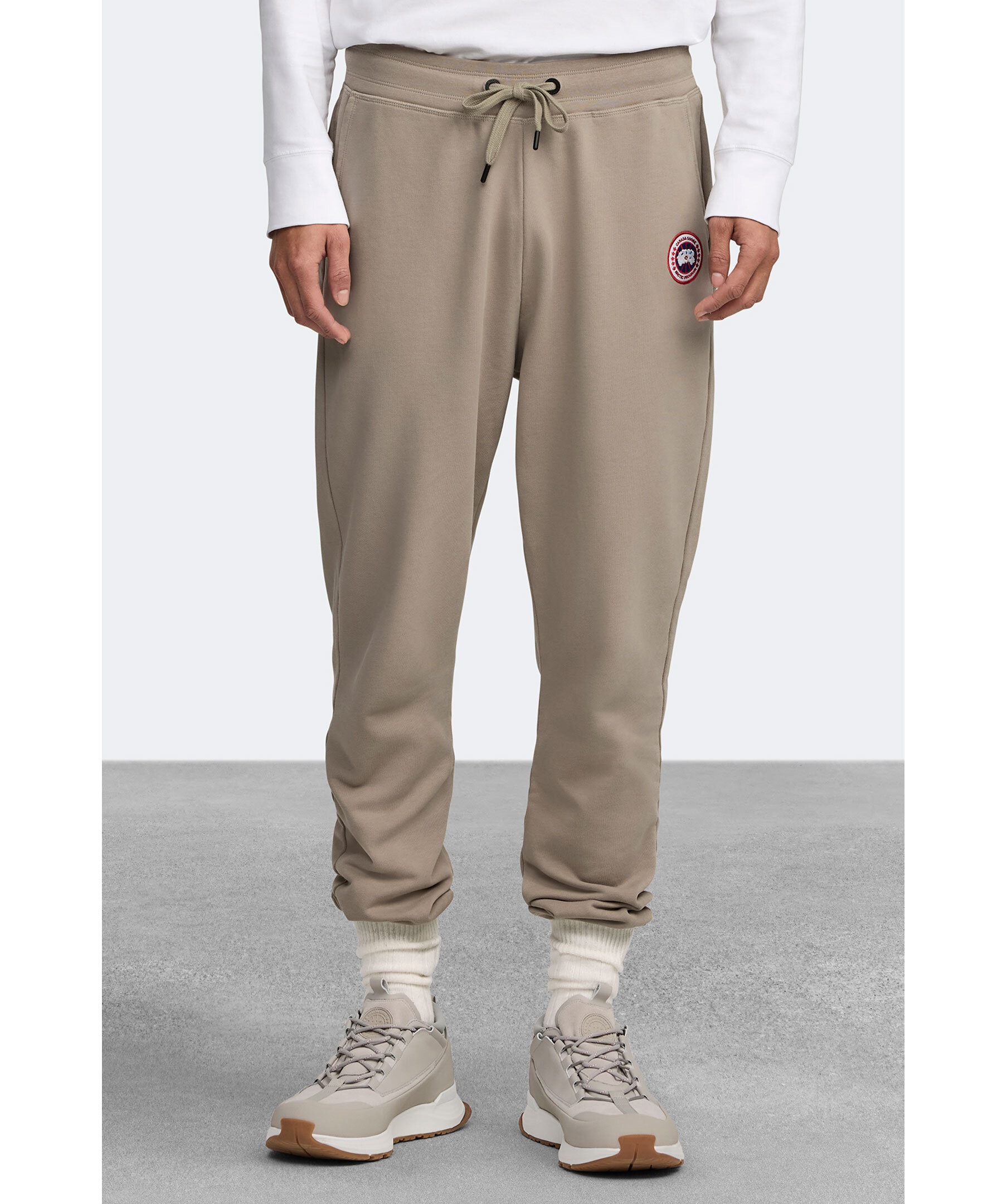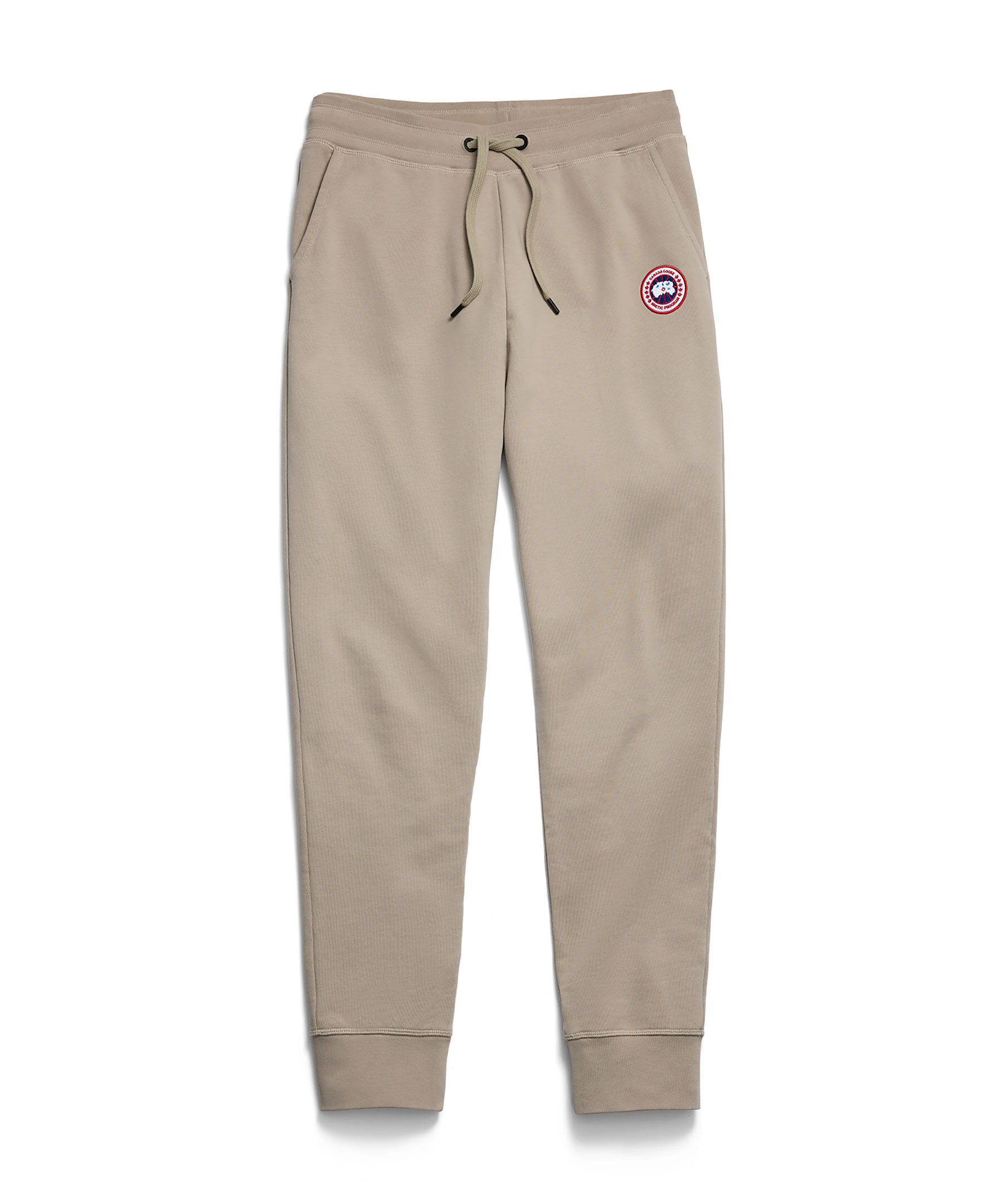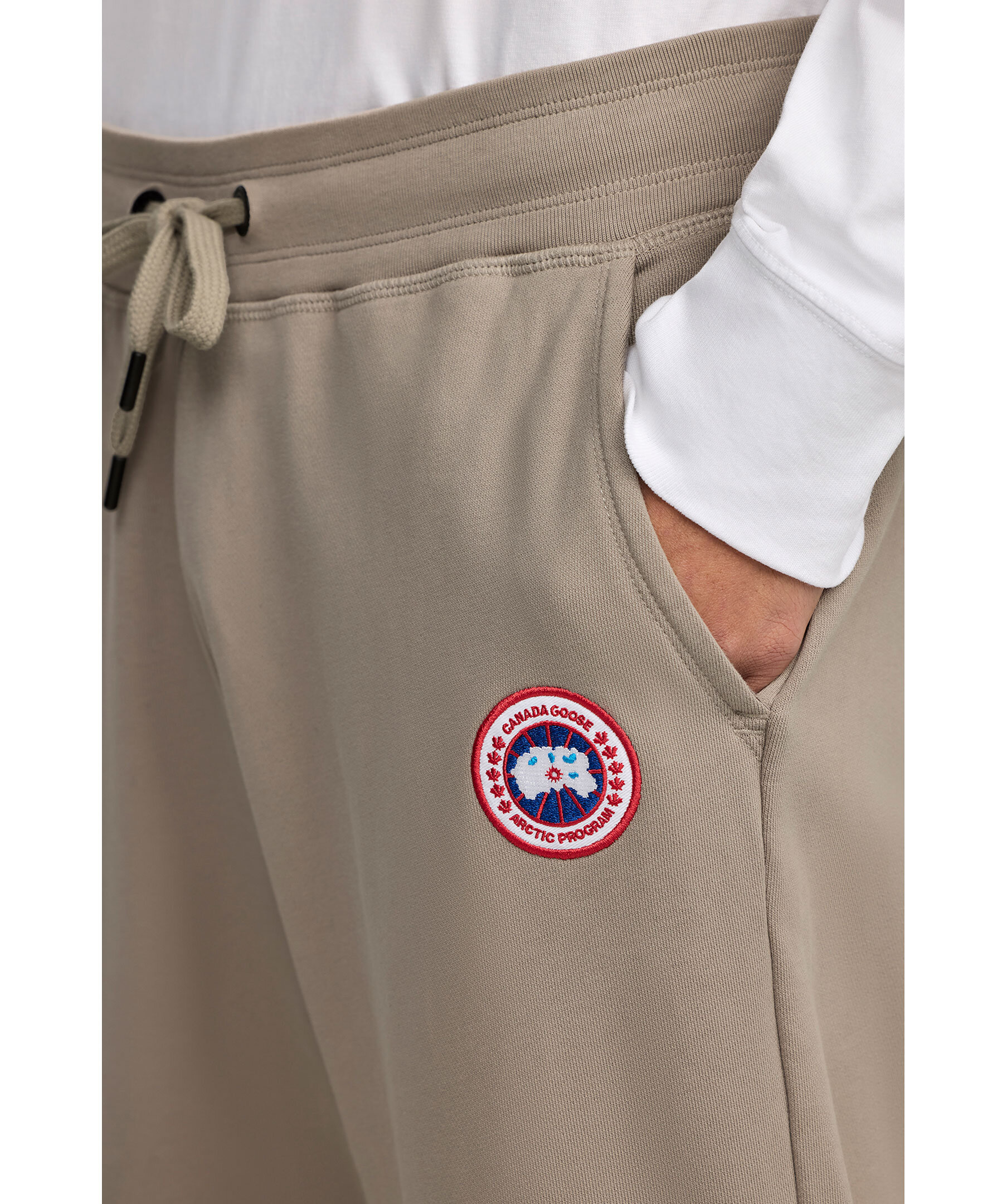 Mörka, sandfärgade mjukisbyxor från Canada Goose. Byxorna har dragsko i midjan, ribbstickade muddar i midjan och benslut samt två fickor i sidan, en bakficka. Broderad patch med logotyp på vänster lår. Tillverkad i bomull.
