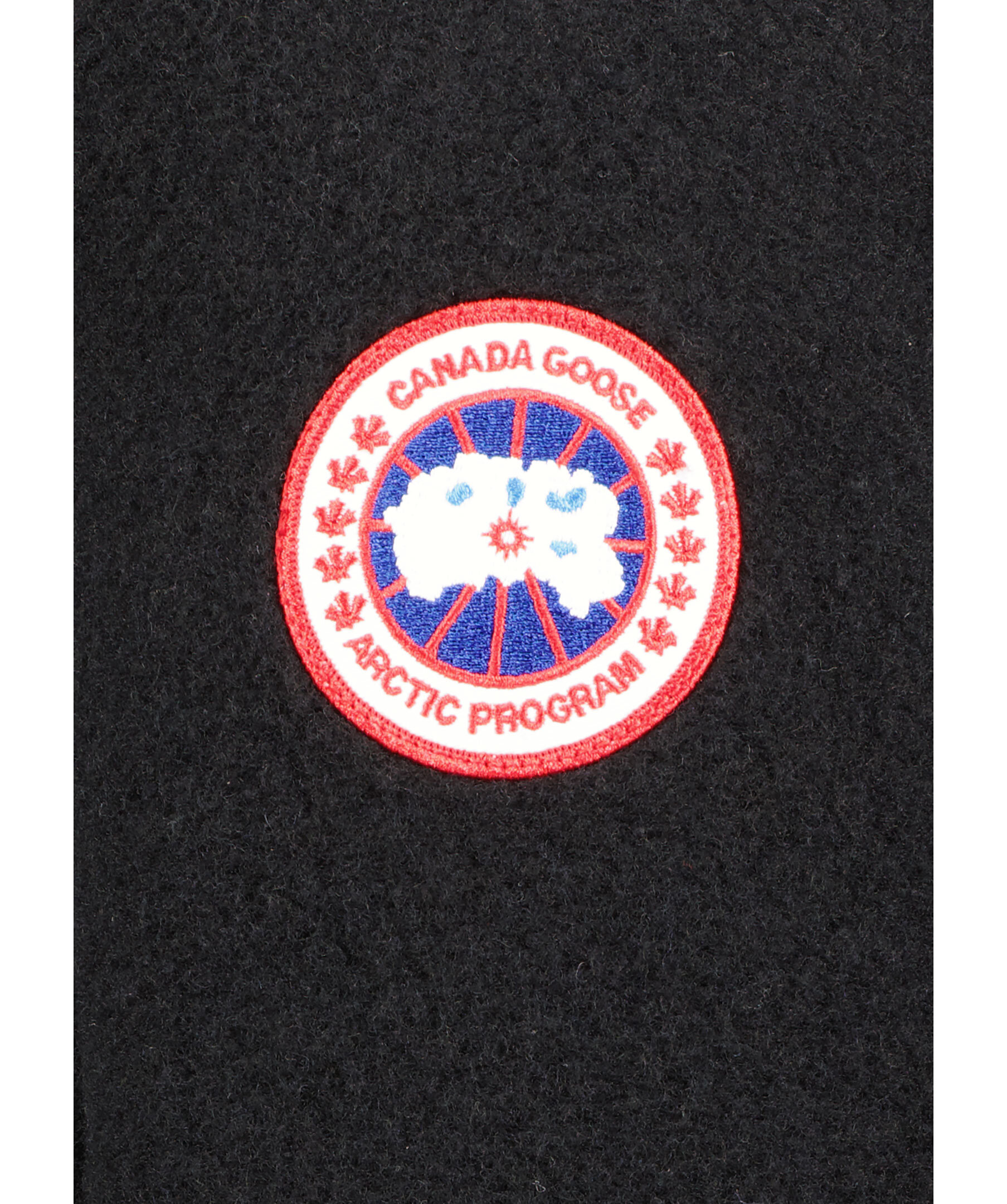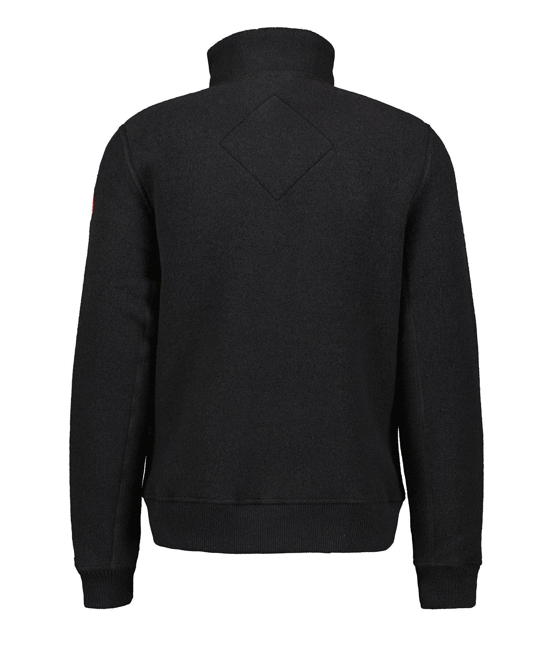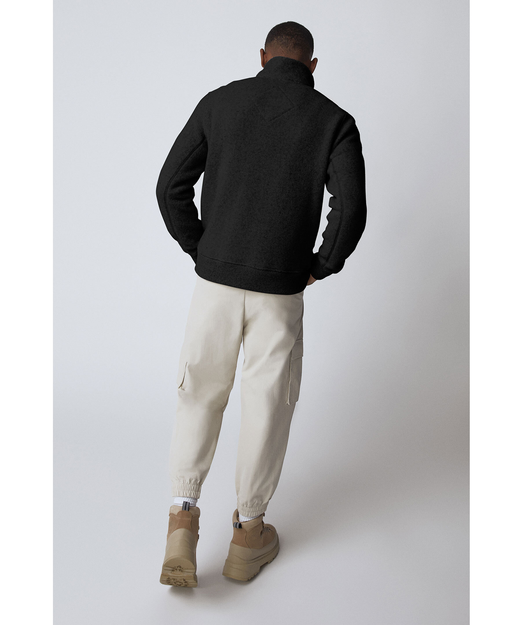 Svart tröja från Canada Goose. Tröjan har dragkedja fram, långa ärmar med ribbade ärmslut. Två sidofickor som stängs med tryckknapp, ribbad fåll samt ståkrage. Klassisk Canada Goose logga på vänster ärm. Tillverkad av en återvunnen ullblandning.