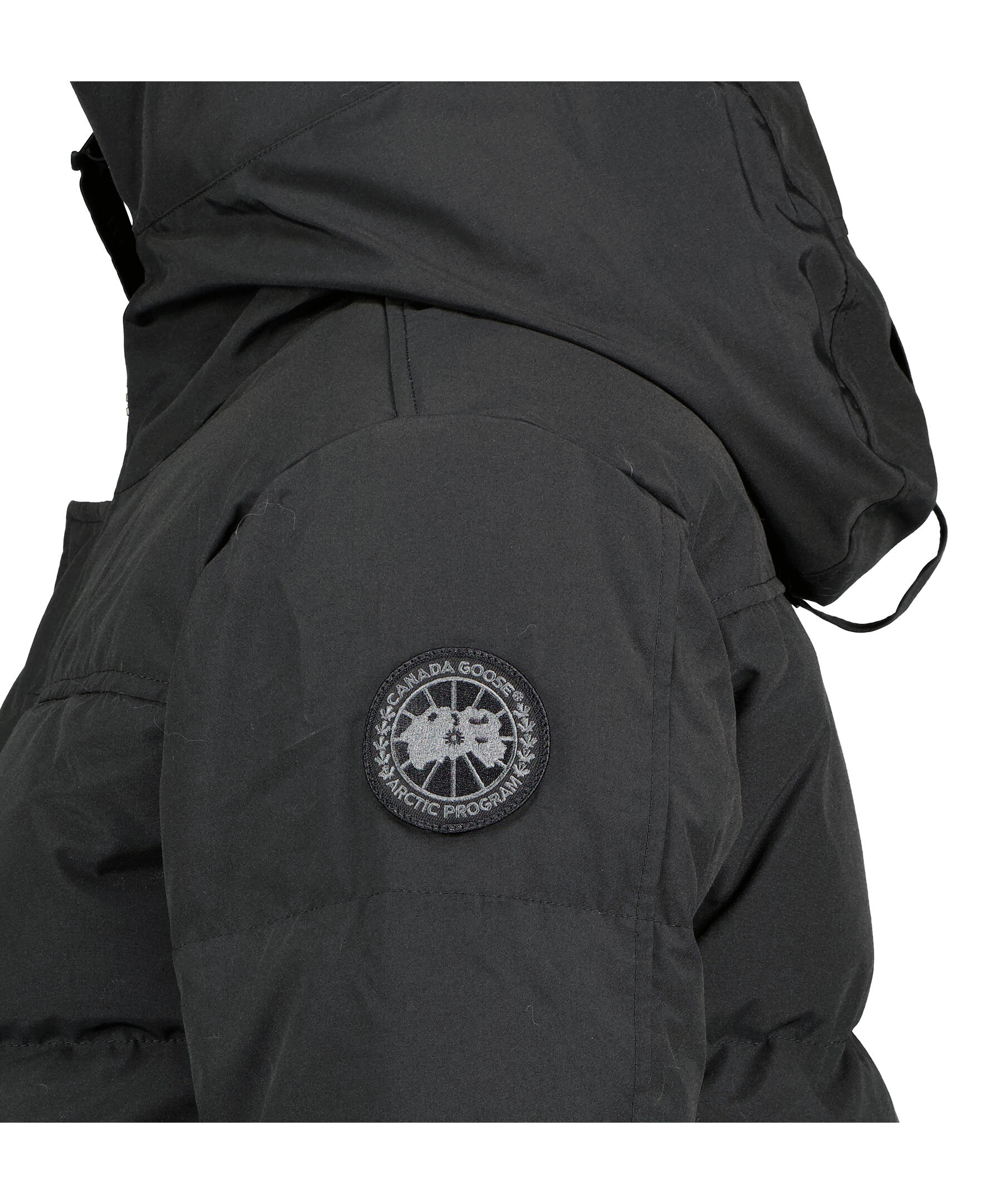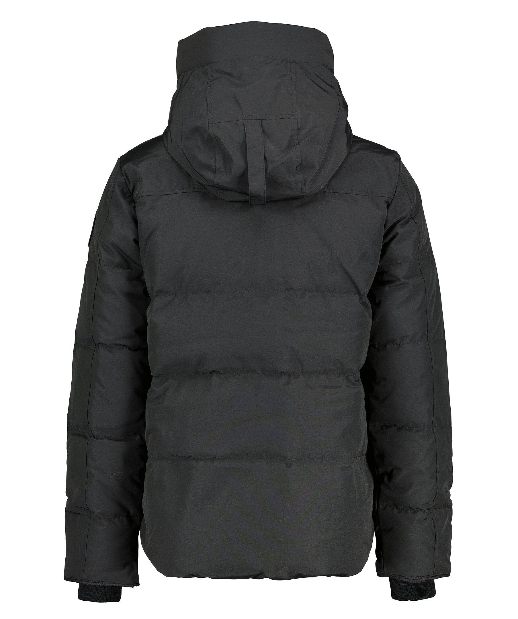 Svart dunjacka i kort modell från Canada Goose. Jackan är någon längre baktill och slutar vid höften. Två fleecefodrade framfickor med dragkedja och tre innerfickor; två i meshtyg och en säkerhetsficka med dragkedja. Hög krage och stor luva som skyddar när det blåser. Muddar vid ärmslut och logga på vänster överärm. Axelband på insidan som man kan sätta över axlarna och låta jackan hänga fritt om man vill ha den öppen. Gjord för att hålla dig varm i temperaturer runt -10°C till -20°C.