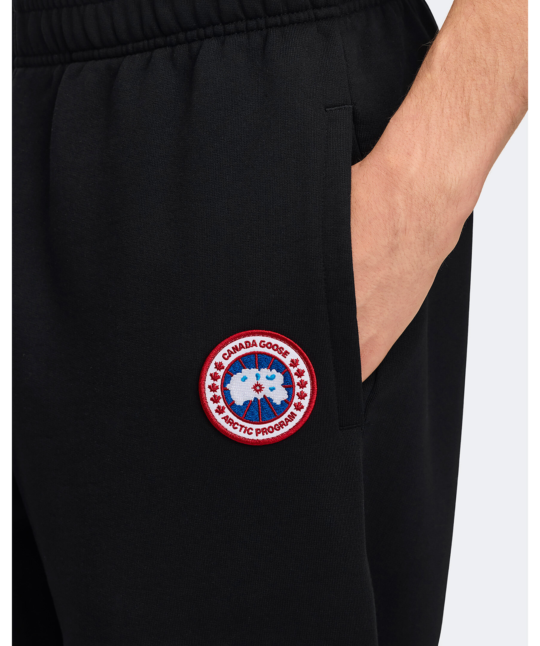 Svarta mjukisbyxor från Canada Goose. Byxorna har Canada Goose loggan inbroderat på vänster ficka.