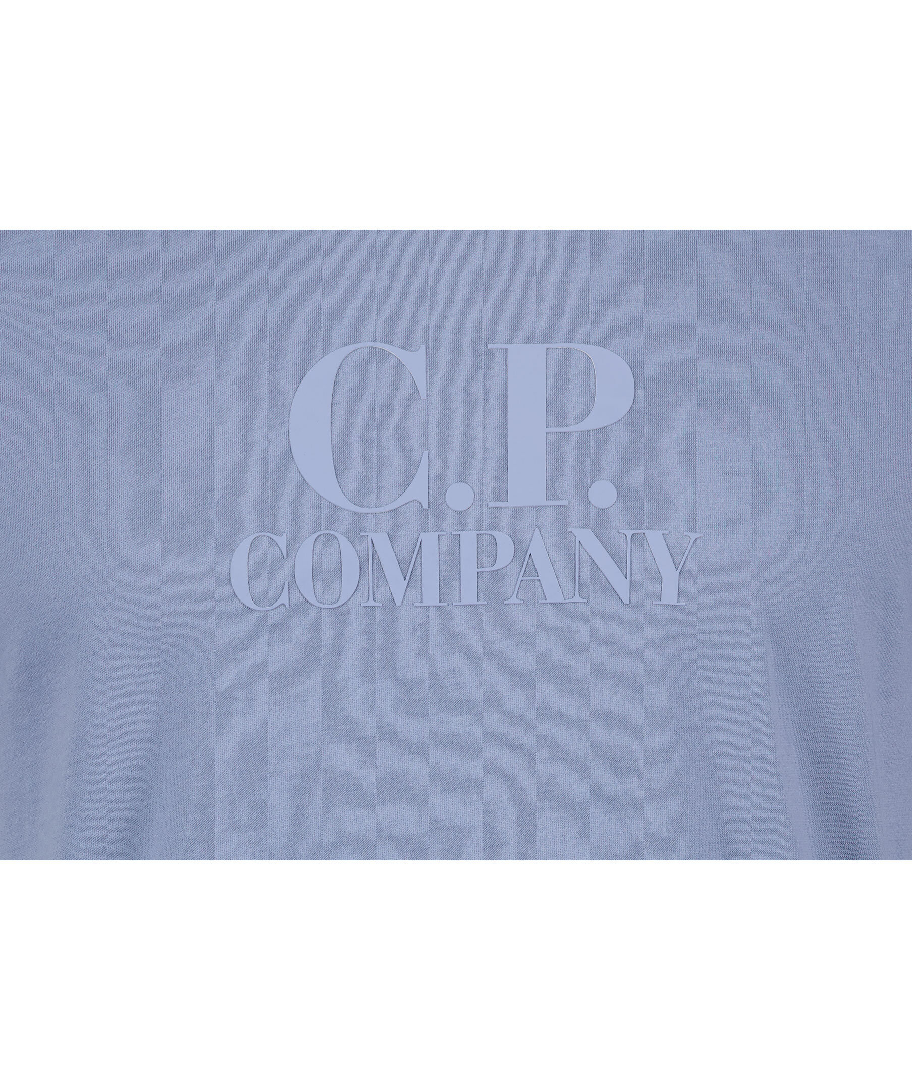 Ljusblå t-shirt från C.P Company. Gummerad logotyp på bröstet oh en rundad halsringning. Tillverkad i 100% bomull.