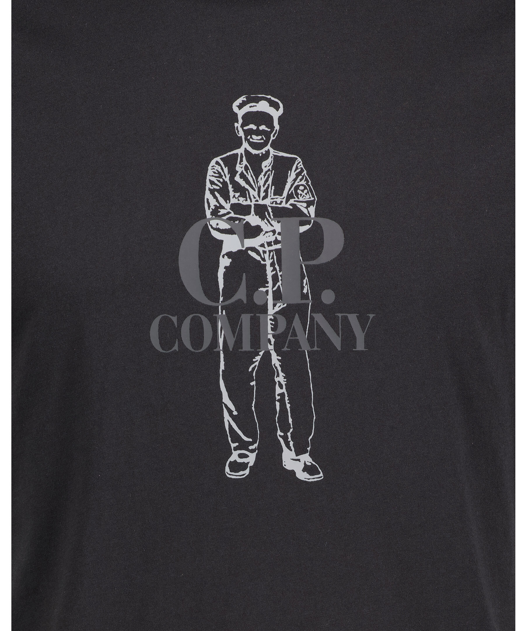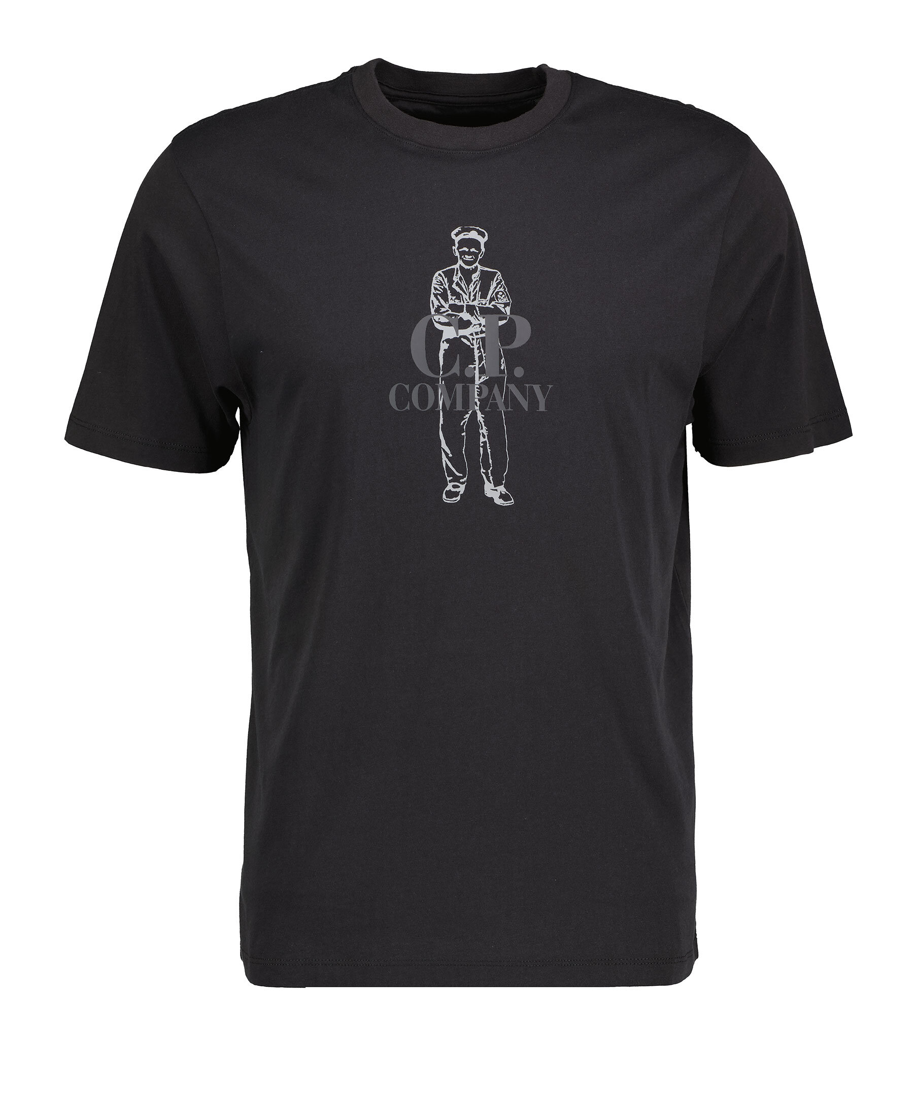 Svart t-shirt från C.P Company. T-shirten har rund halsringning, korta ärmar och tryckt logotyp på bröstet. Tillverkad i bomull.