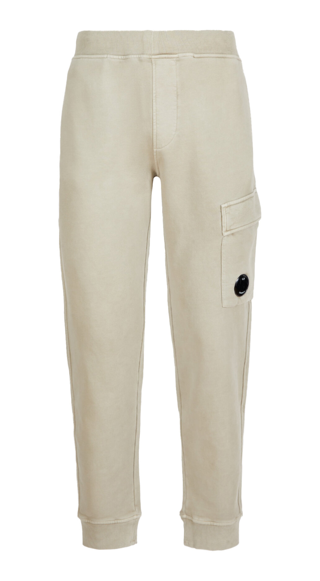 Beigea sweatpants i cargo modell från C.P Company. Två fickor framtill, en ficka med lock på vänster ben med bricka med logotyp. Ribbstickadmudd vid midjan och benslut. Dragsko i midjan. Borstad insida. OBS! Brickan är avtagbar och ska tas av vid tvätt.