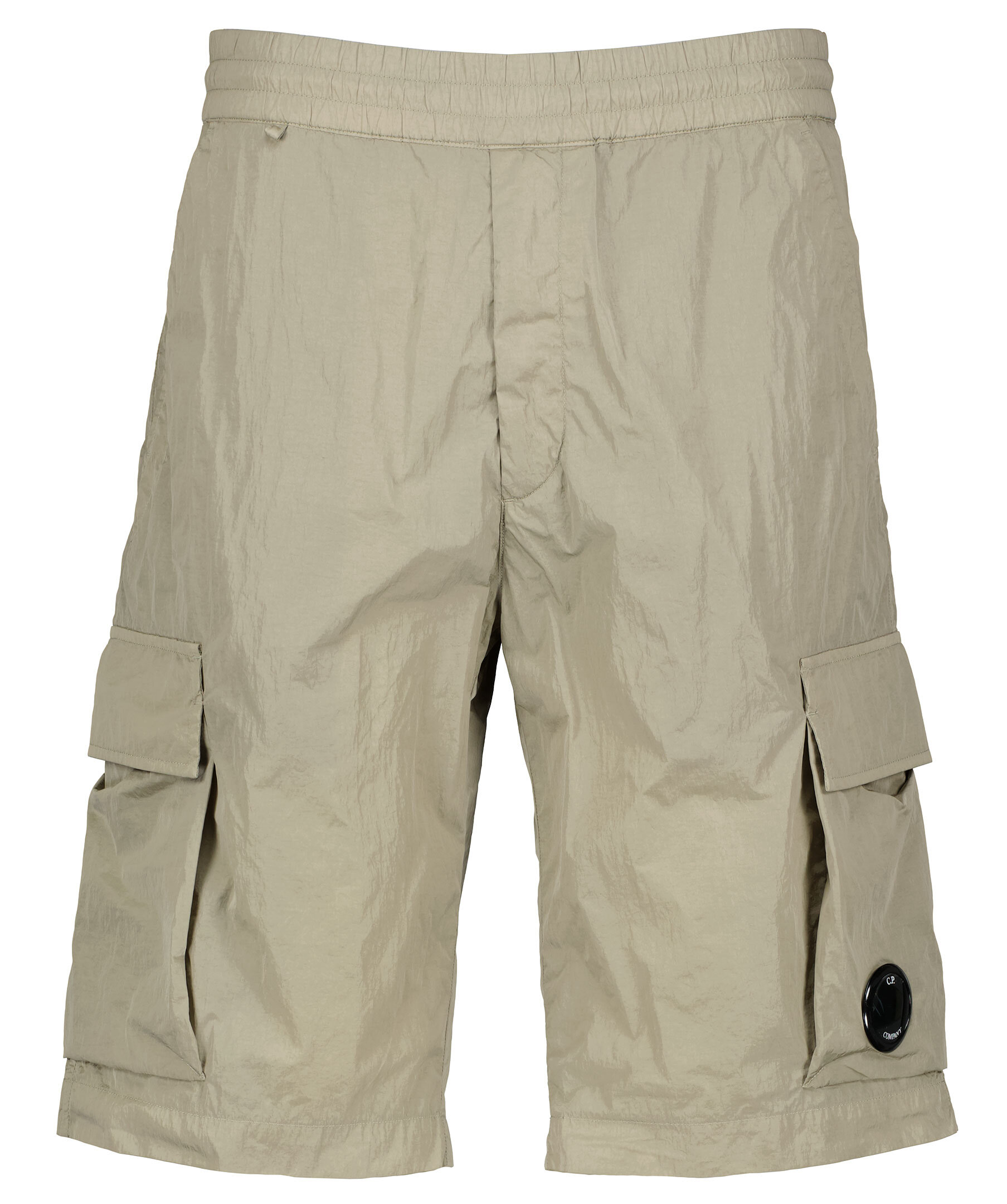 Gråbeigea, knälånga cargoshorts från C.P Company. Fickor fram, en bakficka med ficklock och fickor på sidorna av benen med ficklock. Mudd i midjan och rund, svart bricka i plast med logotyp på vänster benficka. Tillverkad i Chrome-R, en helt återvunnen multifilamentnylon, som erbjuder en nästan ogenomtränglig barriär mot vatten och vind med en hållbar konstruktion. OBS! Brickan är avtagbar och ska tas av vid tvätt.