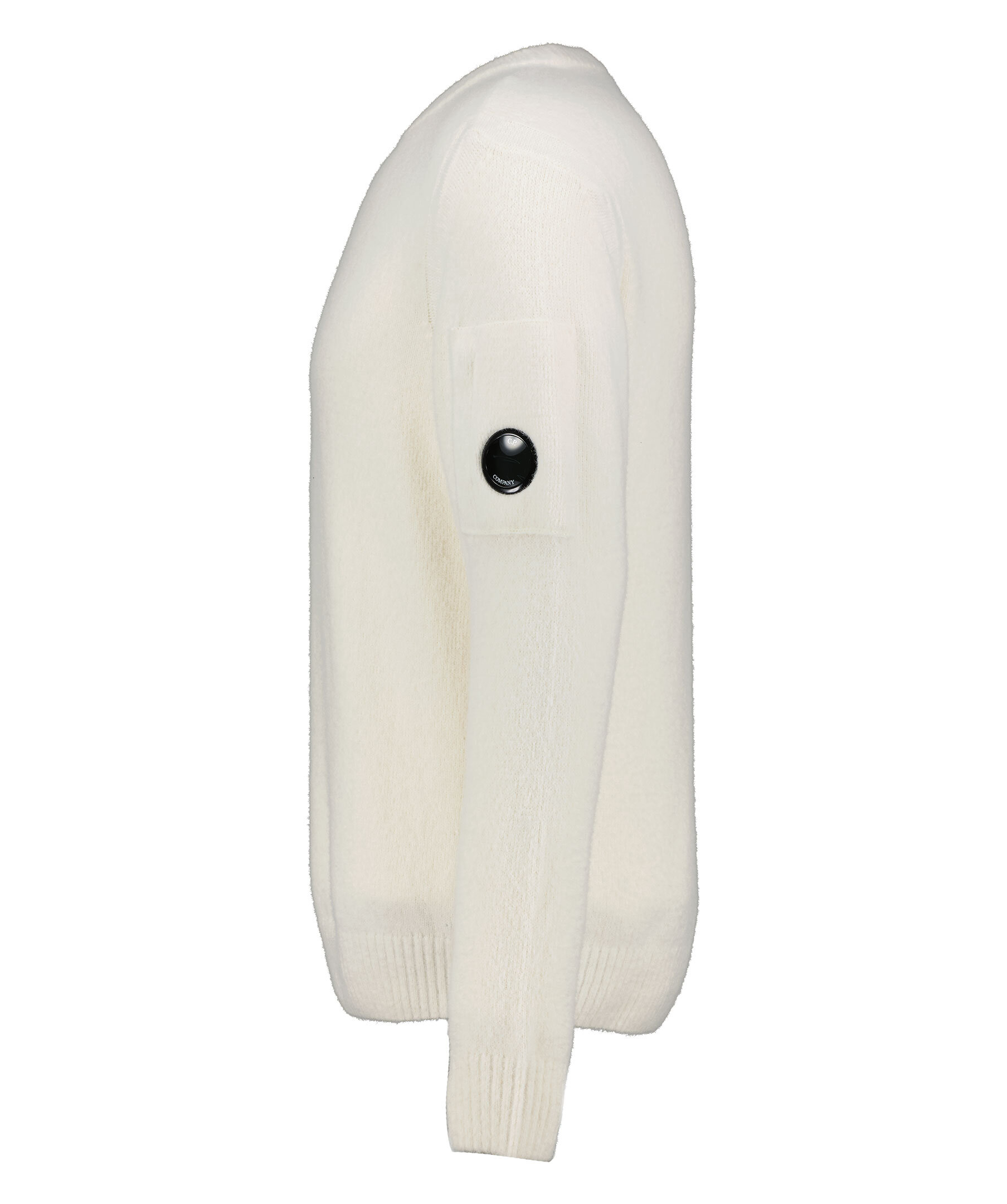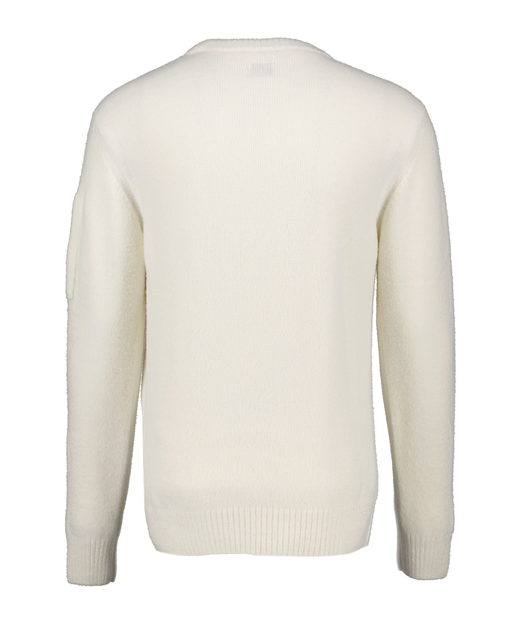 Vit stickad tröja från C.P Company. Tillverkad i ullblandning. Ficka på vänster ärm med dragkedja och runt patch i plast med logotyp. Fint ribbade muddar vid halsring, ärm och plaggslut.