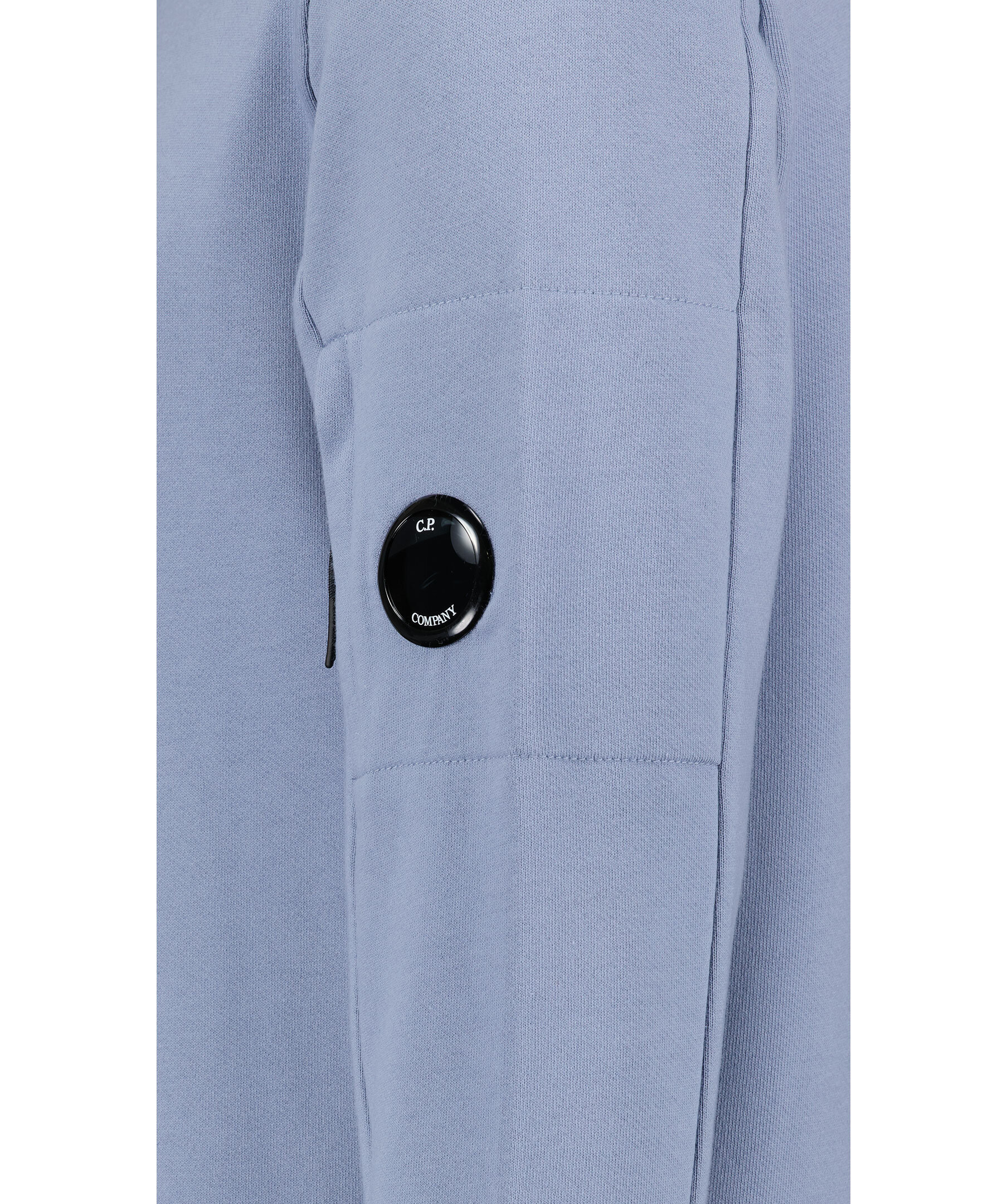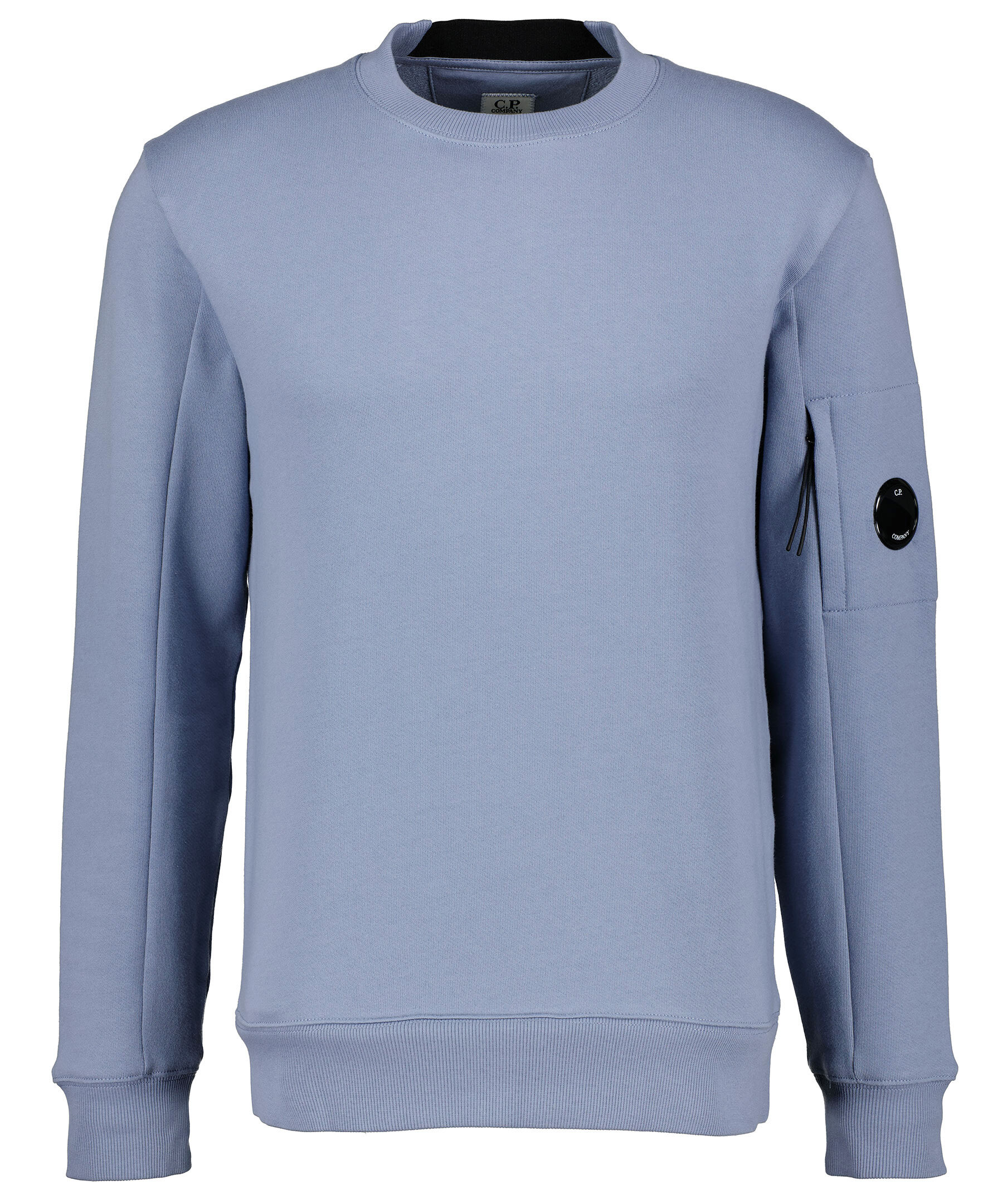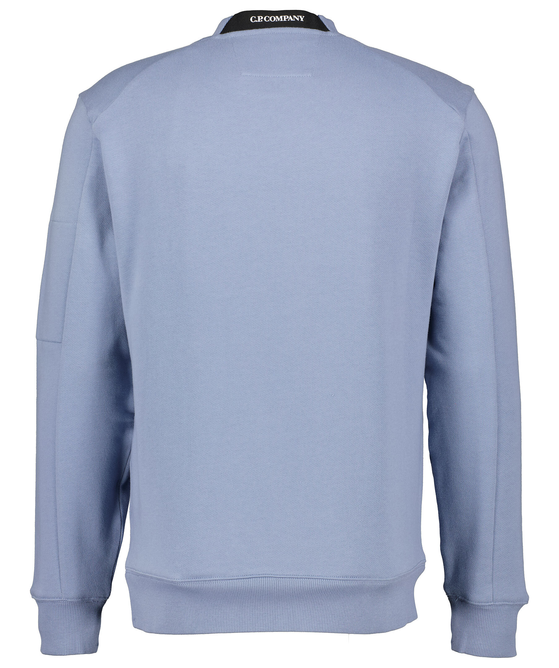 Duvblå långärmad tröja från C.P Company. Tillverkad i 100% bomull. Ficka på vänster ärm med dragkedja och runt patch i plast med logotyp. Fint ribbade muddar vid halsring, ärm och plaggslut.