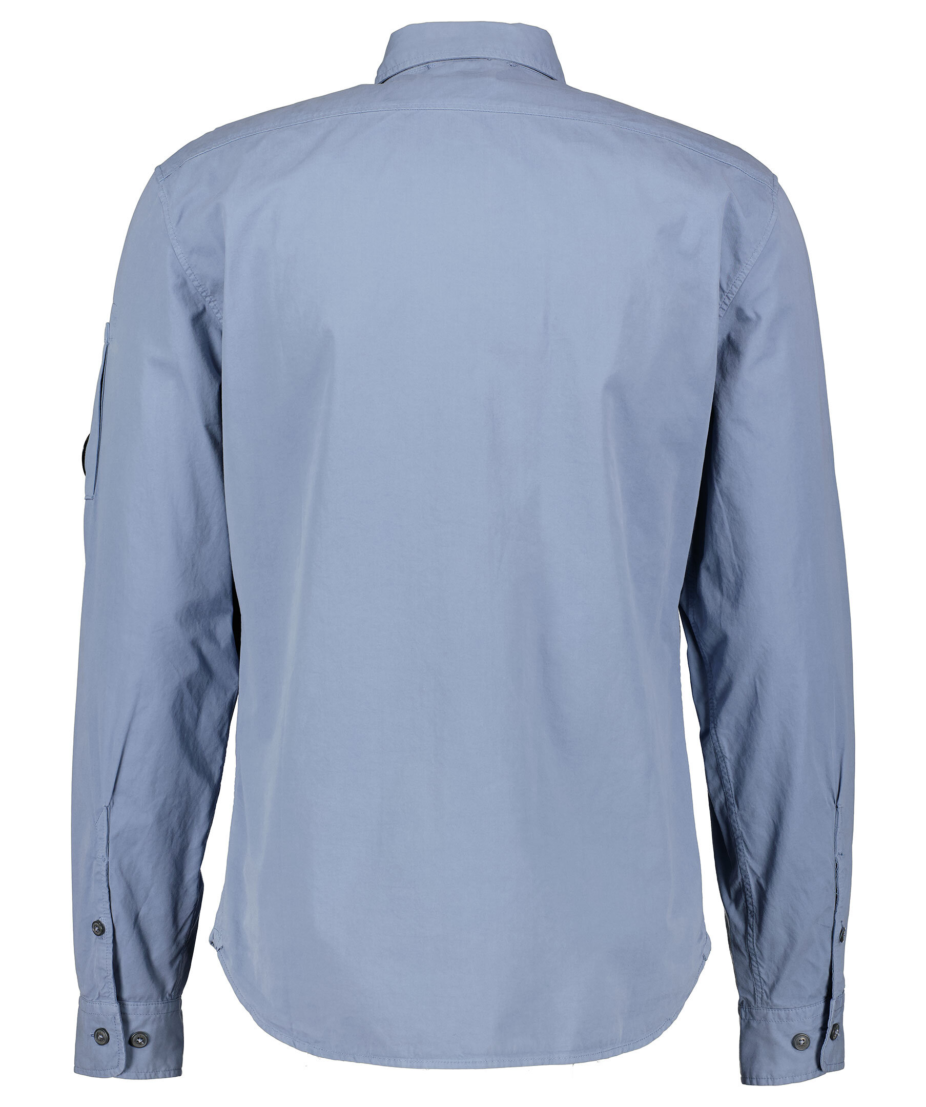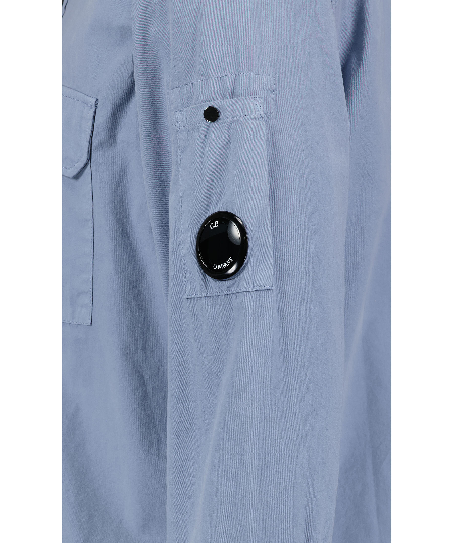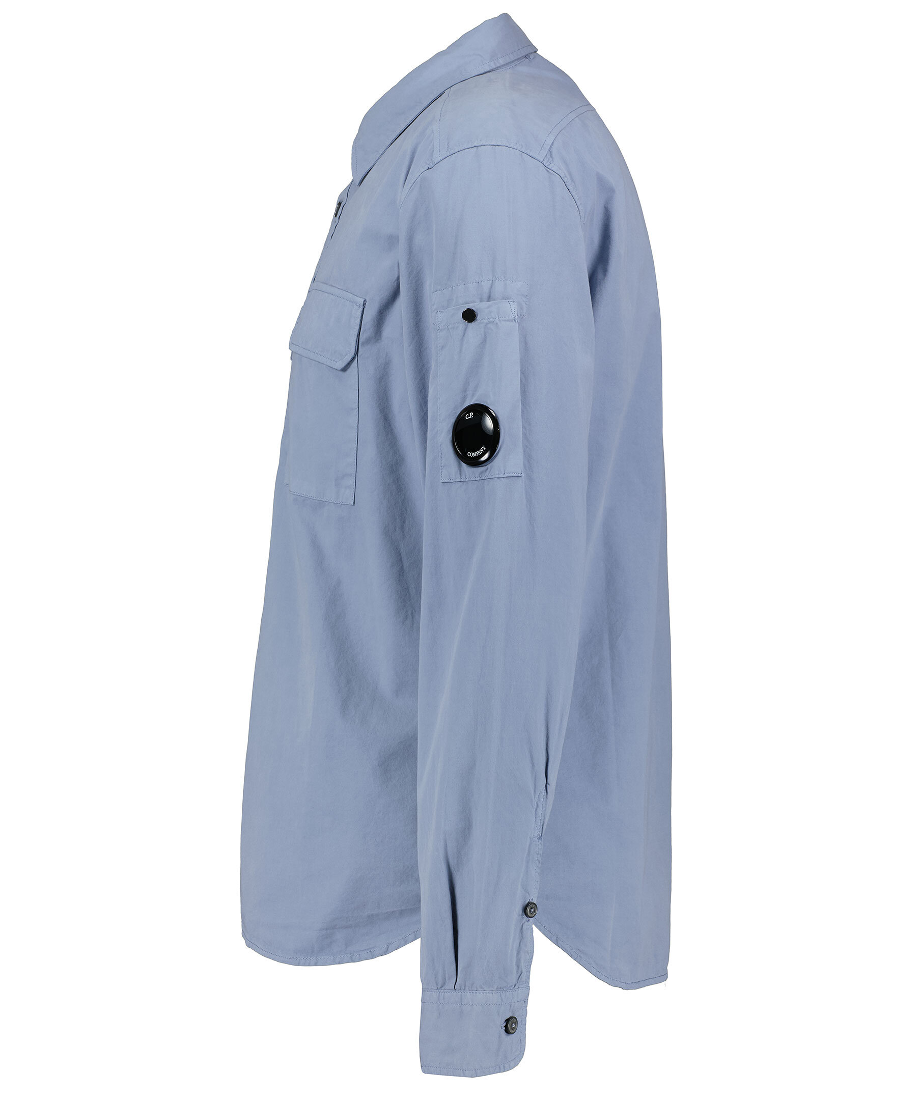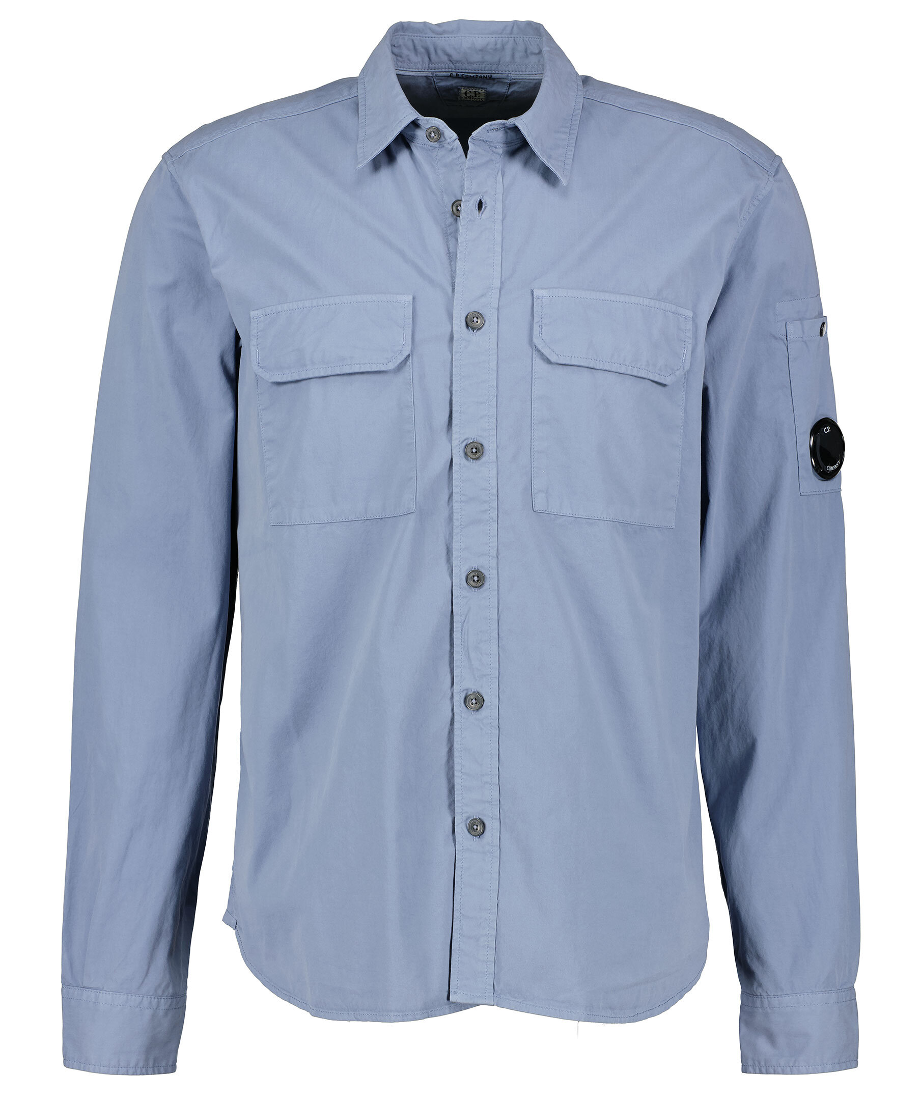 Duvblå overshirt från C.P Company. Stängs framtill med mörkgråa knappar. Bröstfickor med lock och dubbla manschetter. Ficka på vänster ärm med logotyp och tryckknapp. Spetsig krage och hälla på insidan av nacken för upphängning. Tillverkad i 100% bomull.