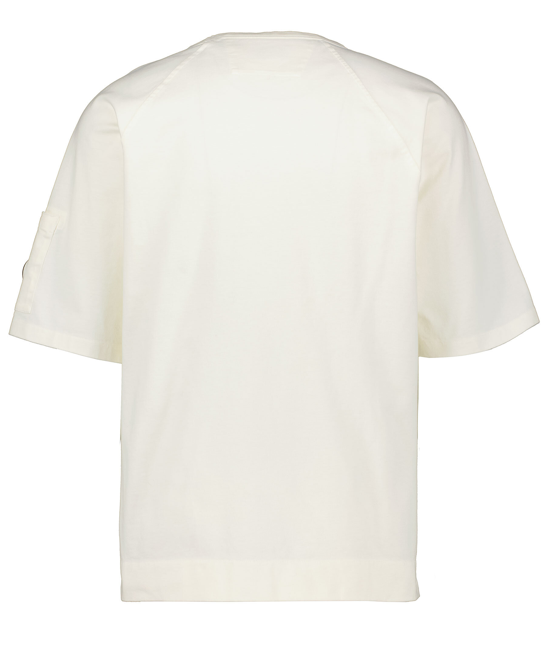 Krämvit, oversize t-shirt från C.P Company. Längre t-shirtärmar och ficka på vänster ärm med logotyp och tryckknapp. Rundad halsringning med tunn ribbad mudd. Tillverkad i 100% bomull.