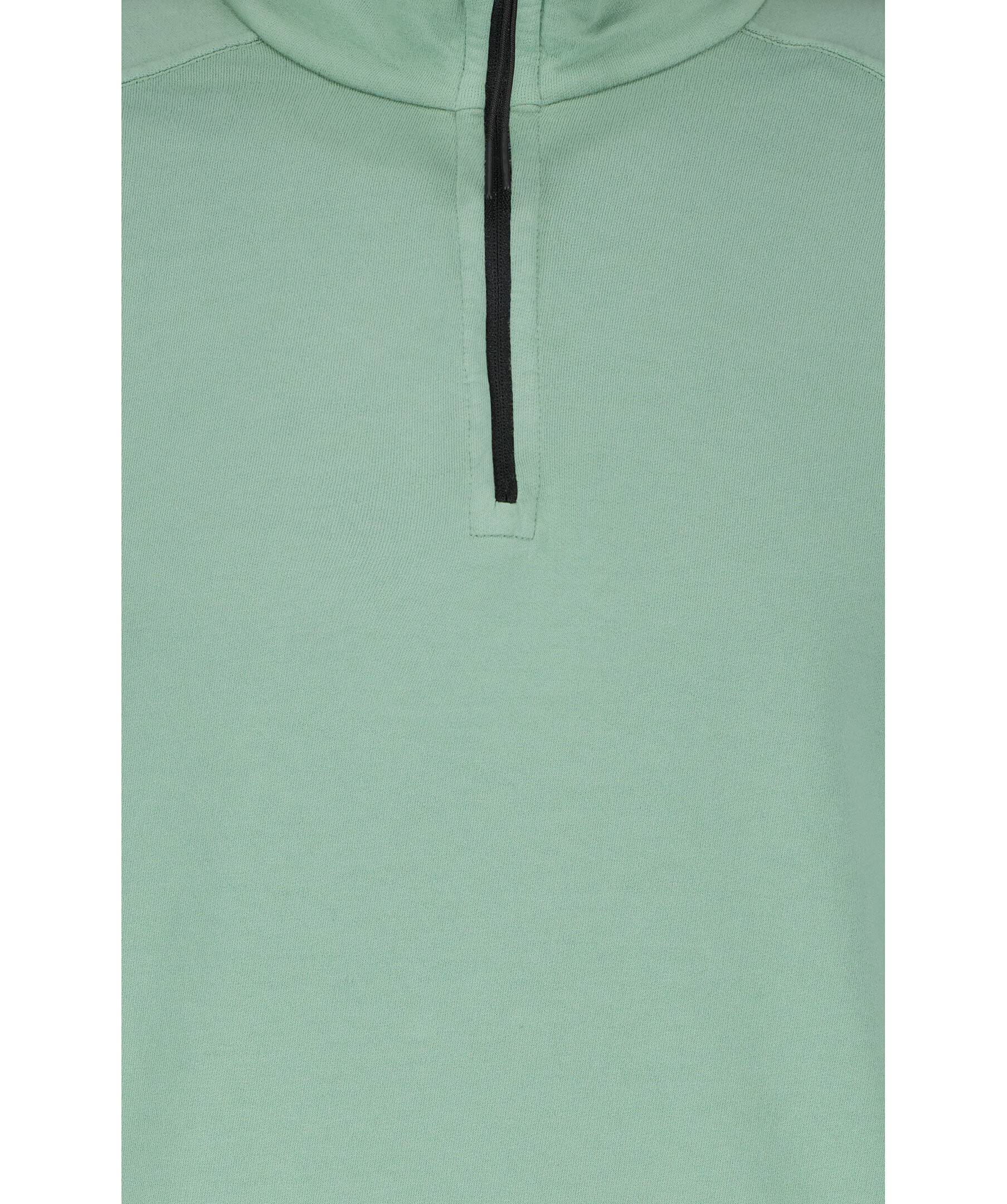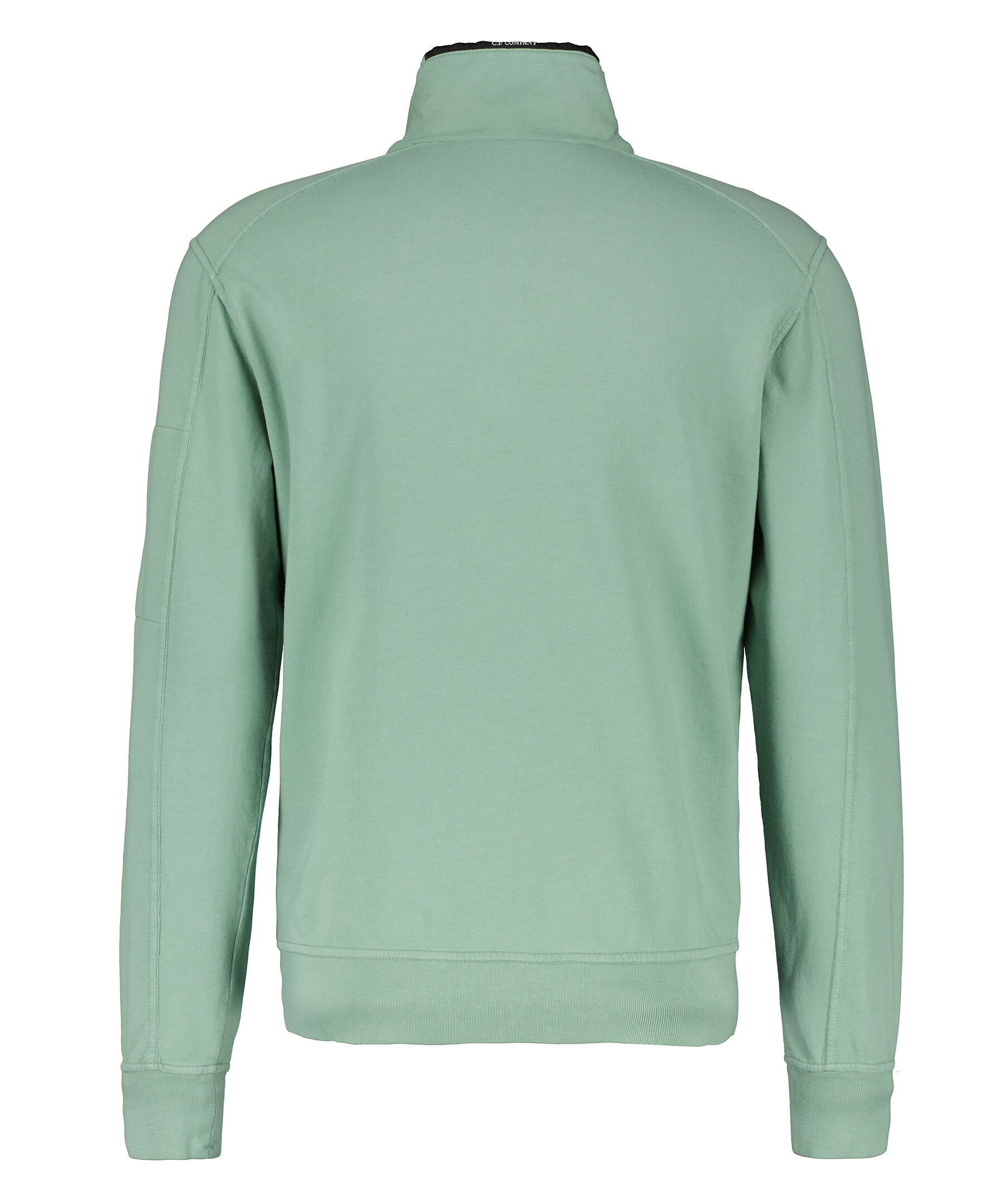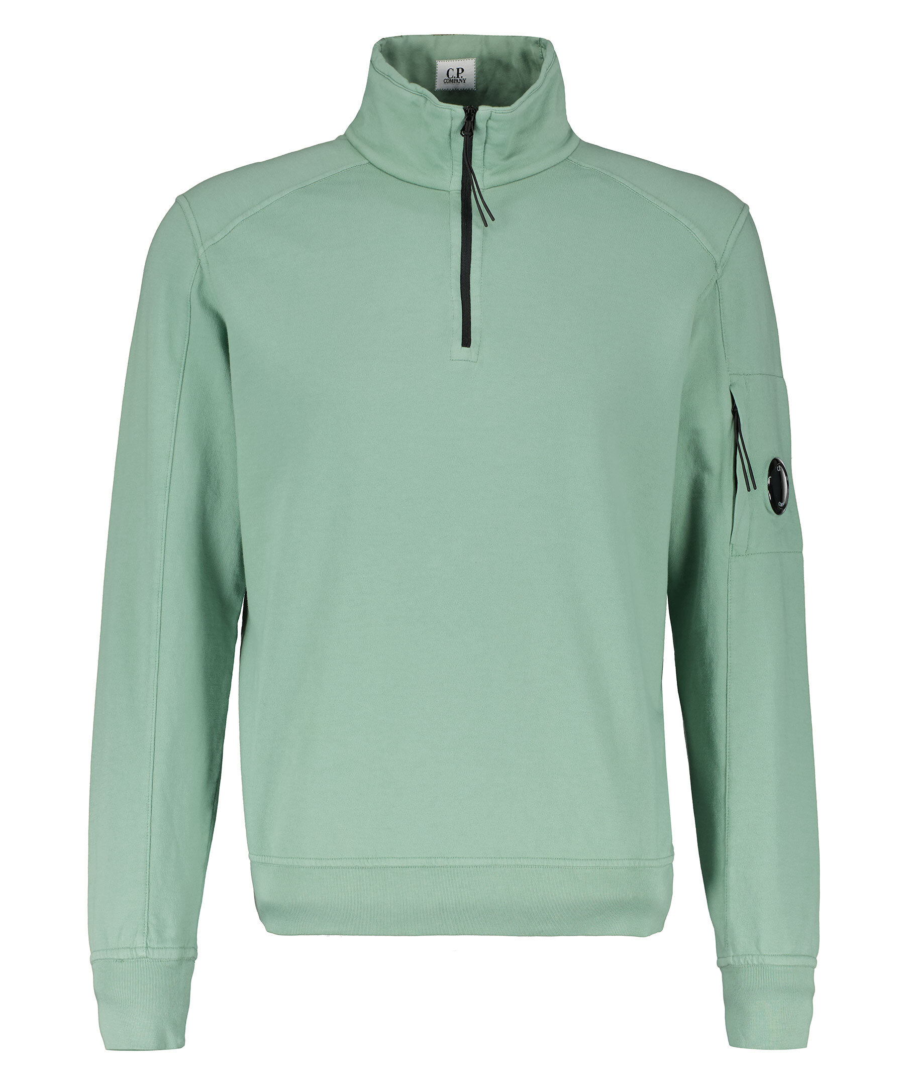 Salviagrön half-zip från C.P Company. Ribbstickade muddar vid ärm- och plaggslut. Ficka som stängs med Dragkedja på vänster ärm med bricka med logotyp. Tillverkad i 100% Bomull. OBS! Brickan är avtagbar och ska tas av vid tvätt.