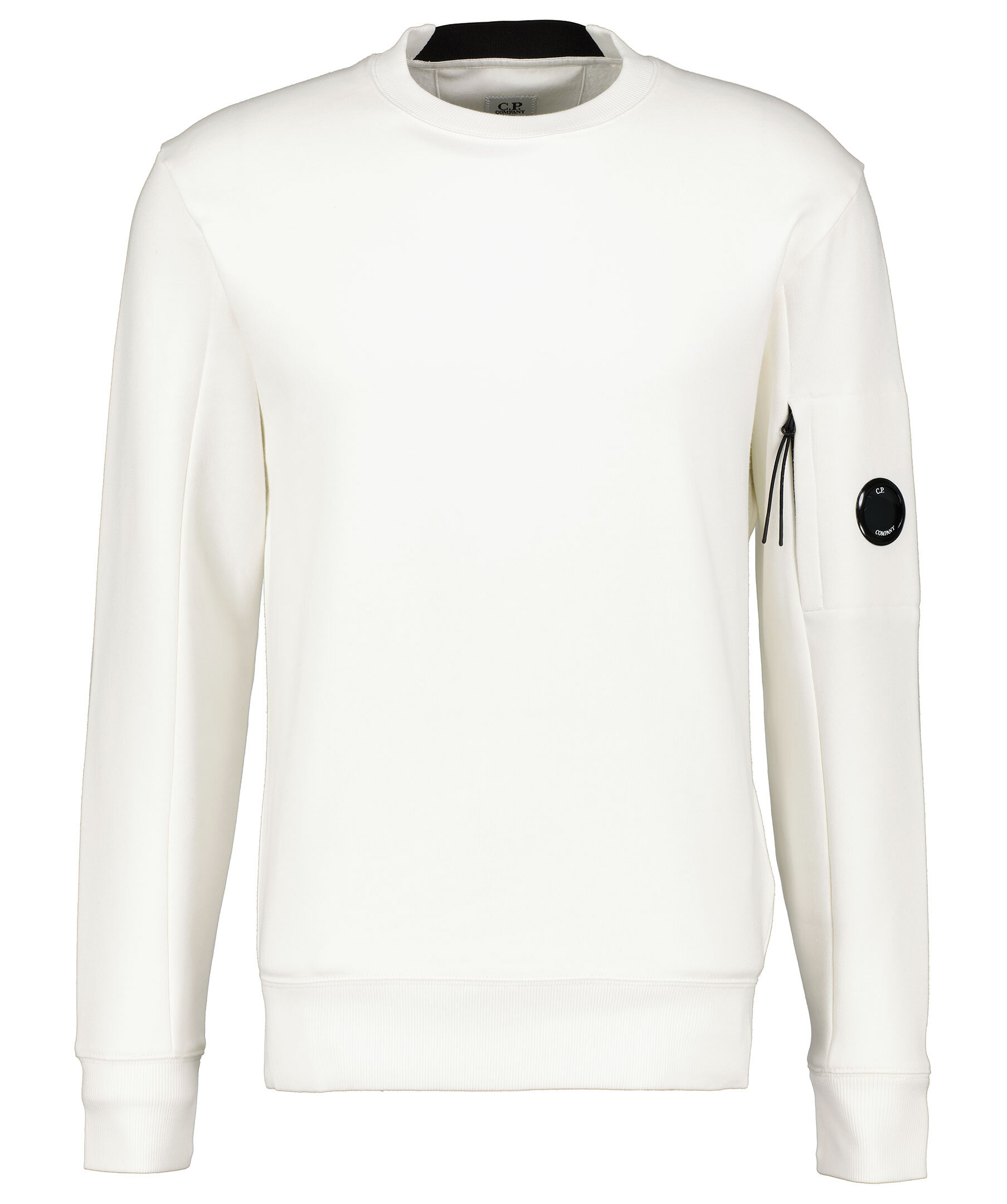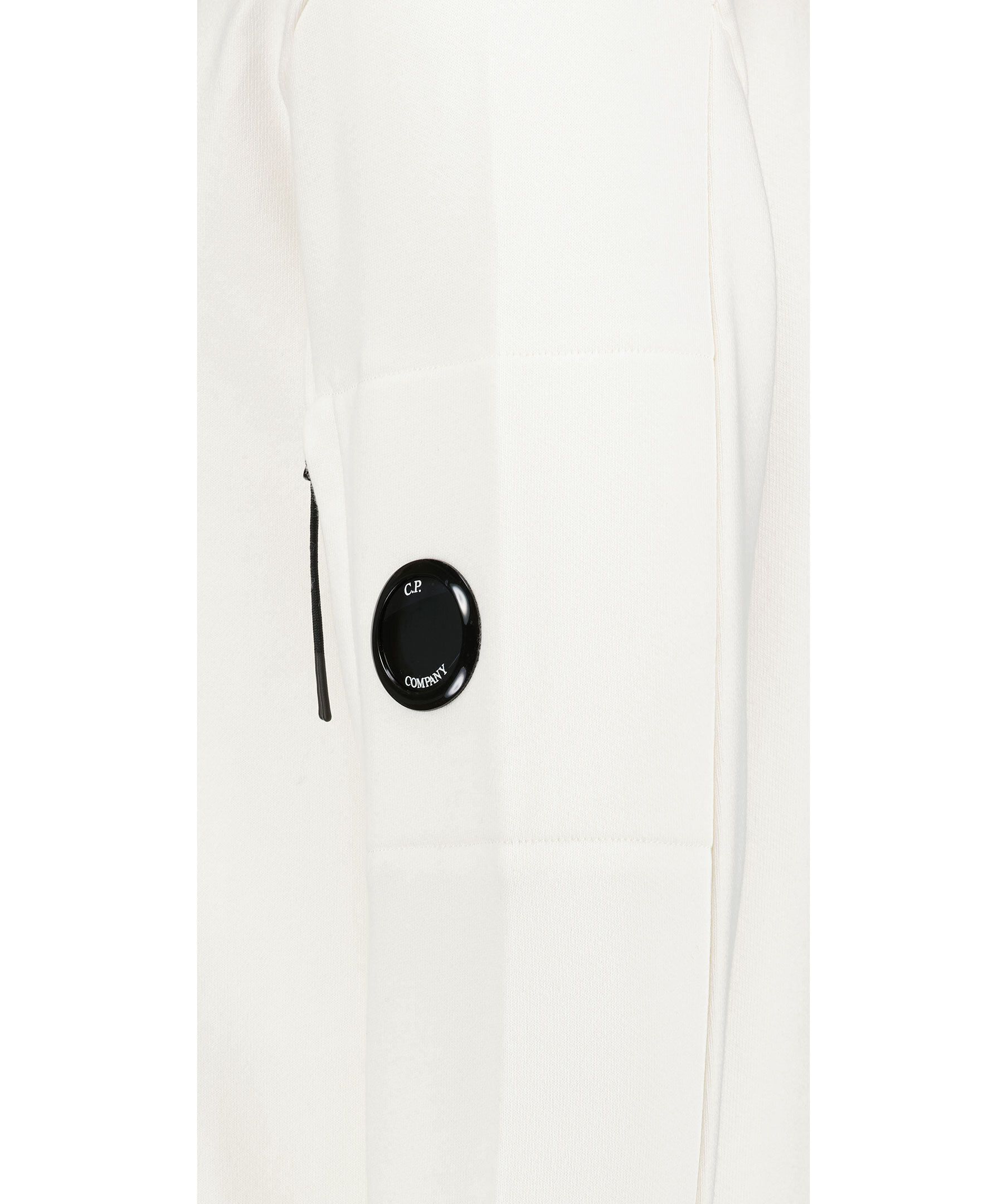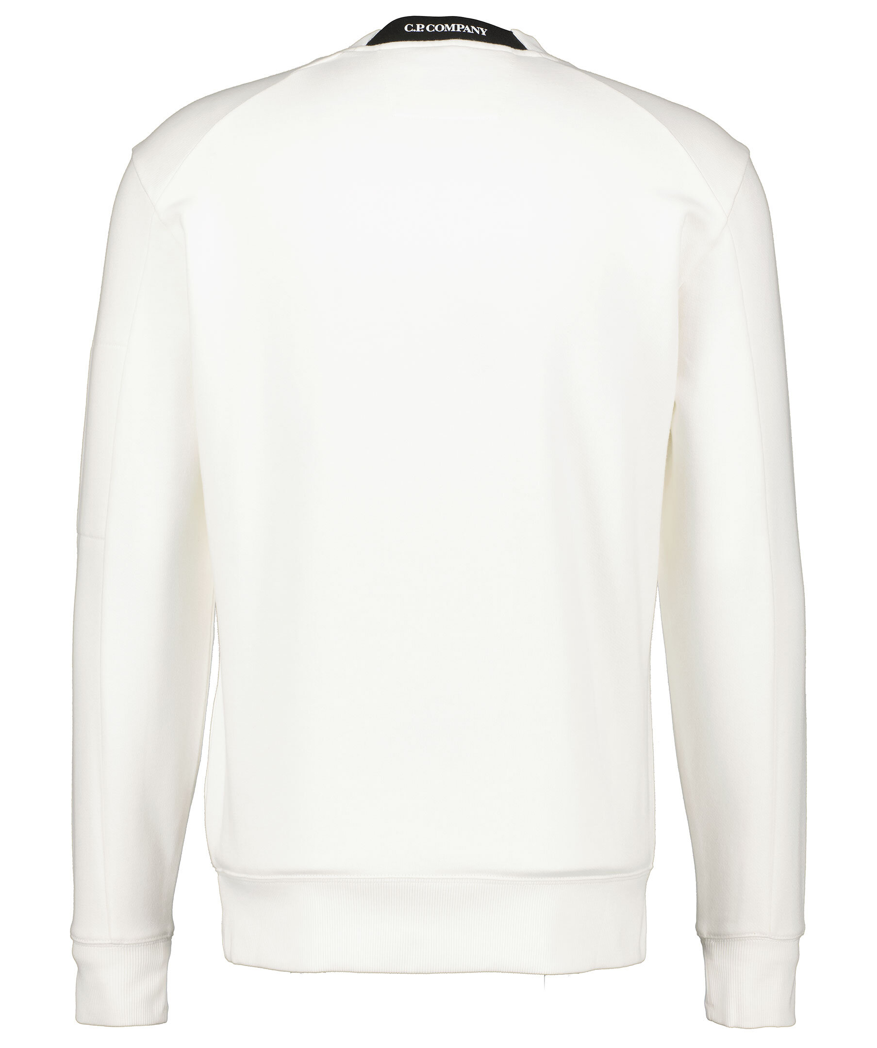 Vit sweatshirt från C.P Company. Tillverkad i 100% bomull. Ficka på vänster ärm med dragkedja och rund patch i plast med logotyp. Fint ribbade muddar vid halsring, ärm och plaggslut. Svart mudd med vit logotyp tryckt i nacken.