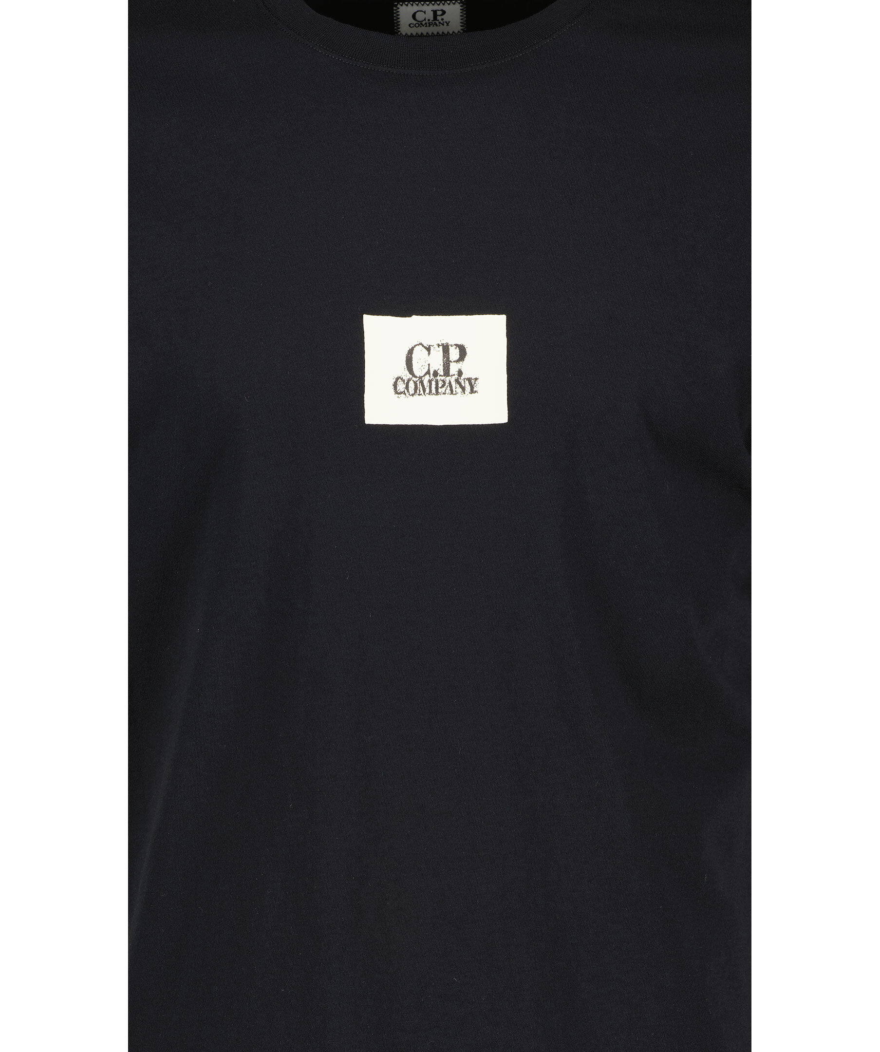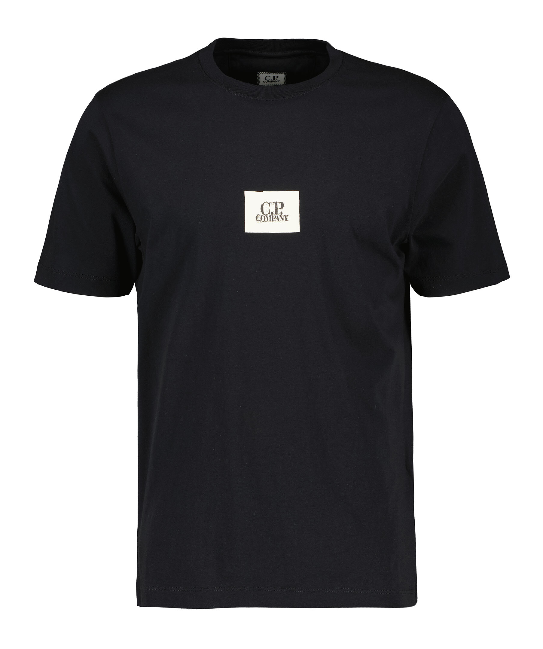 Svart T-shirt från C.P Company. Rundad halsringning med ribbstickad kant. Tryckt logotyp mitt på bröstet. Tillverkad i 100% Bomull.