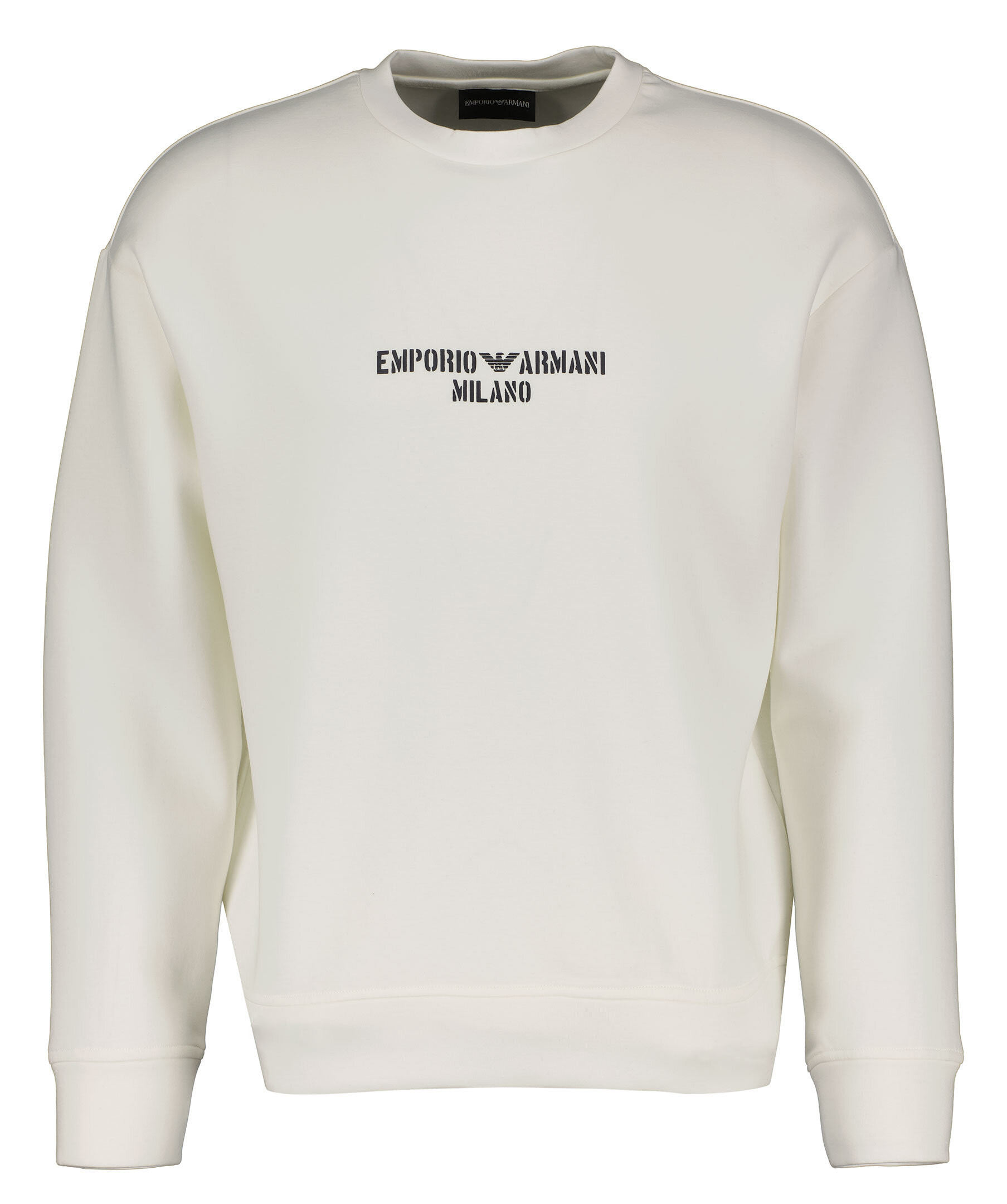 Vit sweatshirt från Emporio Armani. Tryckt logotyp över bröstet Ribbstickade muddar vid kragen, ärm- och plaggslut. Ribbstickade muddar i kragen, ärm- och plaggslut. Rundad halsringning. Tillverkad i bomullsblandning.